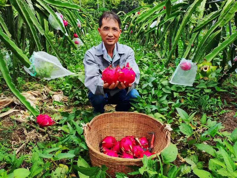 这个念头很快就变成了行动,从2016年开始生态种植火龙果,使用河水、雨水进行浇灌,不用农药、化肥、化学激素,使用发酵牛粪、蚕粪、花生麸作肥料,不杀虫,与虫虫共生共荣。