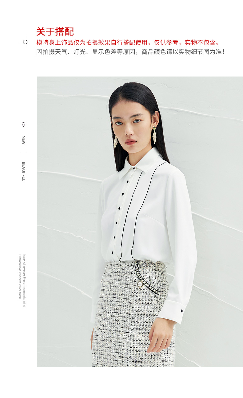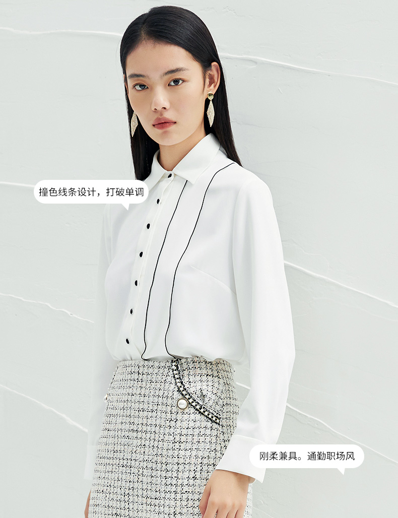 EITIE爱特爱气质通勤简约垂感舒适百搭显瘦撞色衬衫C2209902