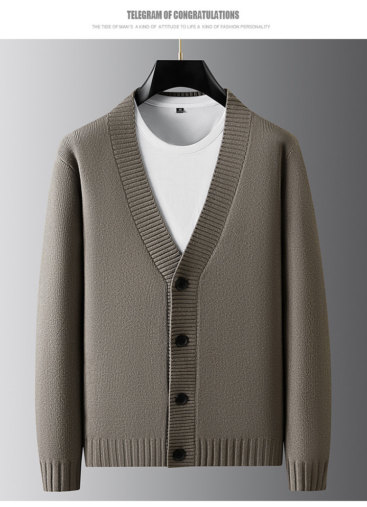 【DPF】大依优型大码男士开衫外套V领百搭秋季新款男士商务轻奢高品质开衫加肥加大码时尚休闲针织外套针织衫