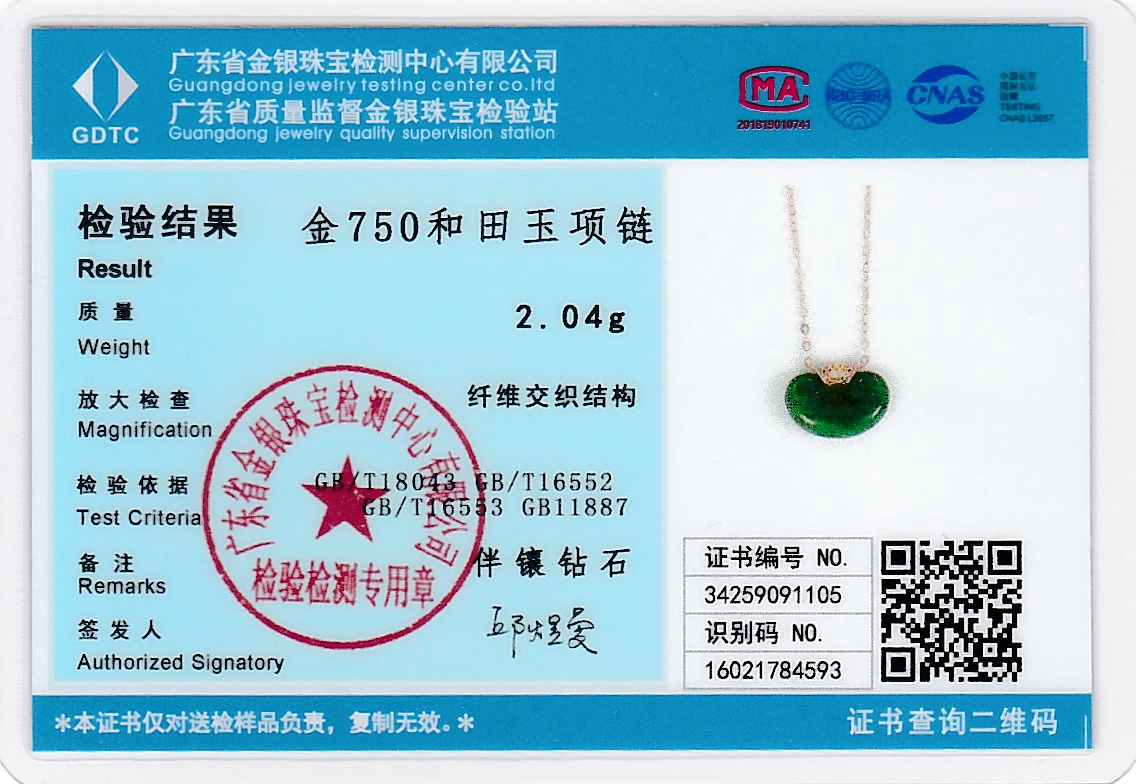 18K玫瑰金和田玉(碧玉)项链