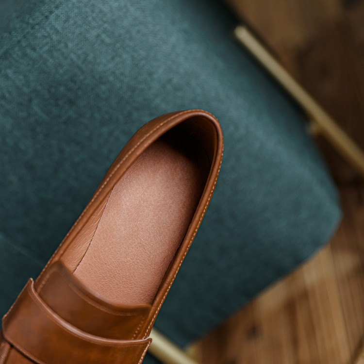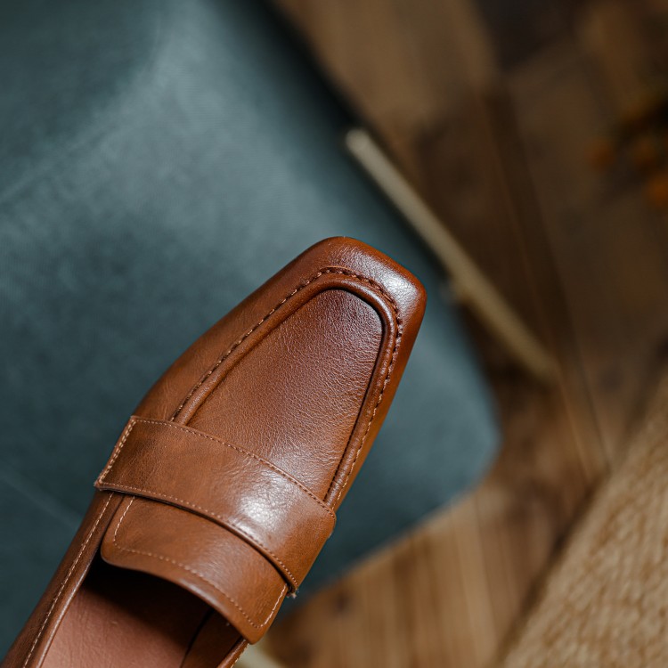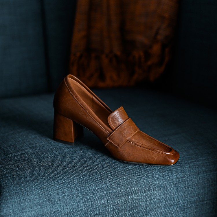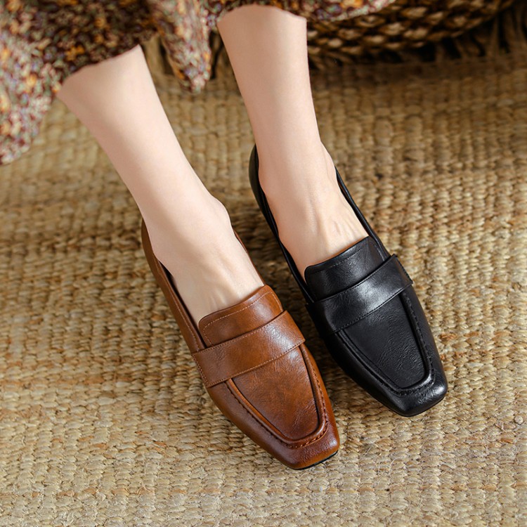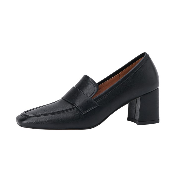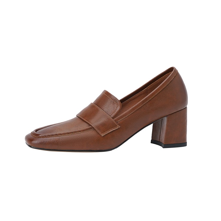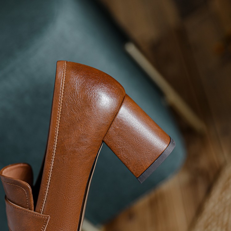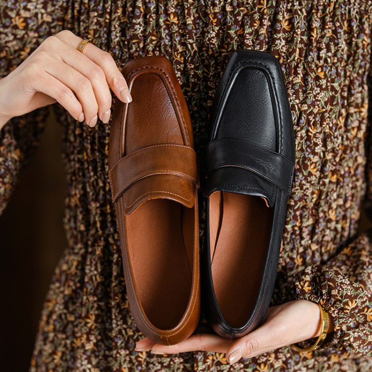 【预售5天】英伦复古风方头深口粗跟高跟小皮鞋春秋季新款大码优雅乐福鞋女NJMK&K122