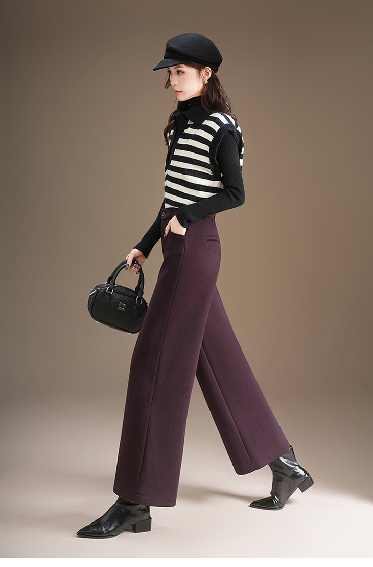 羊毛阔腿裤加绒裤高腰宽松时尚,直筒裤厚款保暖休闲裤MYX-HWM-5953-Y