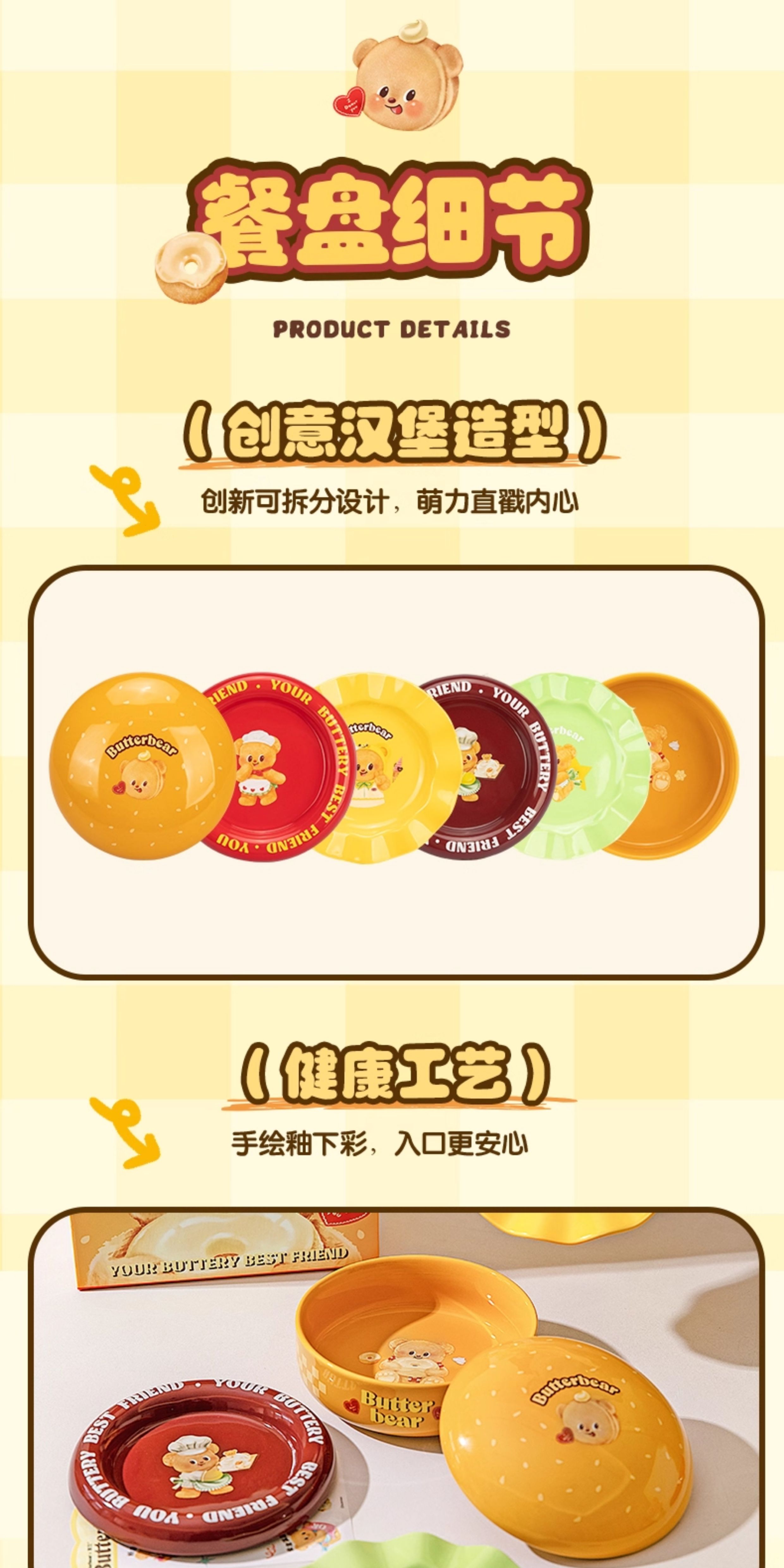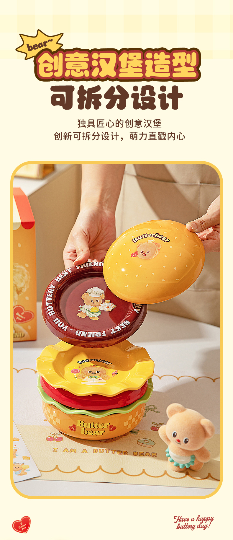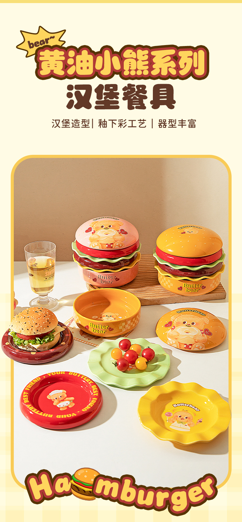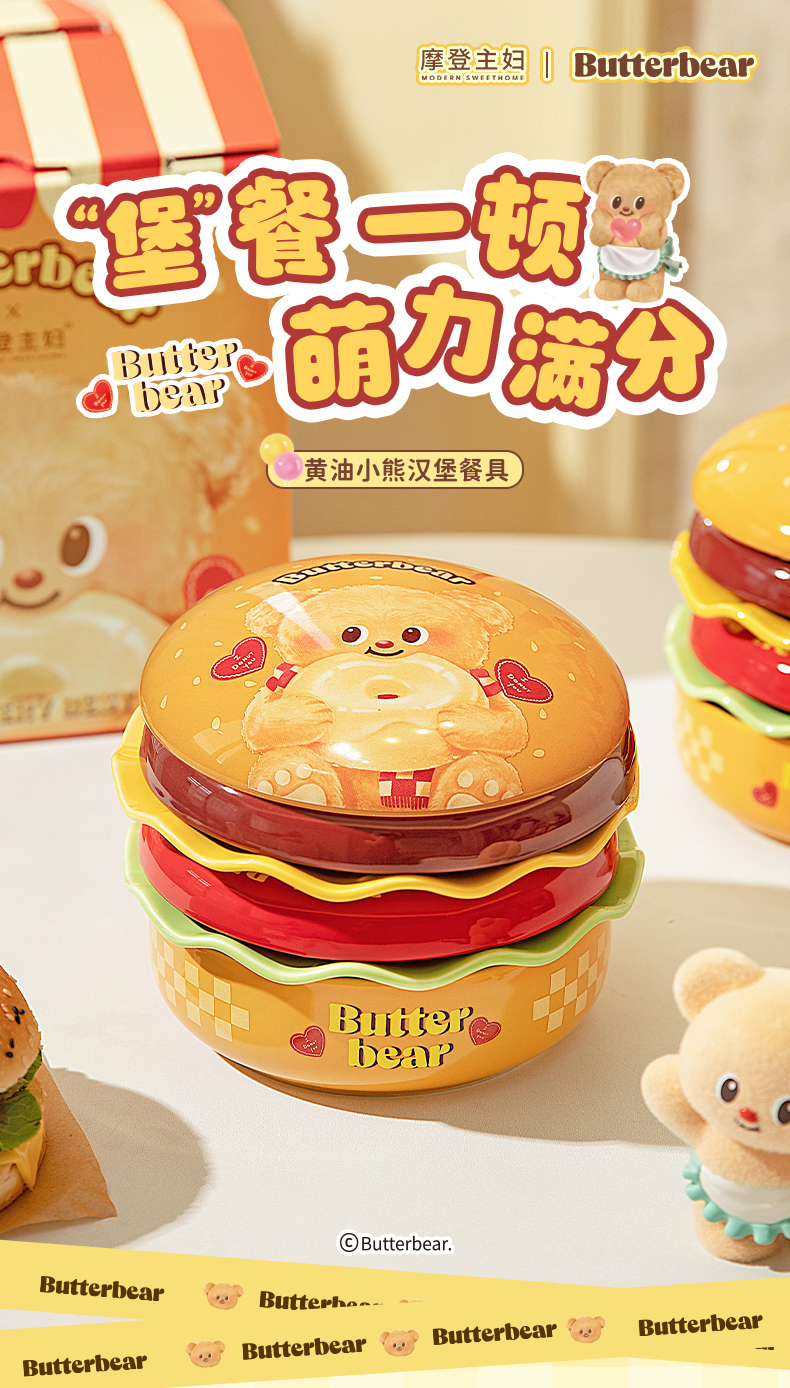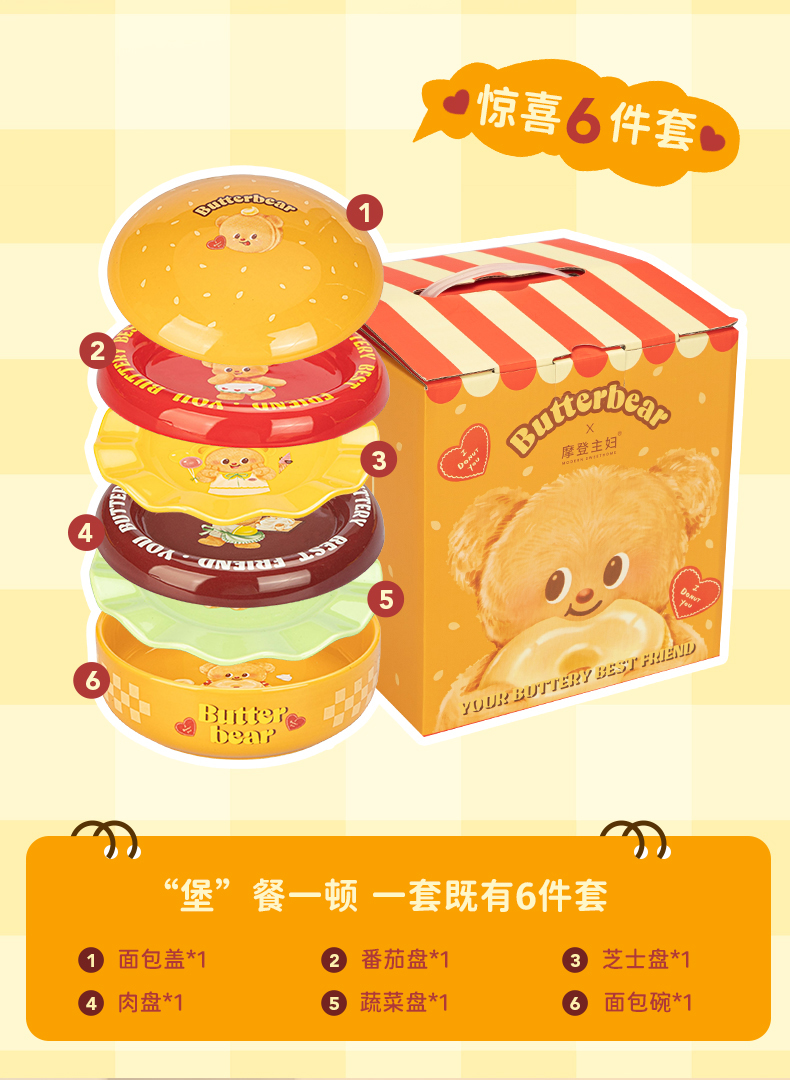 【厨具上新】中国摩登主妇&黄油小熊汉堡餐具套装-黄色