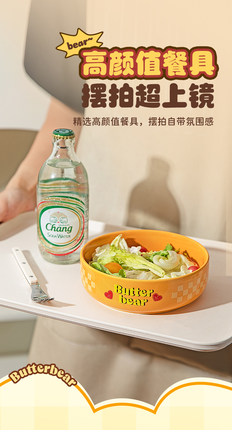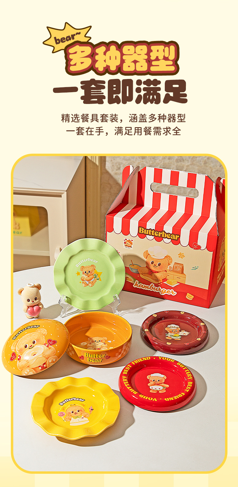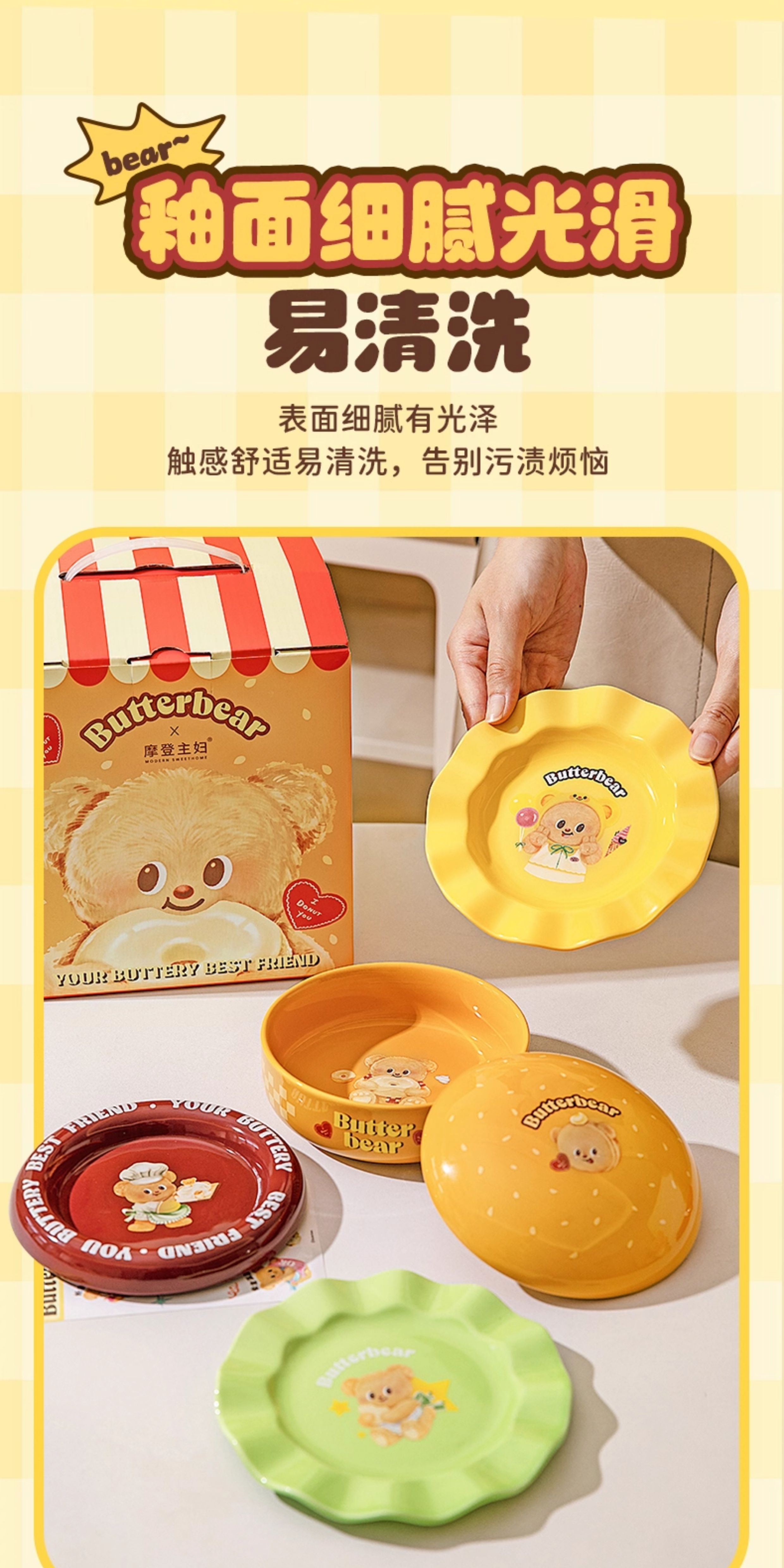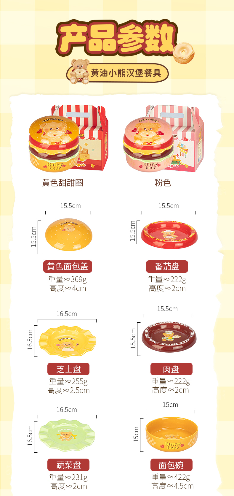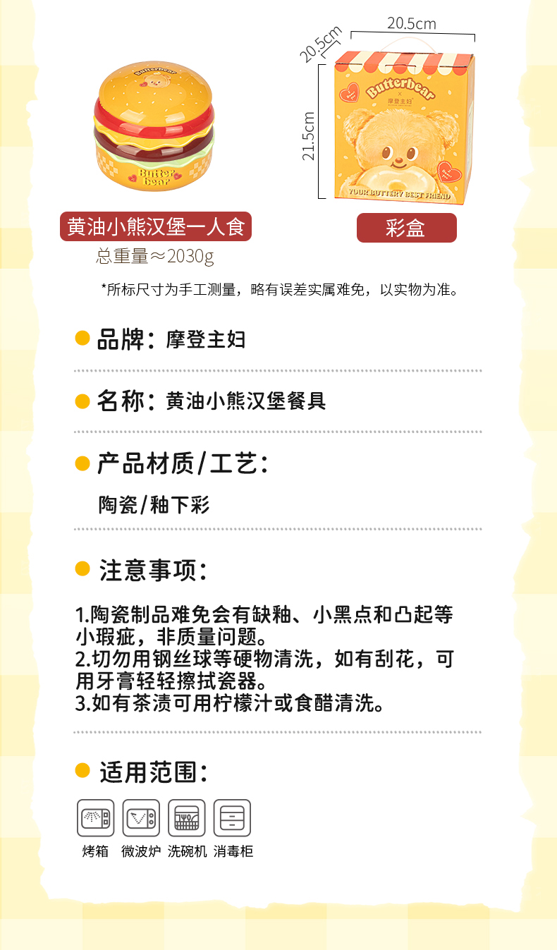 【厨具上新】中国摩登主妇&黄油小熊汉堡餐具套装-黄色