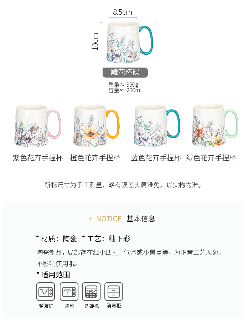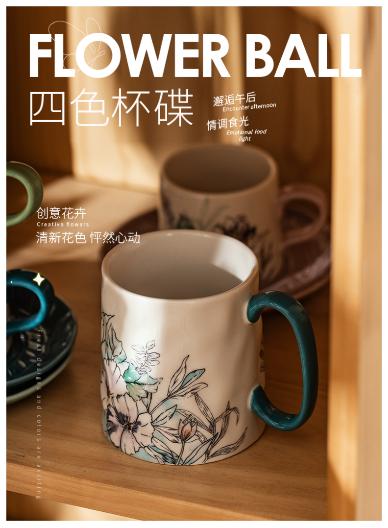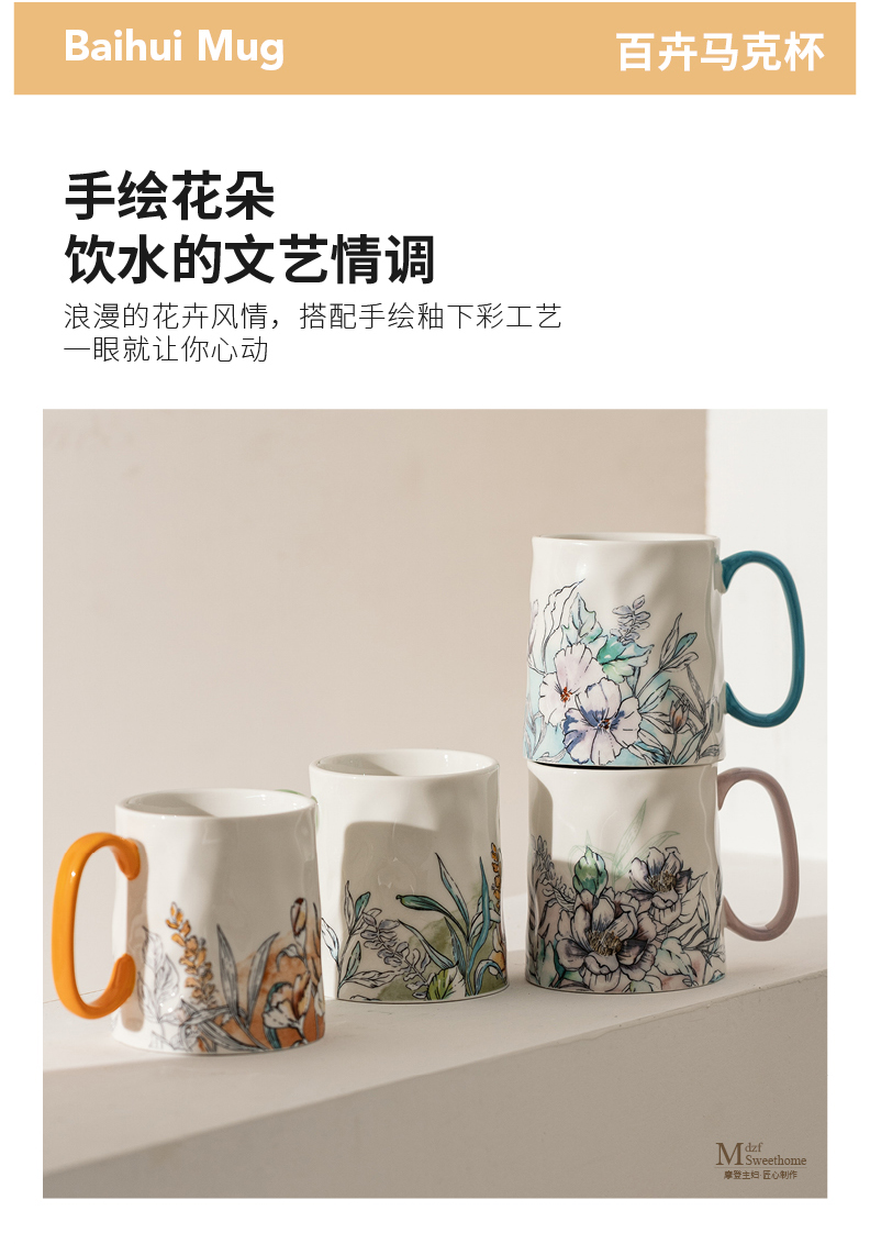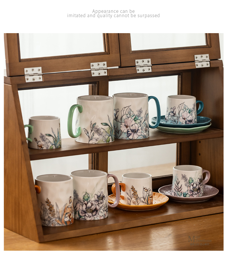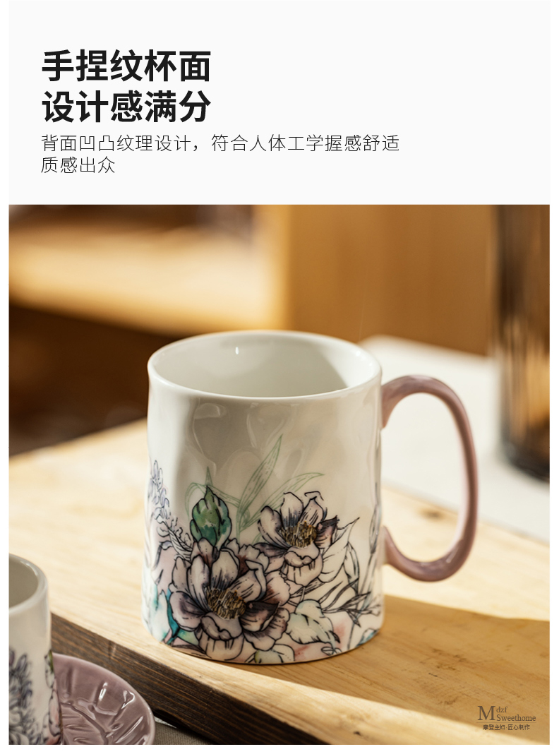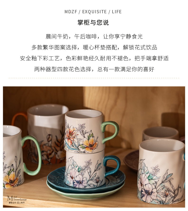 【摩登主妇】多色花卉手捏杯手绘家用大容量美式餐杯陶瓷茶杯水杯