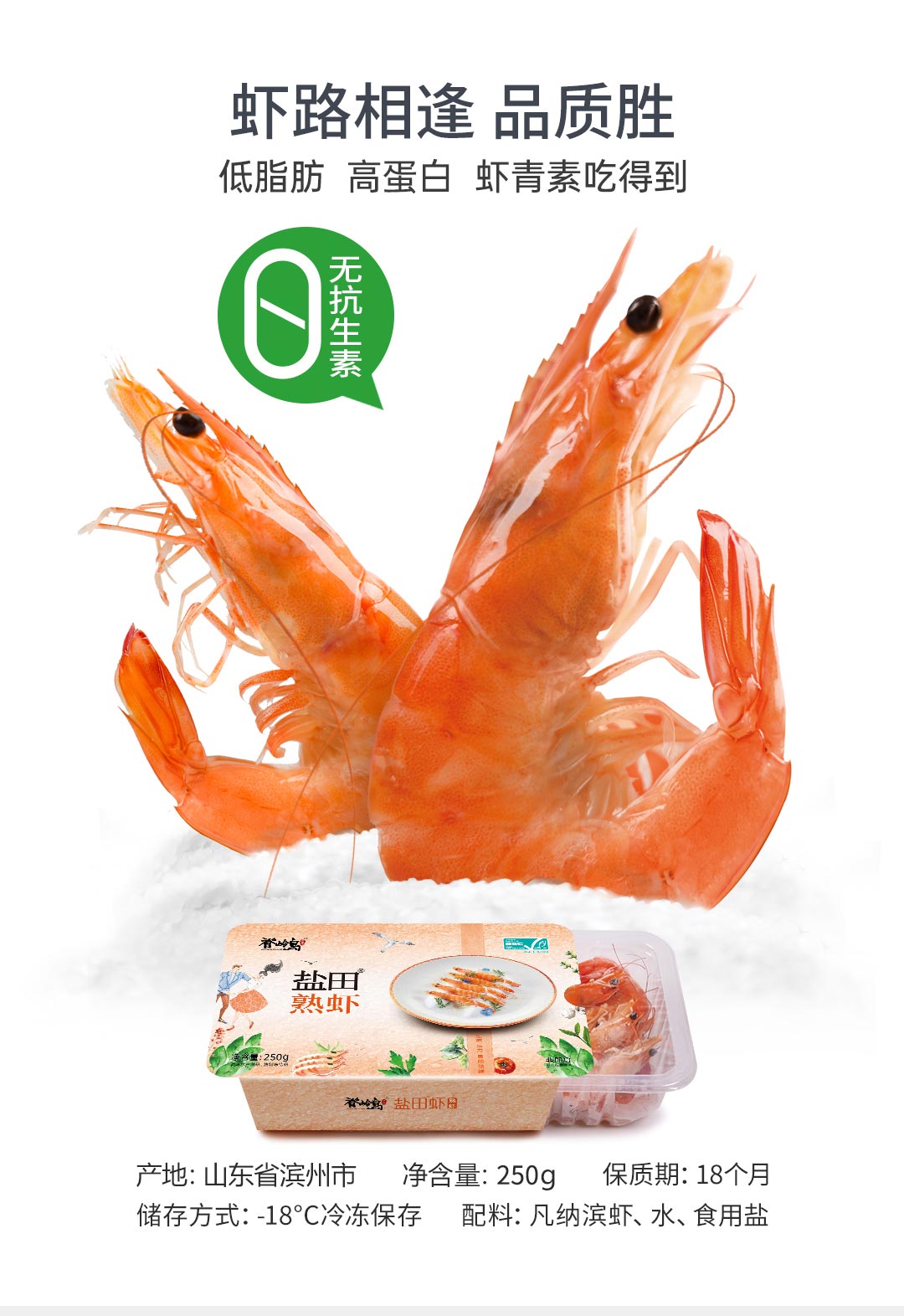 脊岭岛有机熟虾 规格36/40 克重250g/盒