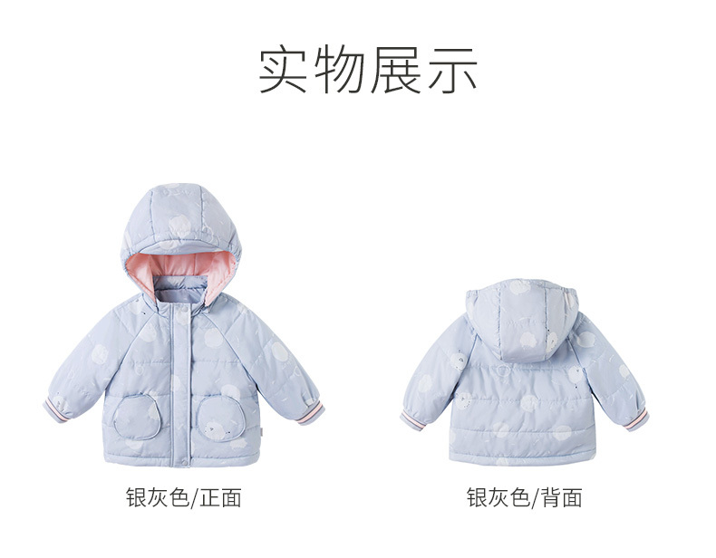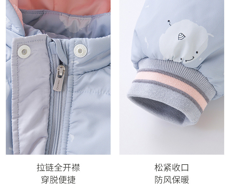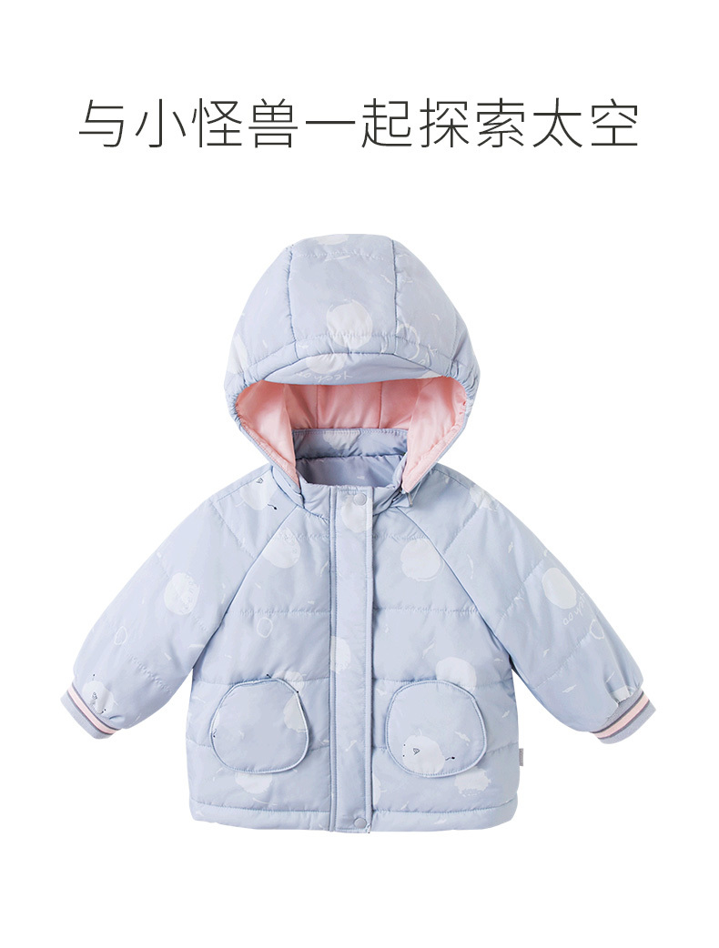 【新会员4折内购】英氏童装儿童外套冬季夹棉连帽大衣女童保暖夹克冬装