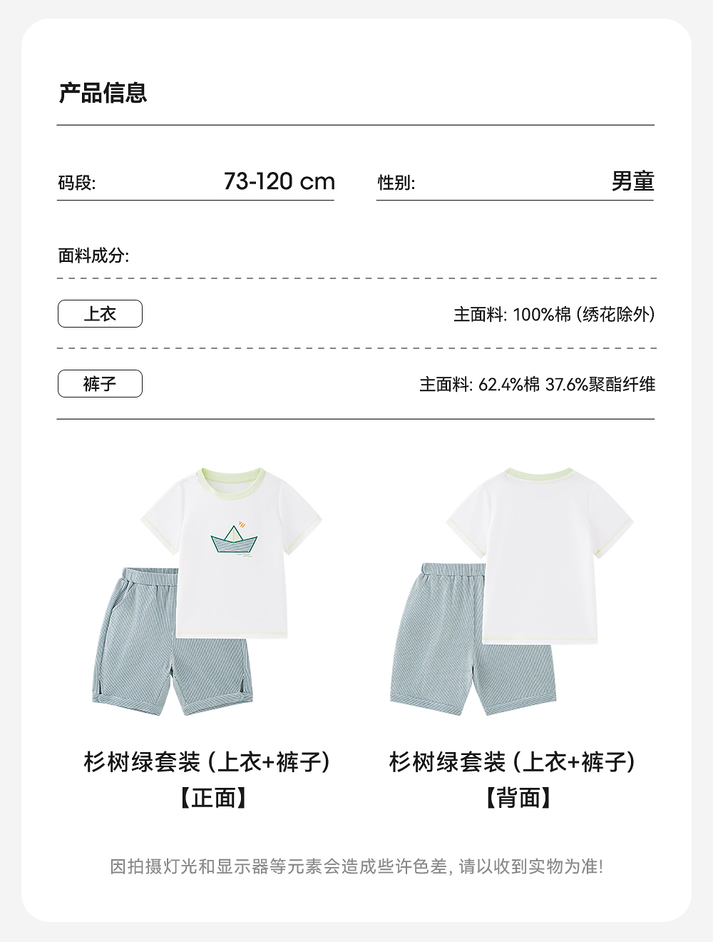 【商场同款】英氏童装儿童休闲套装夏季短袖透气男童T恤中裤套装