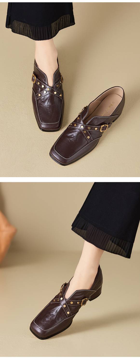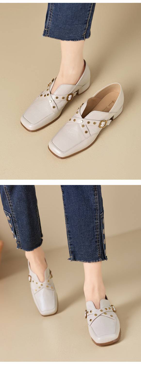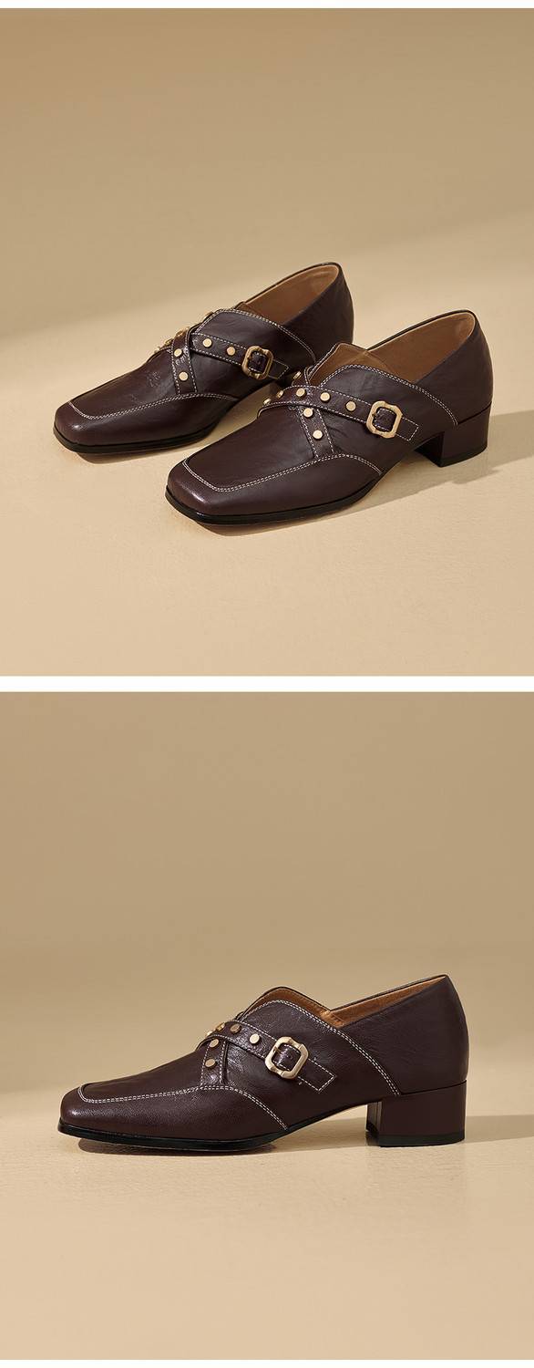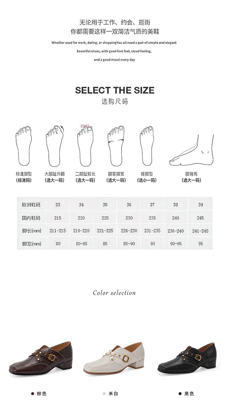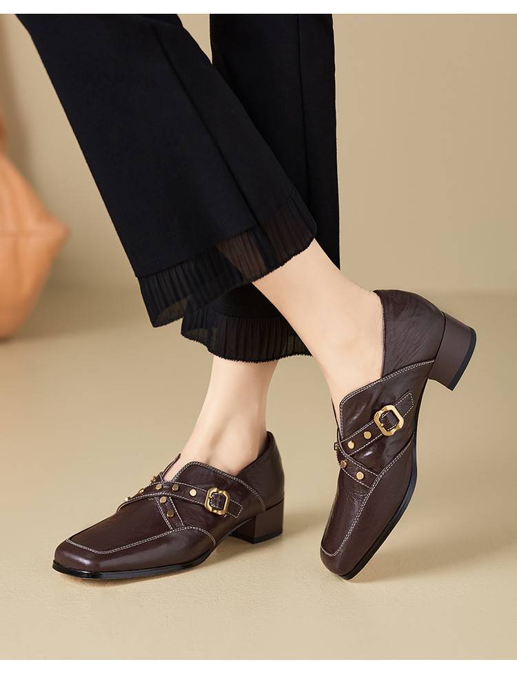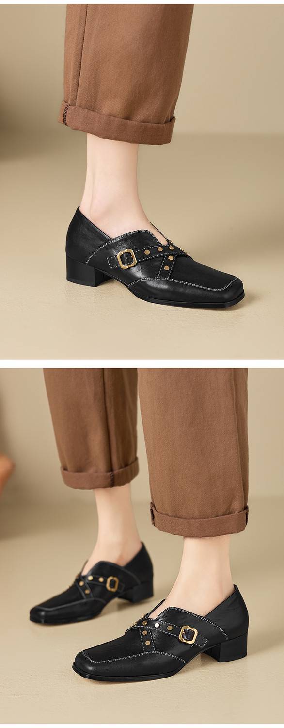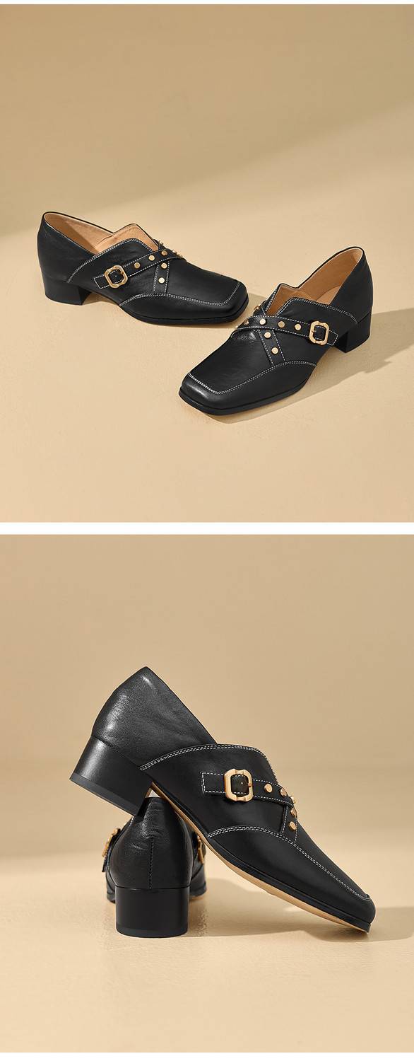【预售7天】铆钉皮带扣乐福鞋方头中粗跟小皮鞋MBJR&5928
