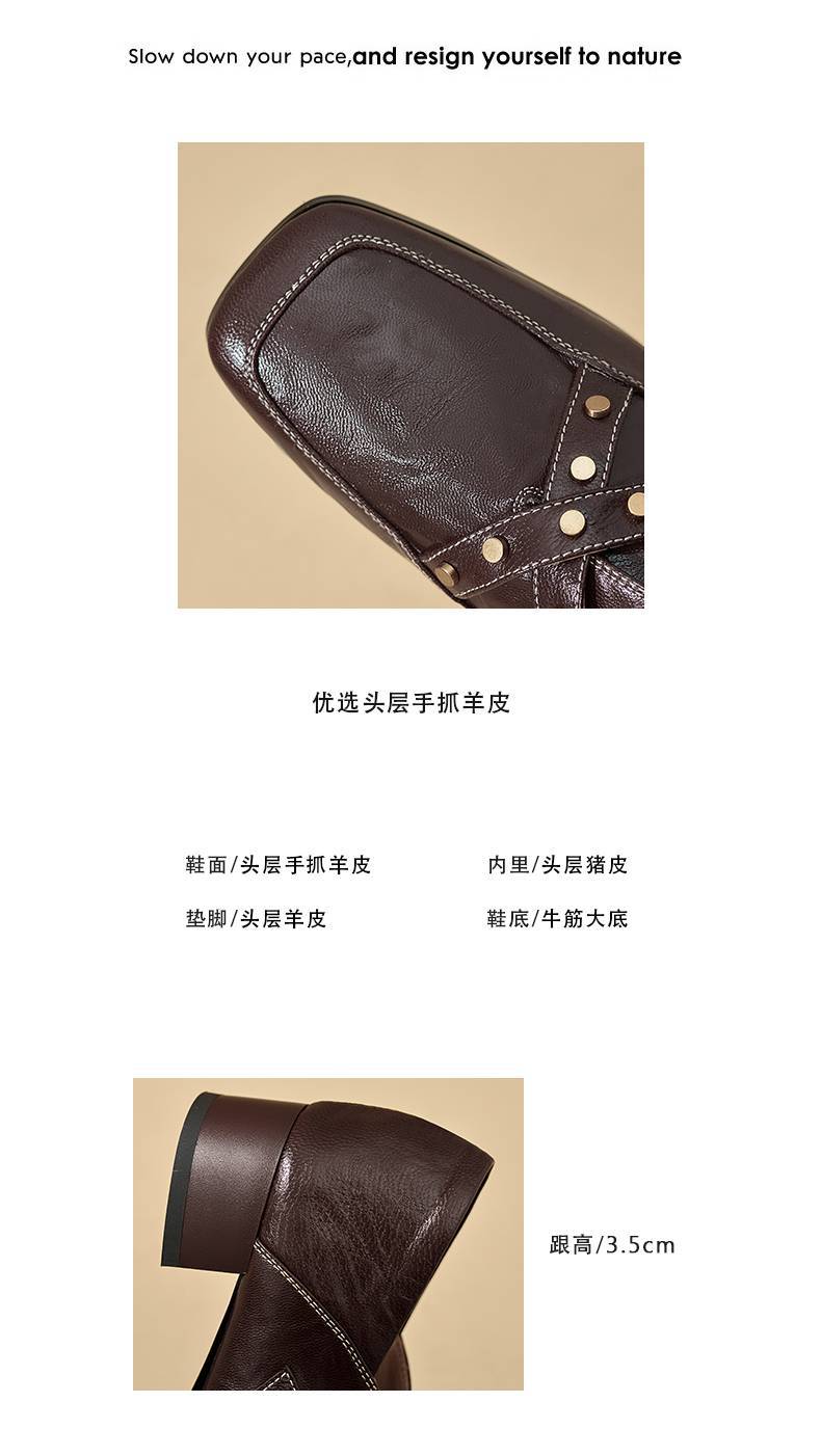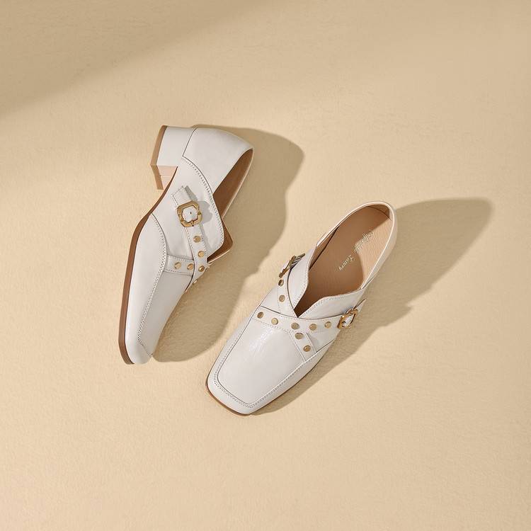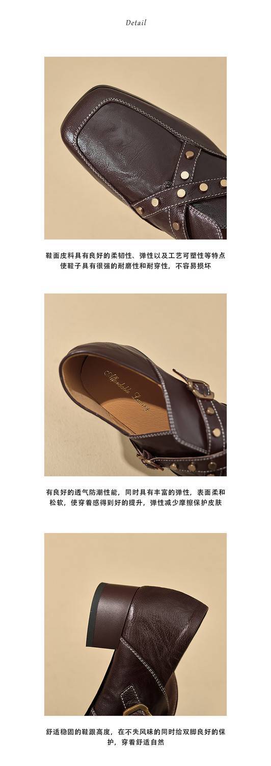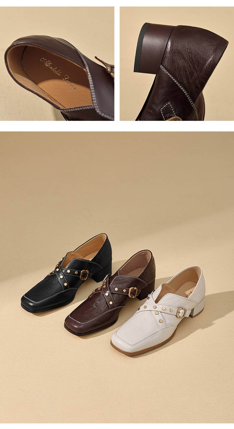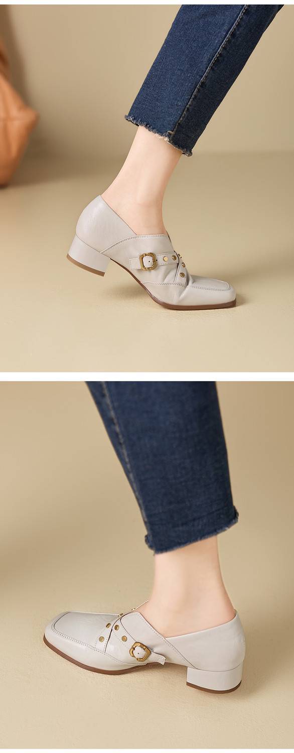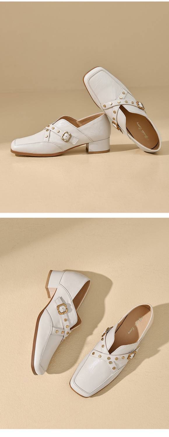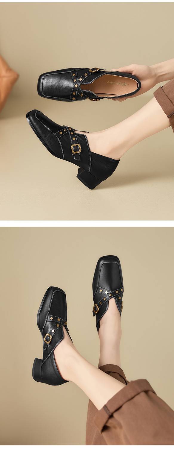 【预售7天】铆钉皮带扣乐福鞋方头中粗跟小皮鞋MBJR&5928