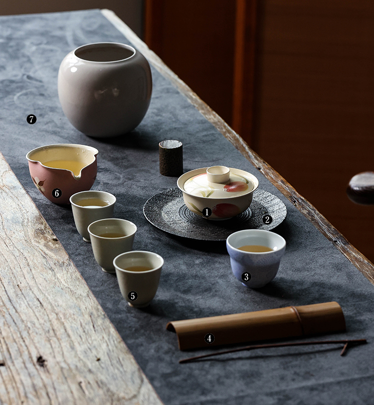 茶香记 牧渔郁金香盖碗100ml陶瓷泡茶碗素雅主泡器茶室功夫茶具