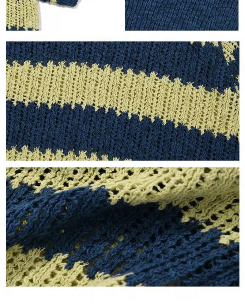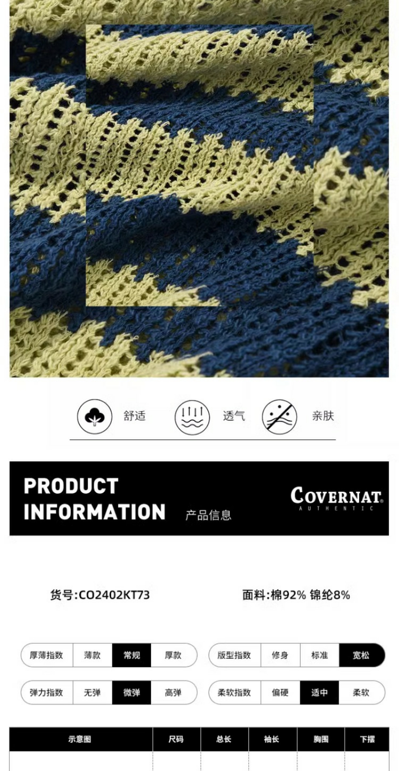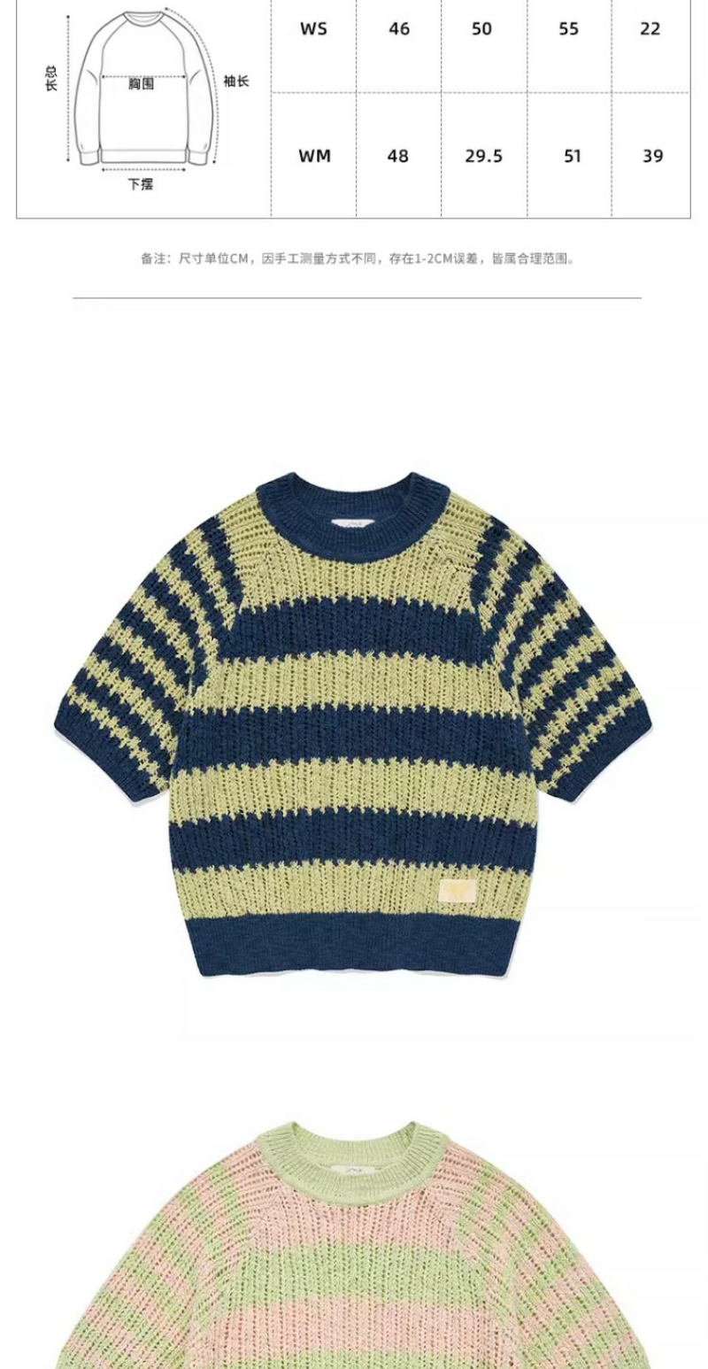covernat韩国潮牌时尚潮酷短袖女士条纹中款针织衫2024春夏新品CO2402KT73