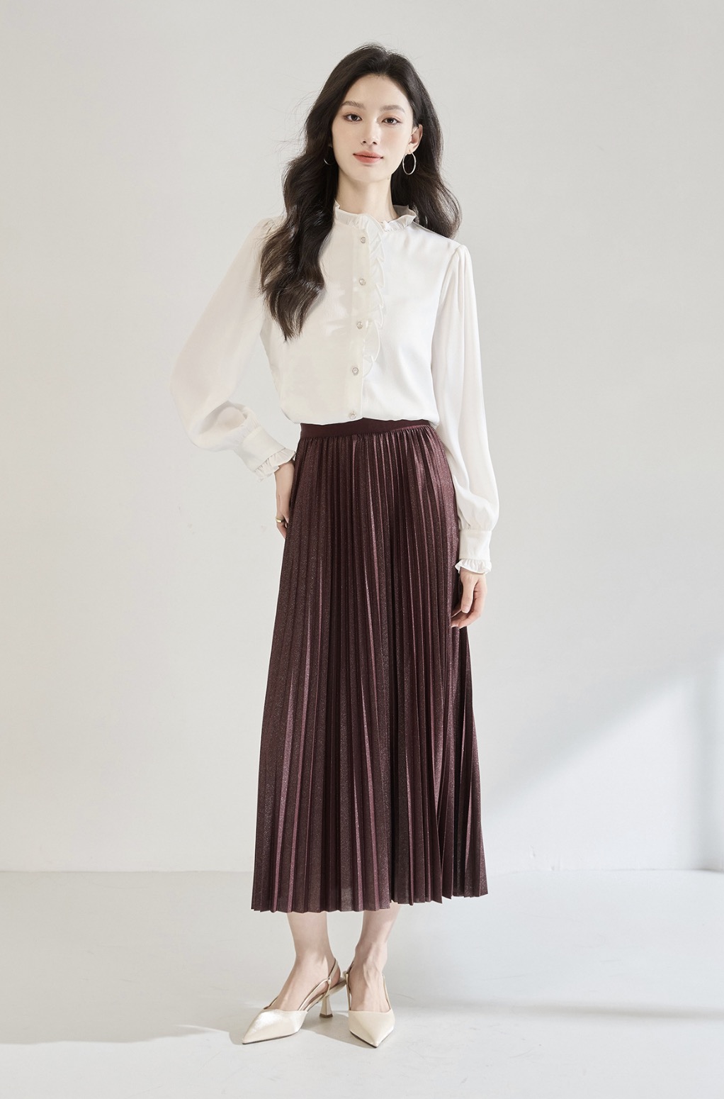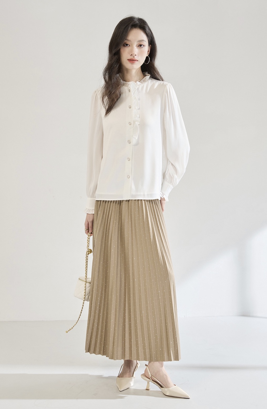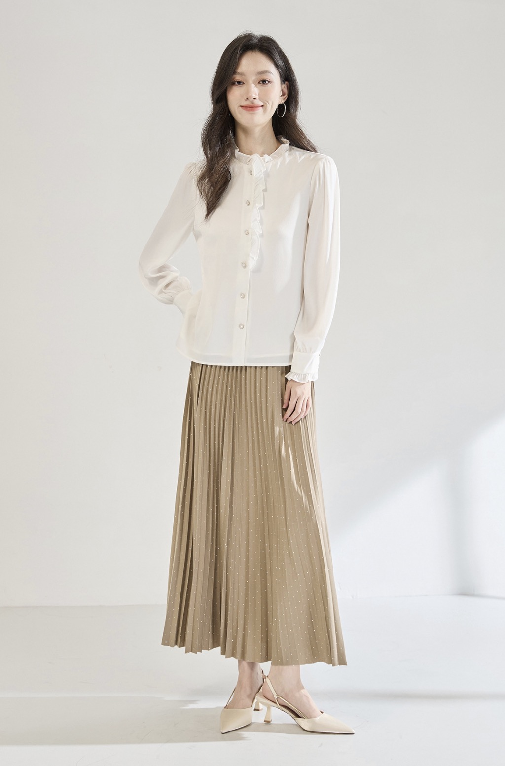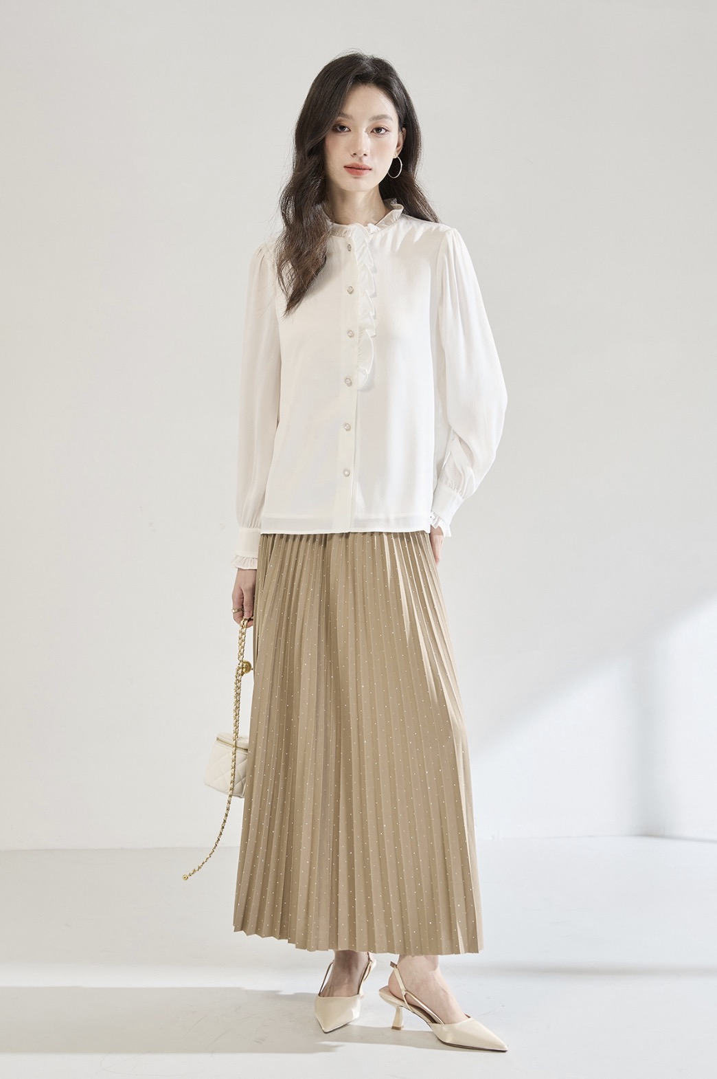 「高货sh」全新升级【铂金会员220/天猫289/差价69】(12122)洛诗琳白色木耳边立领衬衫2025秋季优雅通勤百搭雪纺上衣