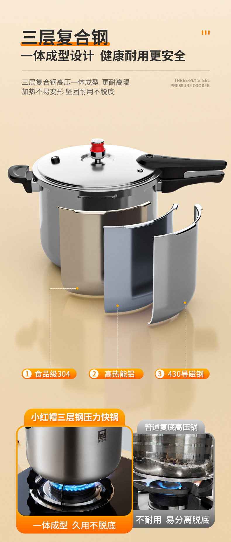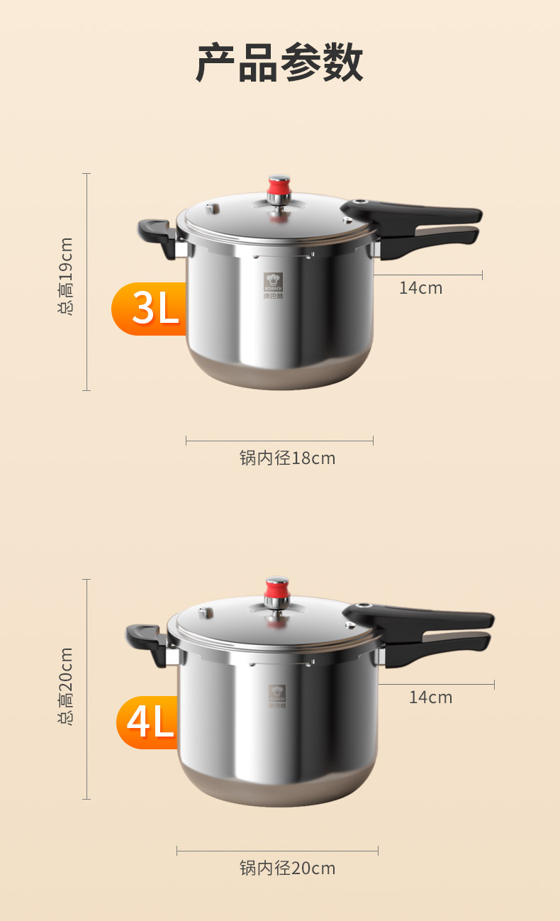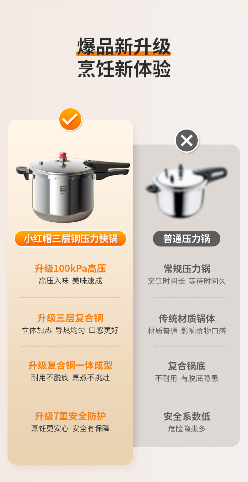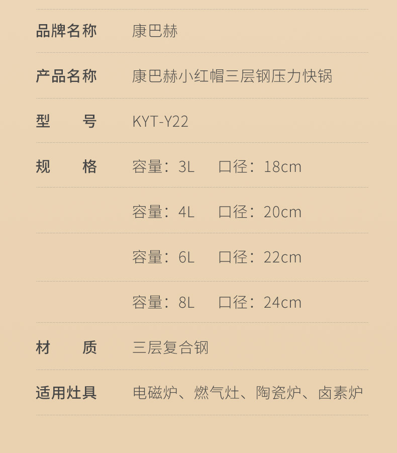 康巴赫小红帽三层钢压力快锅KYT-Y22(口径22cm)/1件(6L)补单专用