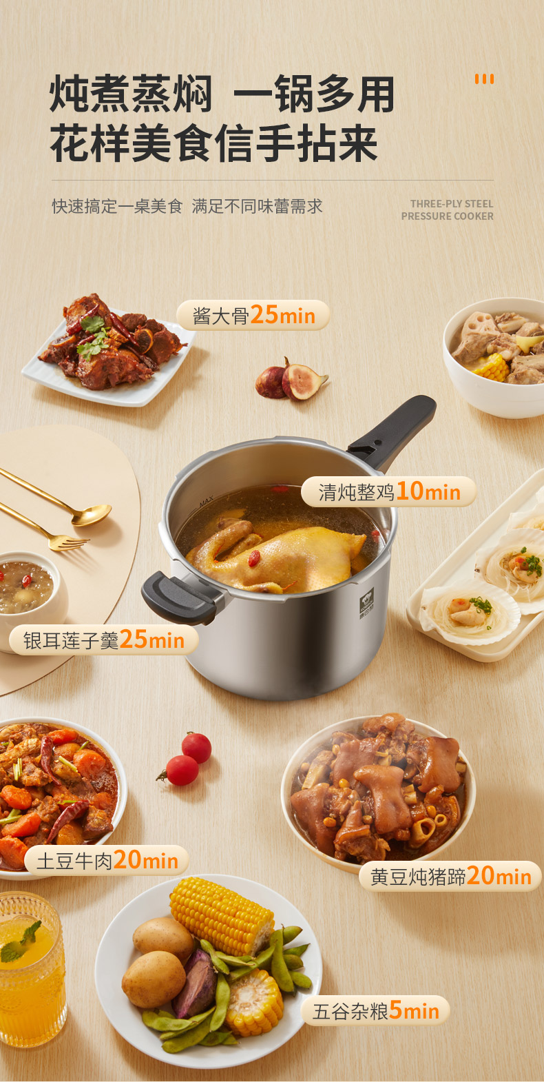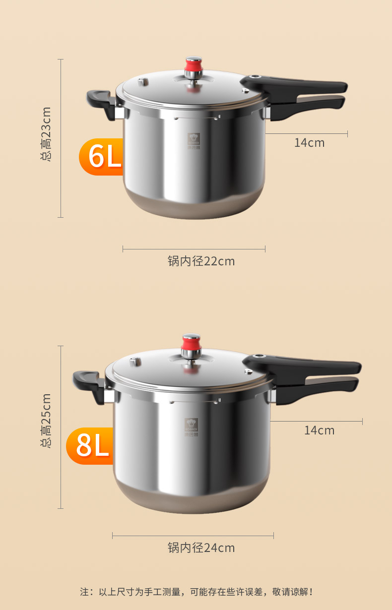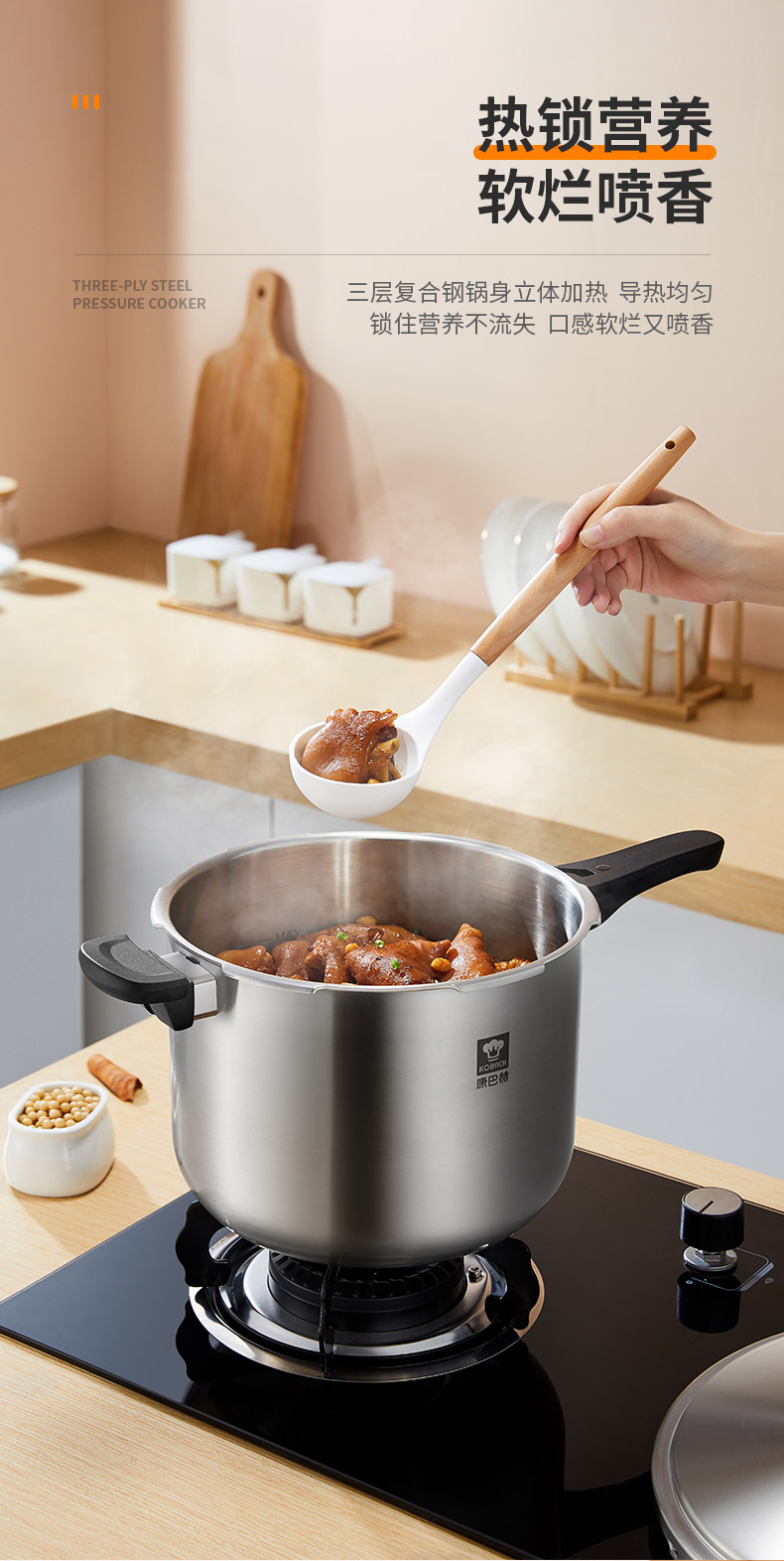 康巴赫小红帽三层钢压力快锅KYT-Y22(口径22cm)/1件(6L)补单专用