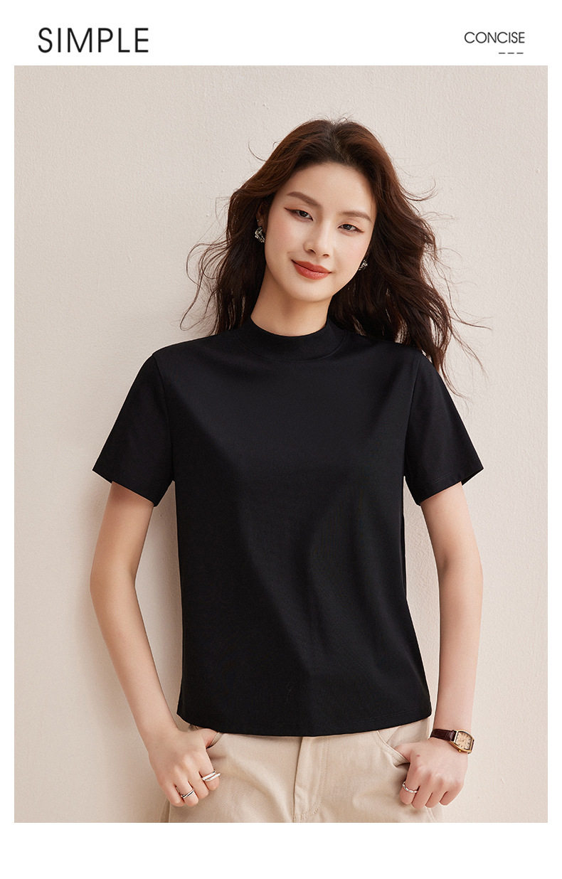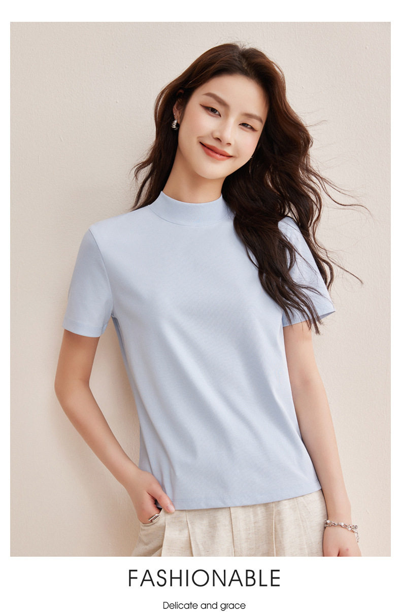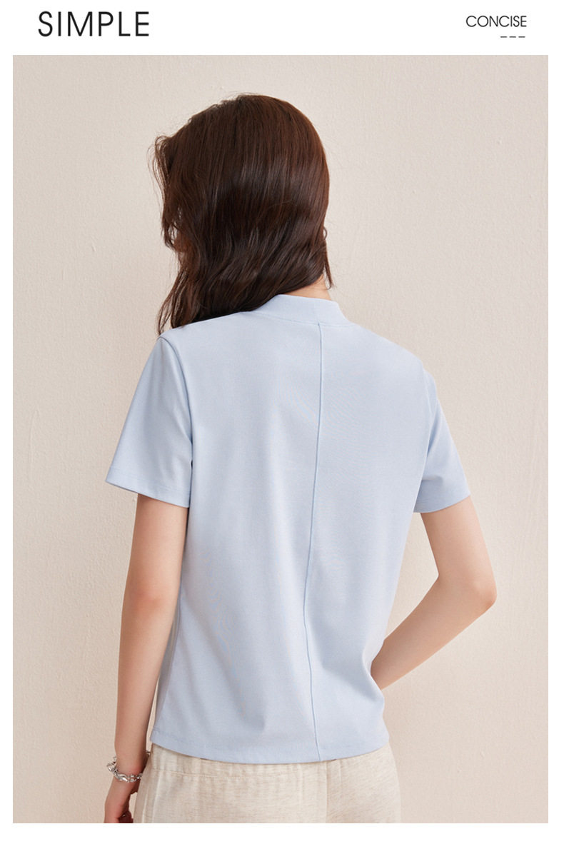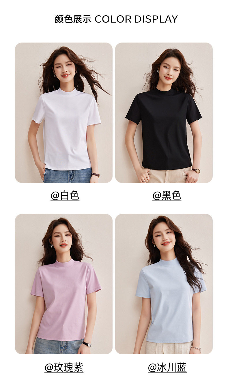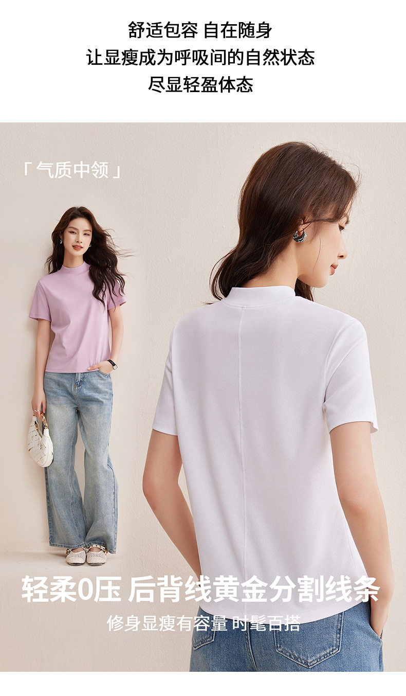 「自j」全新升级【铂金会员146/天猫189/差价43】(11314)洛诗琳气质后中线T恤2026春夏丝光棉半高领立领纯色打底上衣