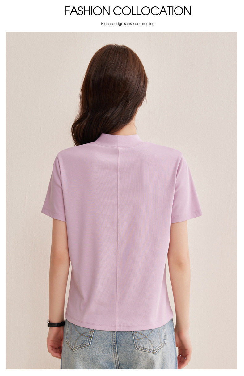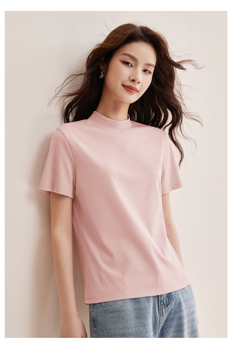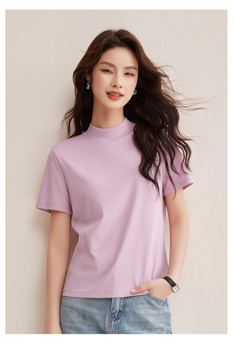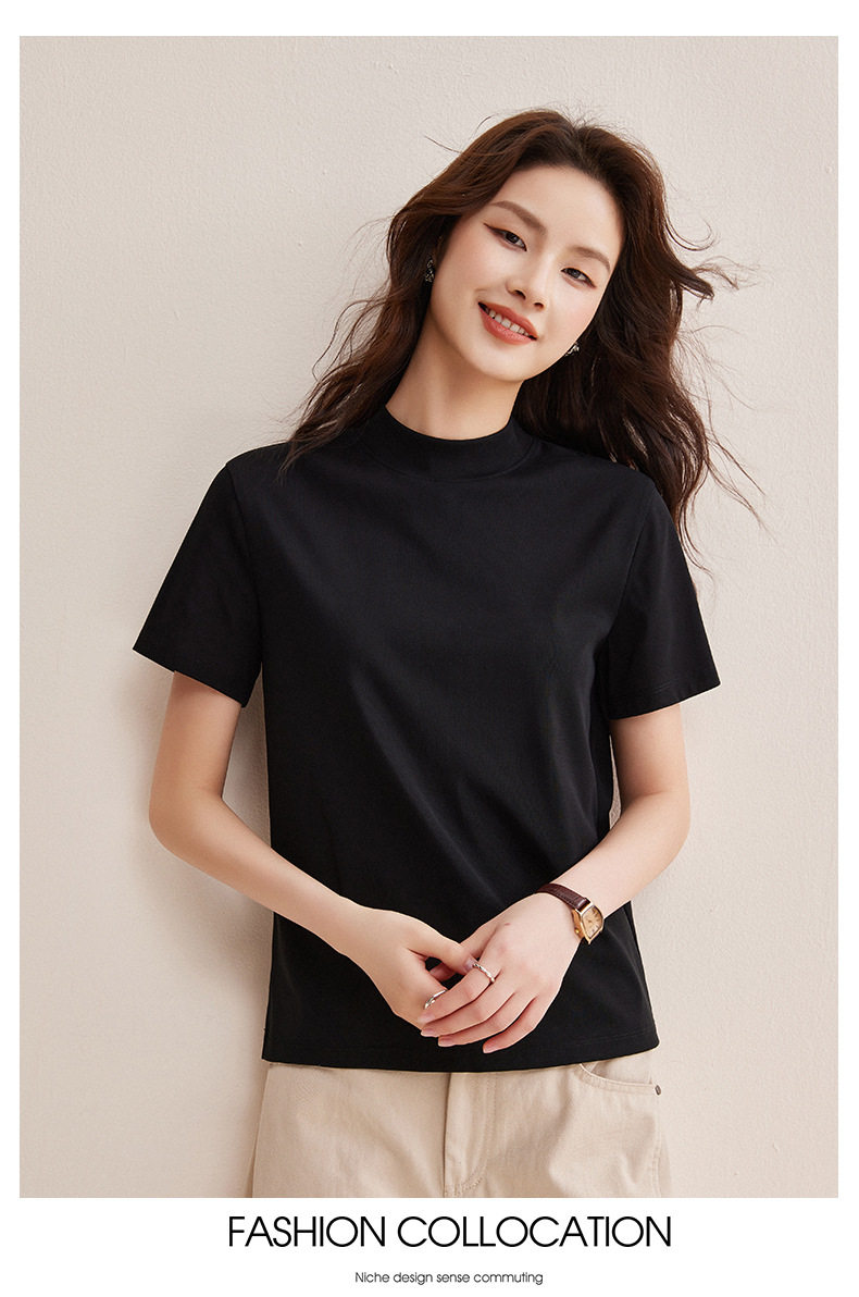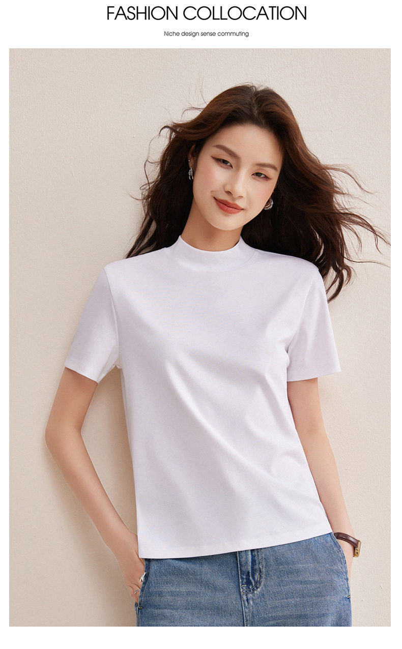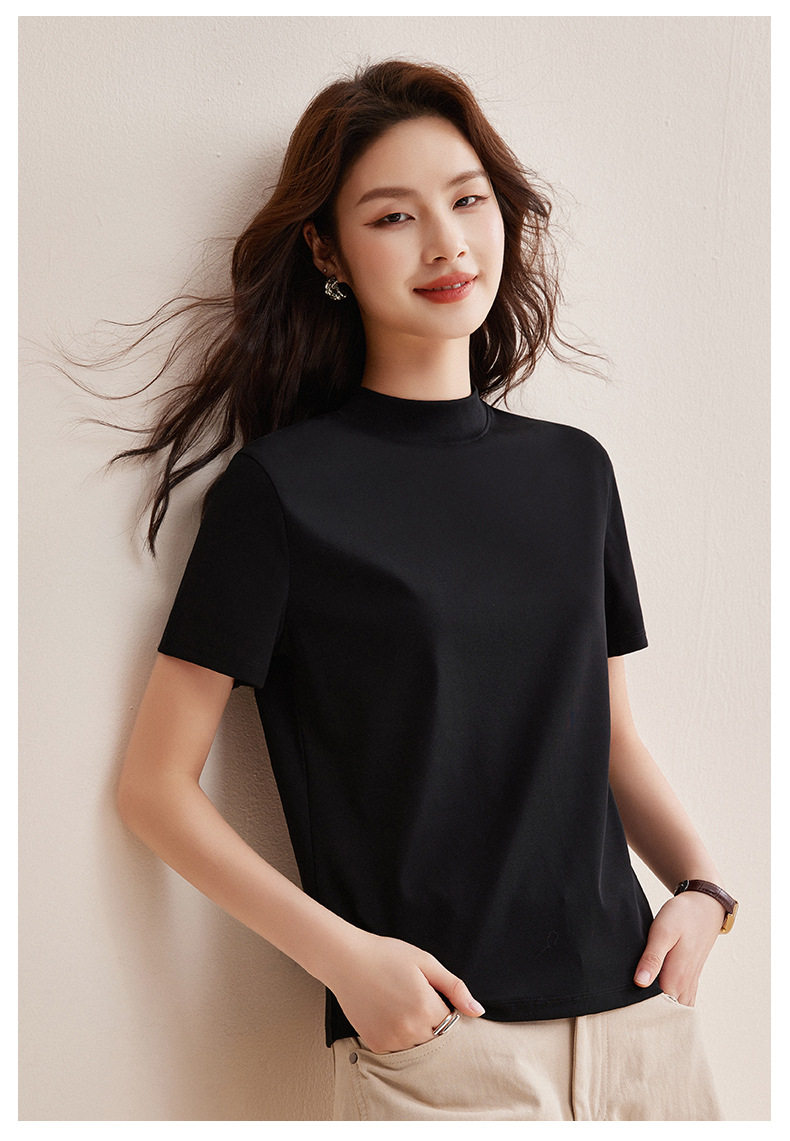 「自j」全新升级【铂金会员146/天猫189/差价43】(11314)洛诗琳气质后中线T恤2026春夏丝光棉半高领立领纯色打底上衣