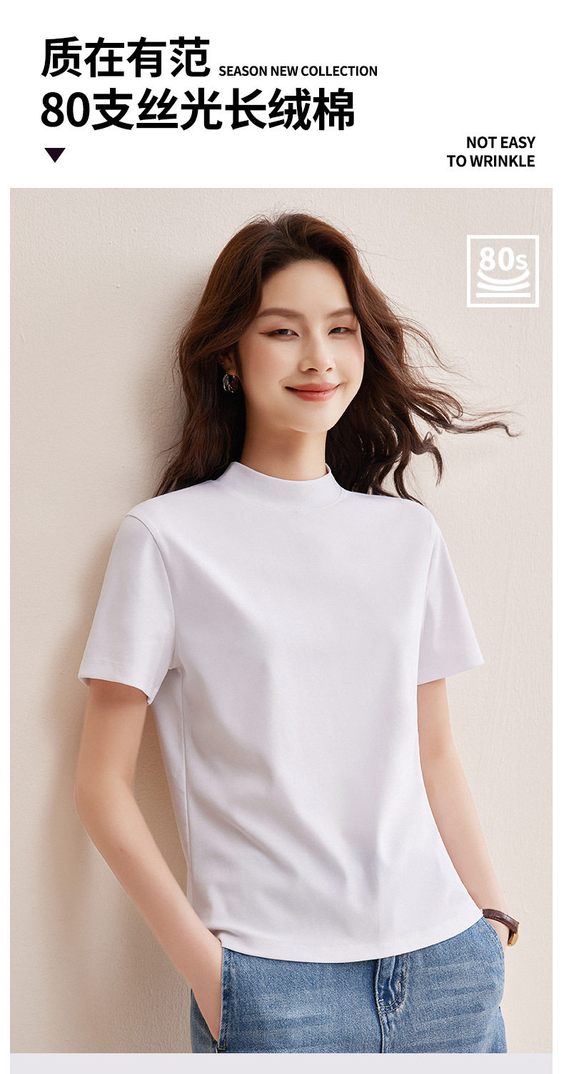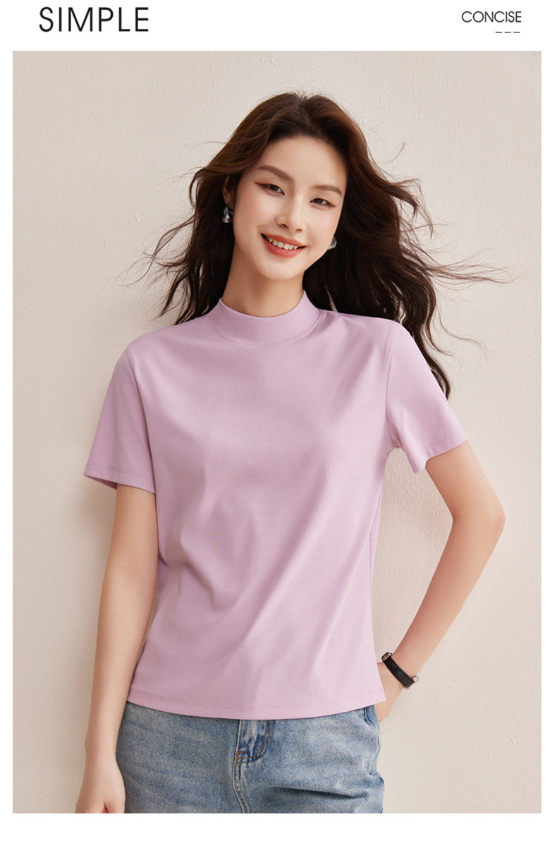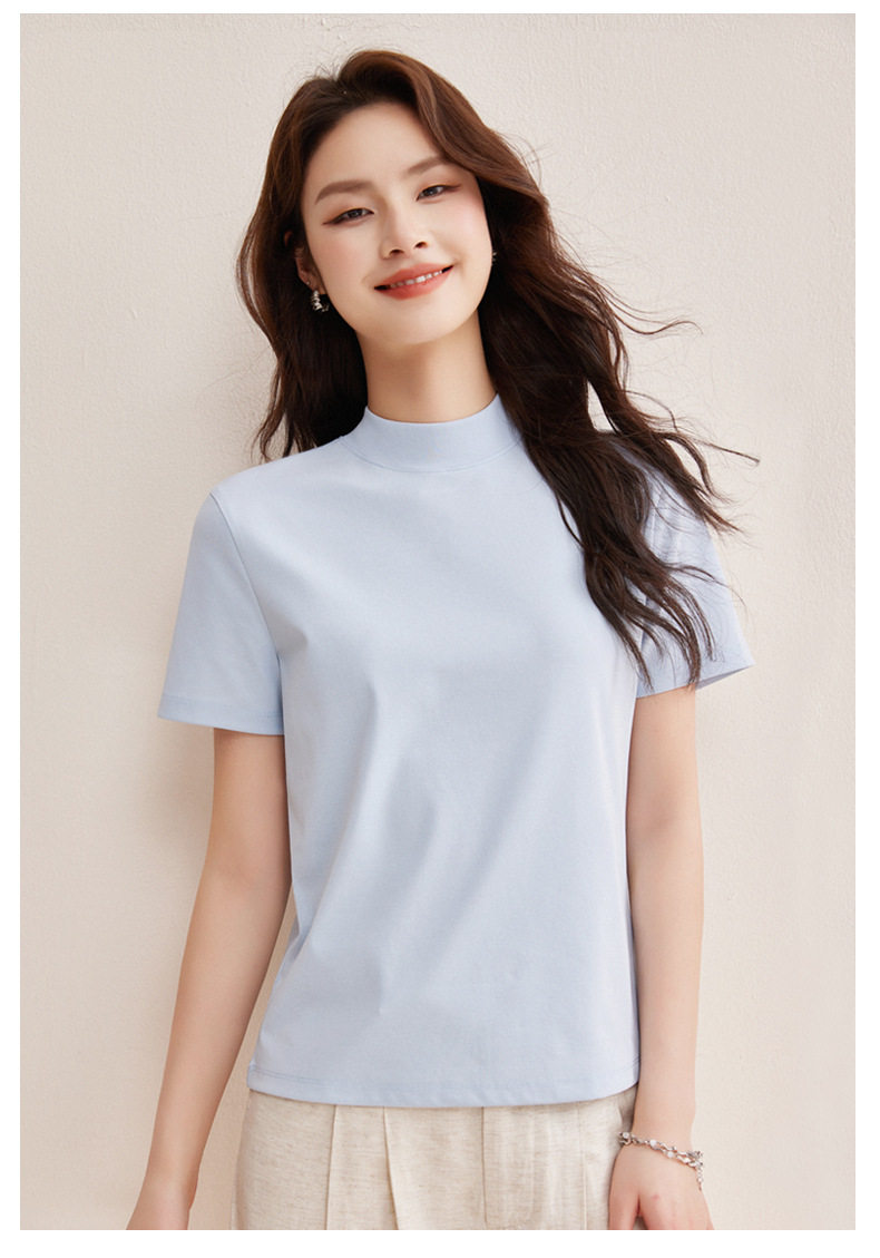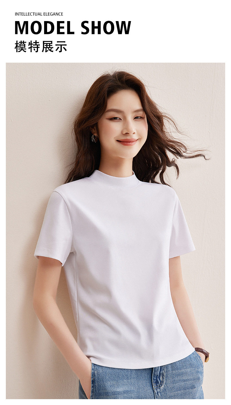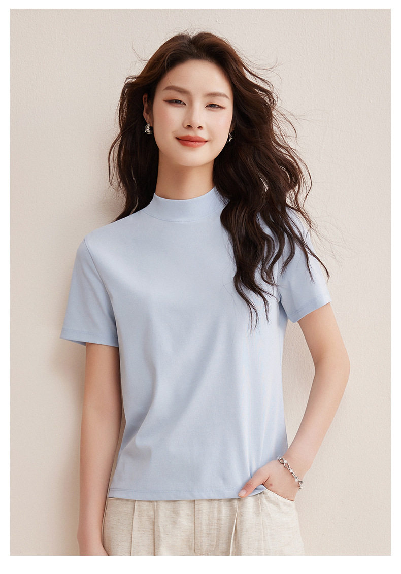 「自j」全新升级【铂金会员146/天猫189/差价43】(11314)洛诗琳气质后中线T恤2026春夏丝光棉半高领立领纯色打底上衣