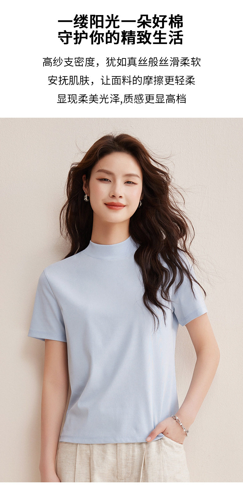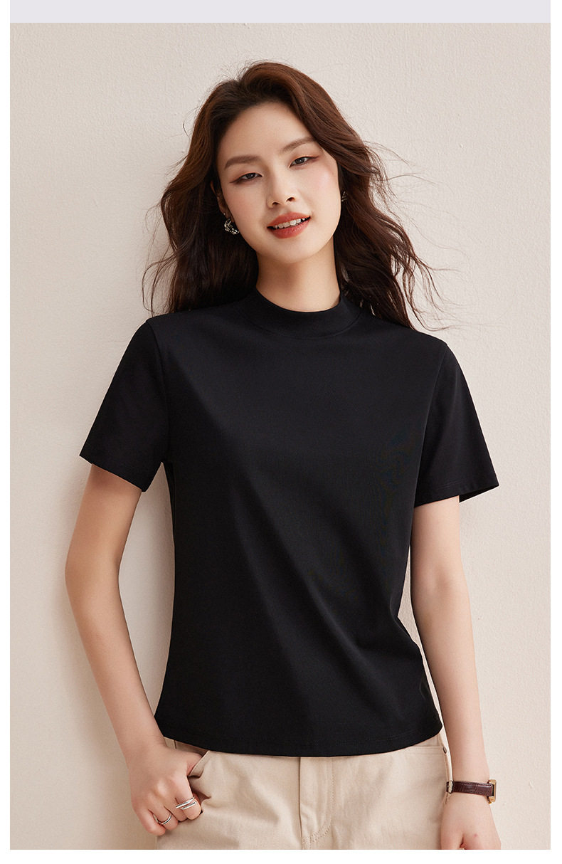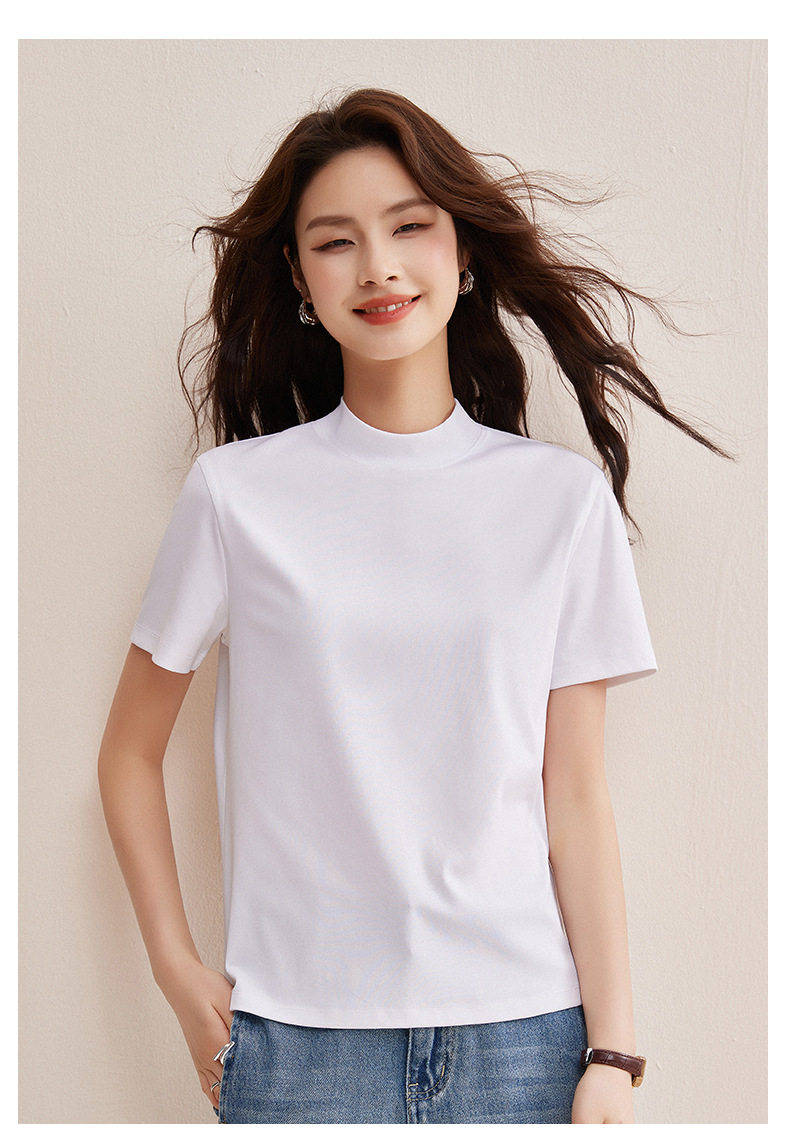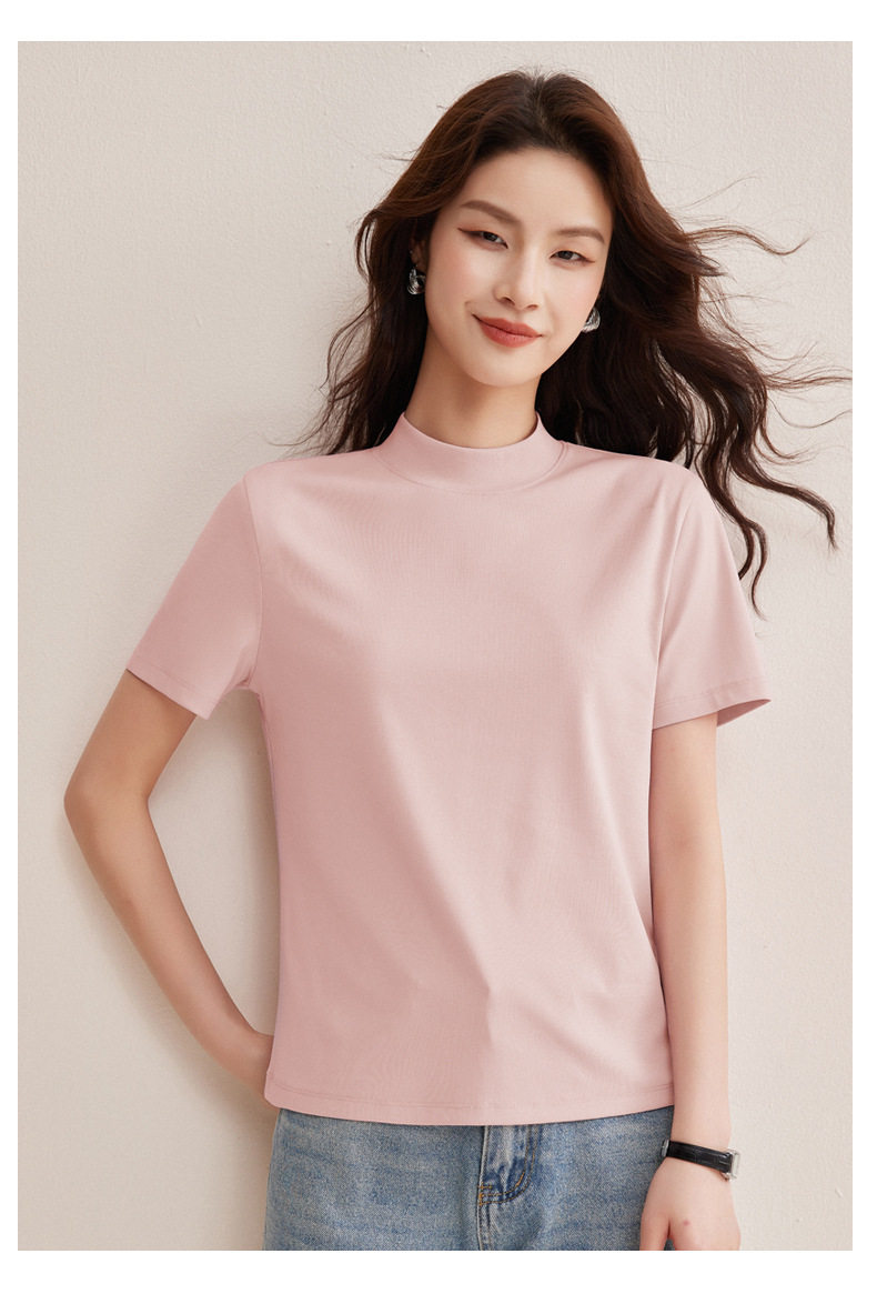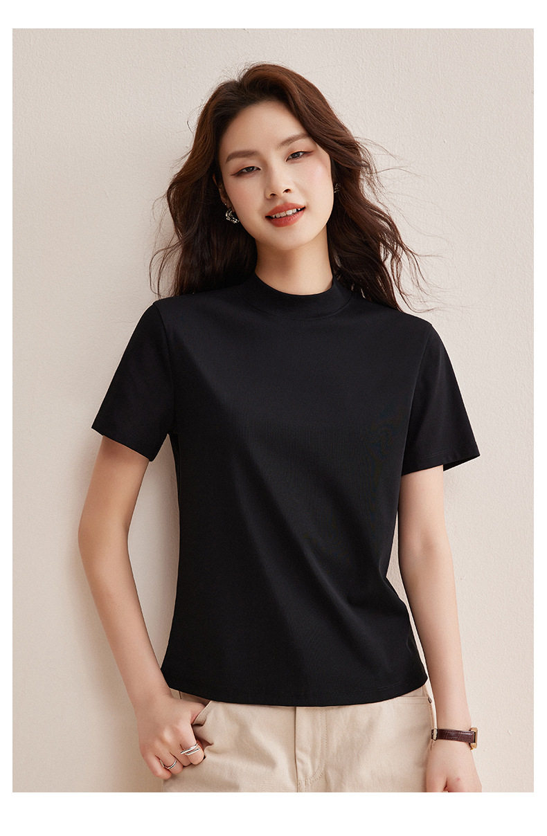 「自j」全新升级【铂金会员146/天猫189/差价43】(11314)洛诗琳气质后中线T恤2026春夏丝光棉半高领立领纯色打底上衣