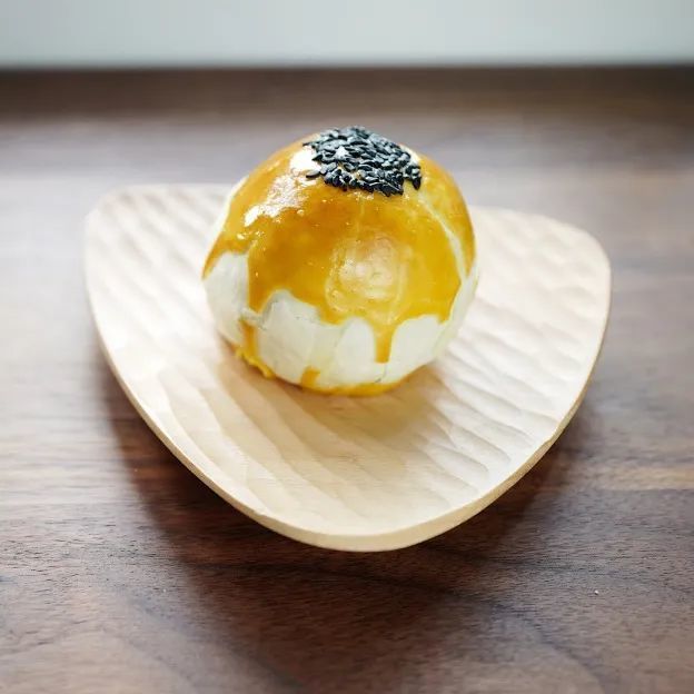 除了传统的红豆沙外,新加入了白莲蓉。红豆沙甜润白莲蓉清香,连同软糯有嚼劲的麻薯包裹住足足3只去除硬心后的现磕现烤咸蛋黄。刷上蛋黄液点上黑芝麻,烤到金黄油亮,滚圆酥香。
