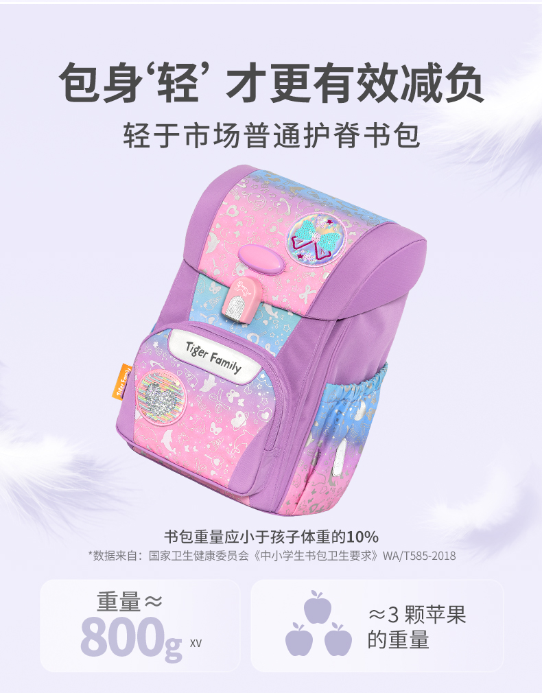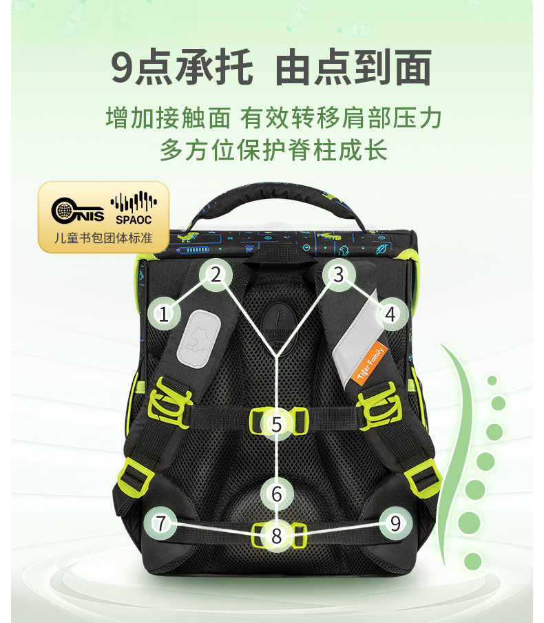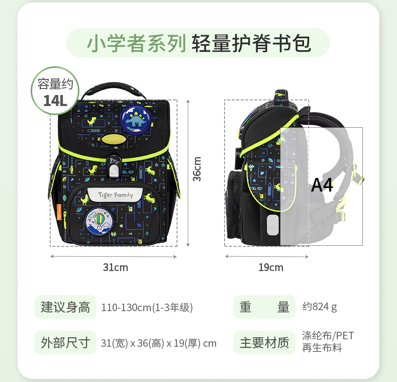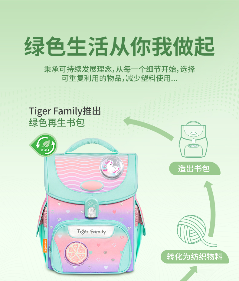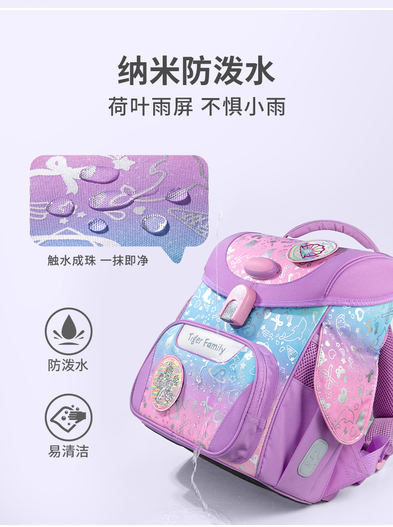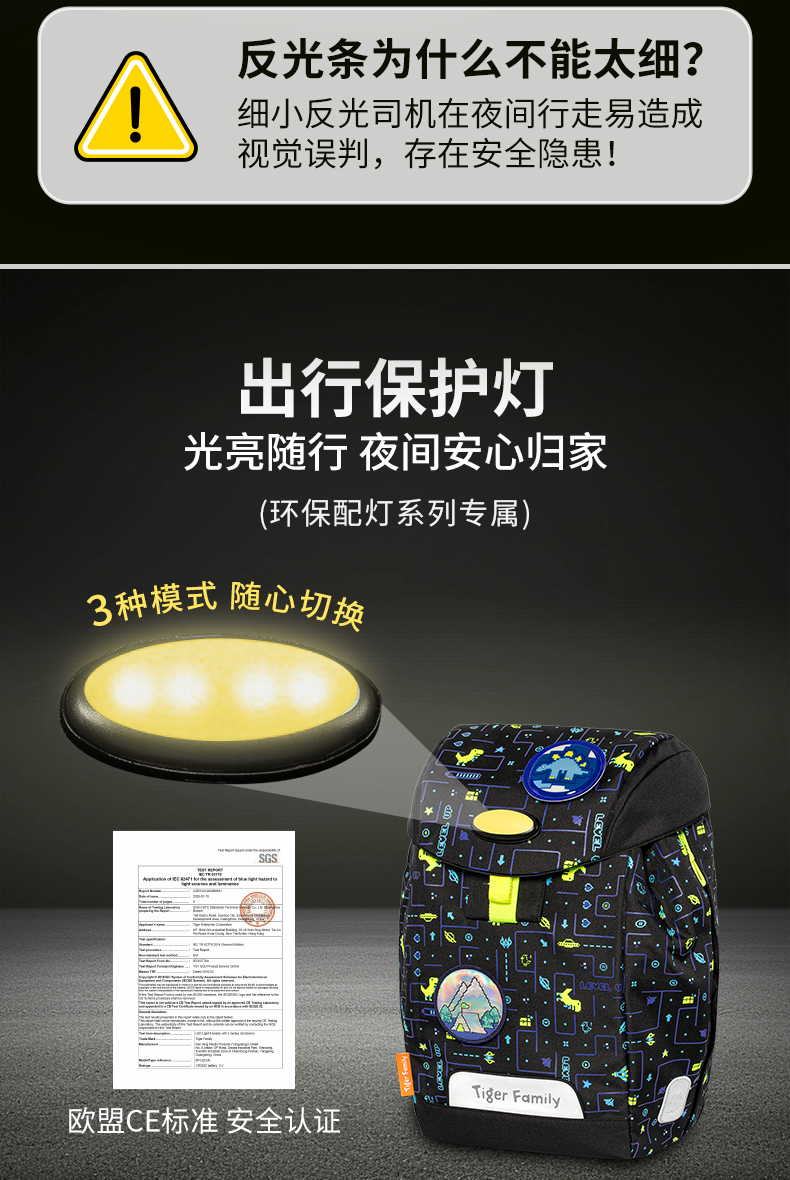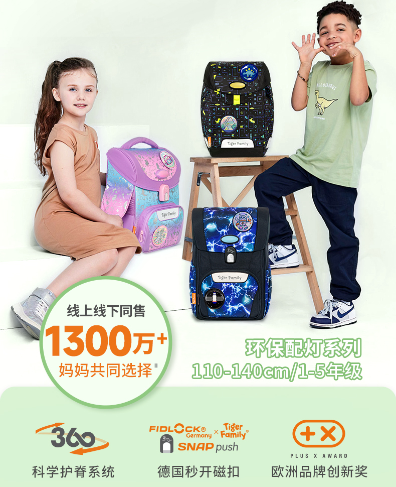 tigerfamily虎米 1-5年级环保配灯男女书包小学生轻便儿童初中减负护脊背包