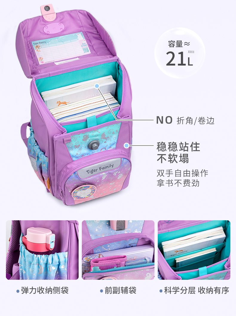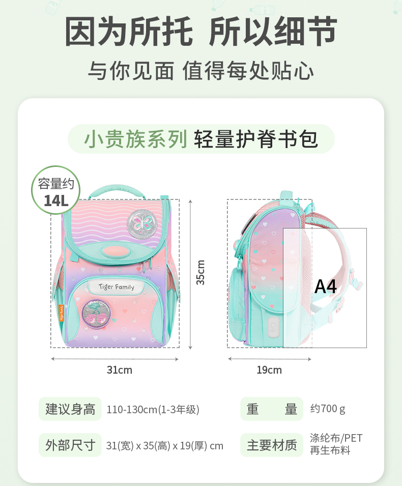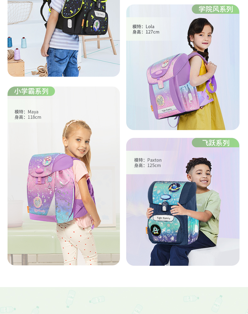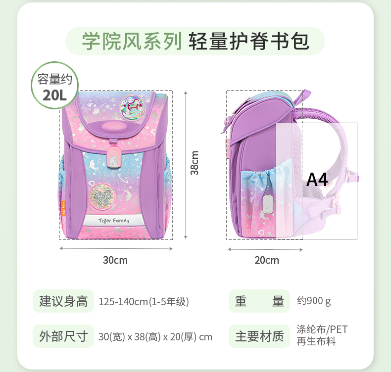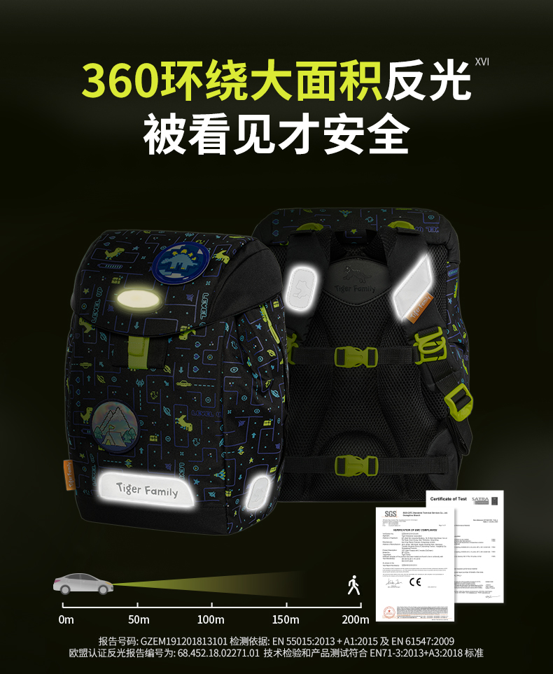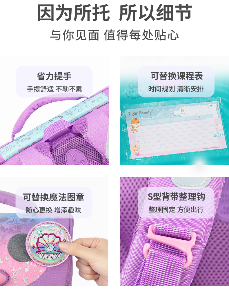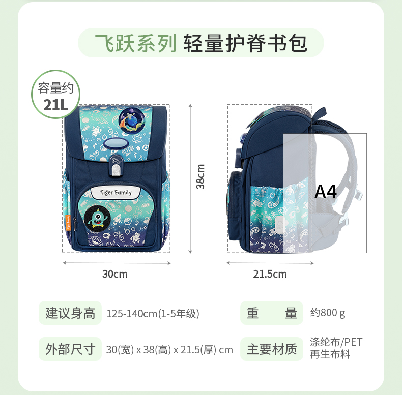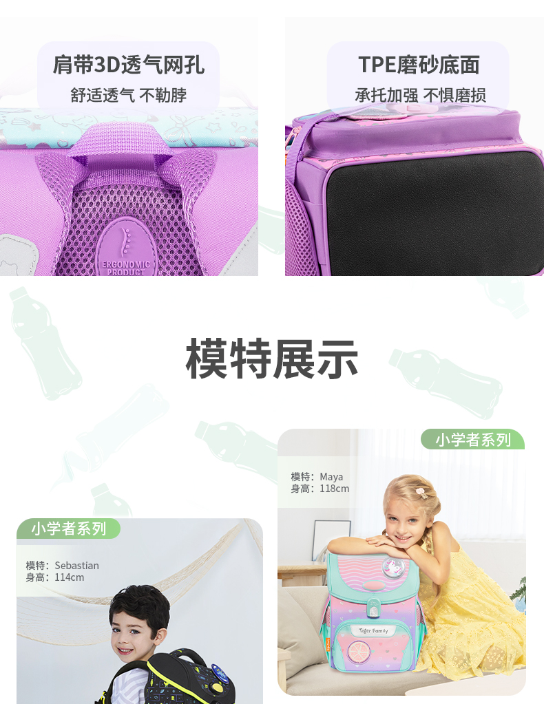 tigerfamily虎米 1-5年级环保配灯男女书包小学生轻便儿童初中减负护脊背包
