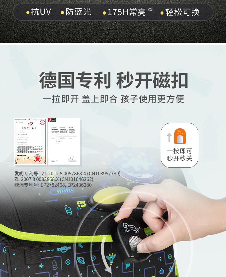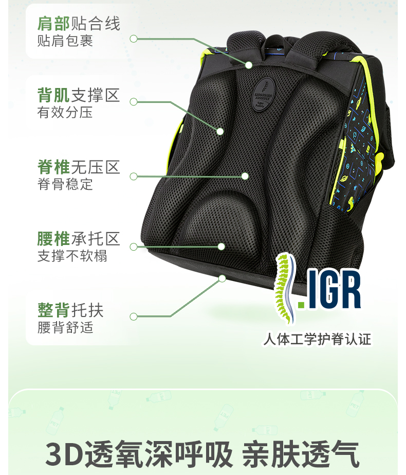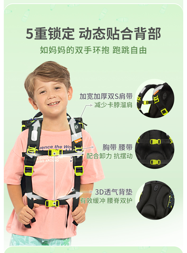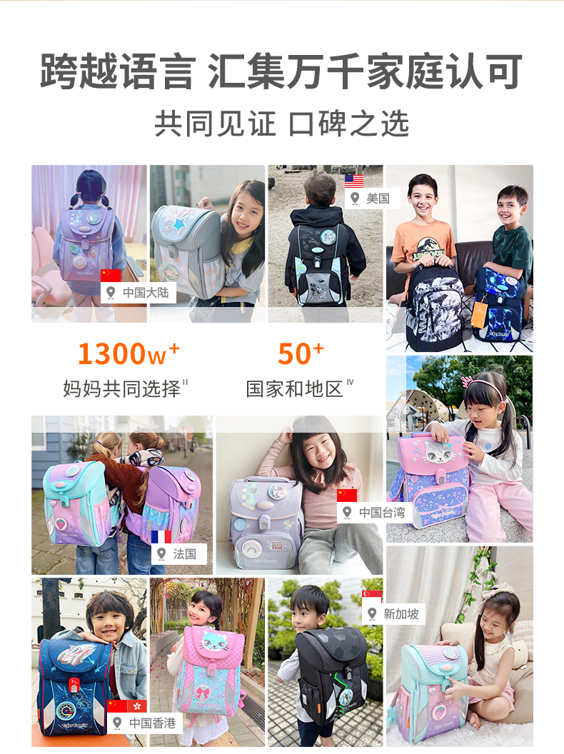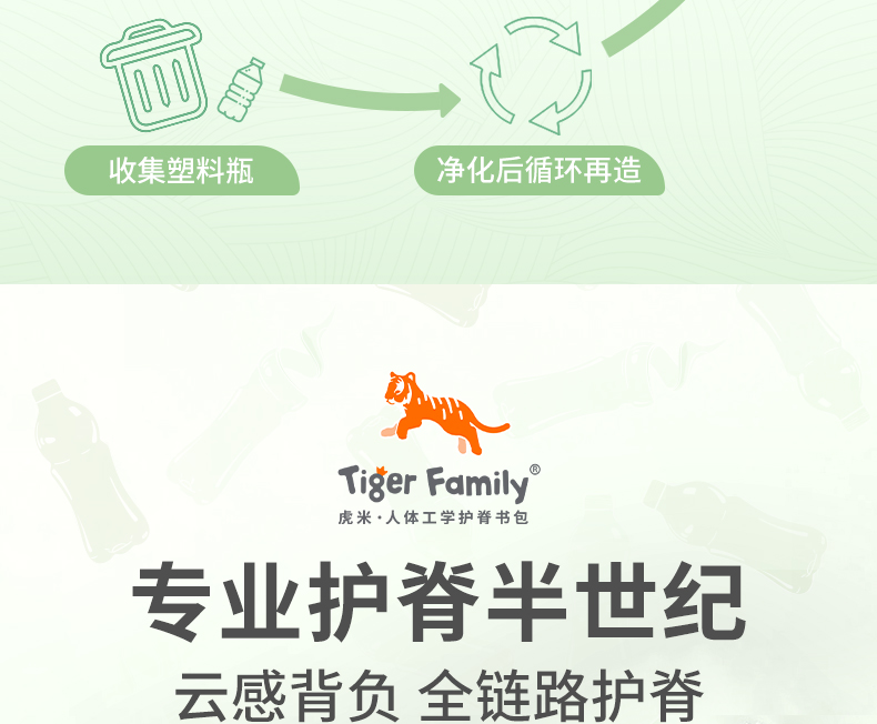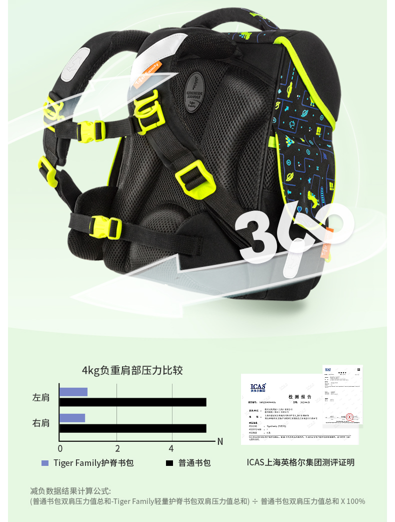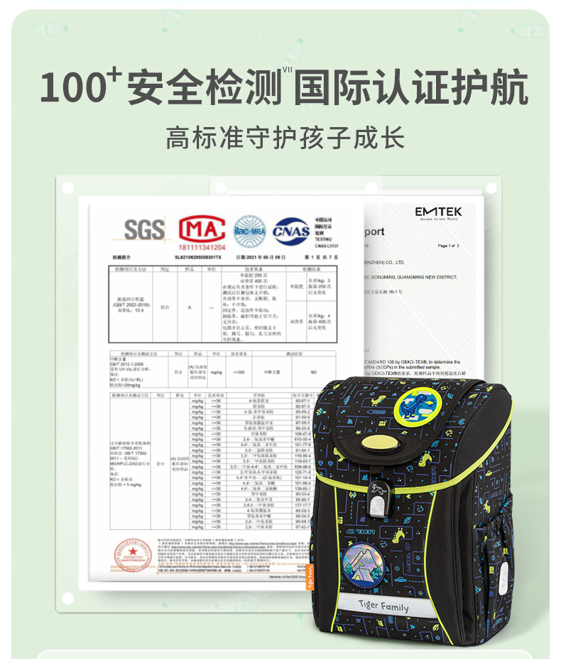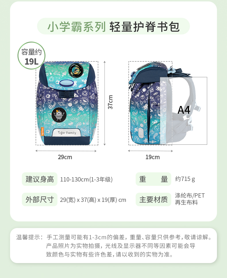tigerfamily虎米 1-5年级环保配灯男女书包小学生轻便儿童初中减负护脊背包