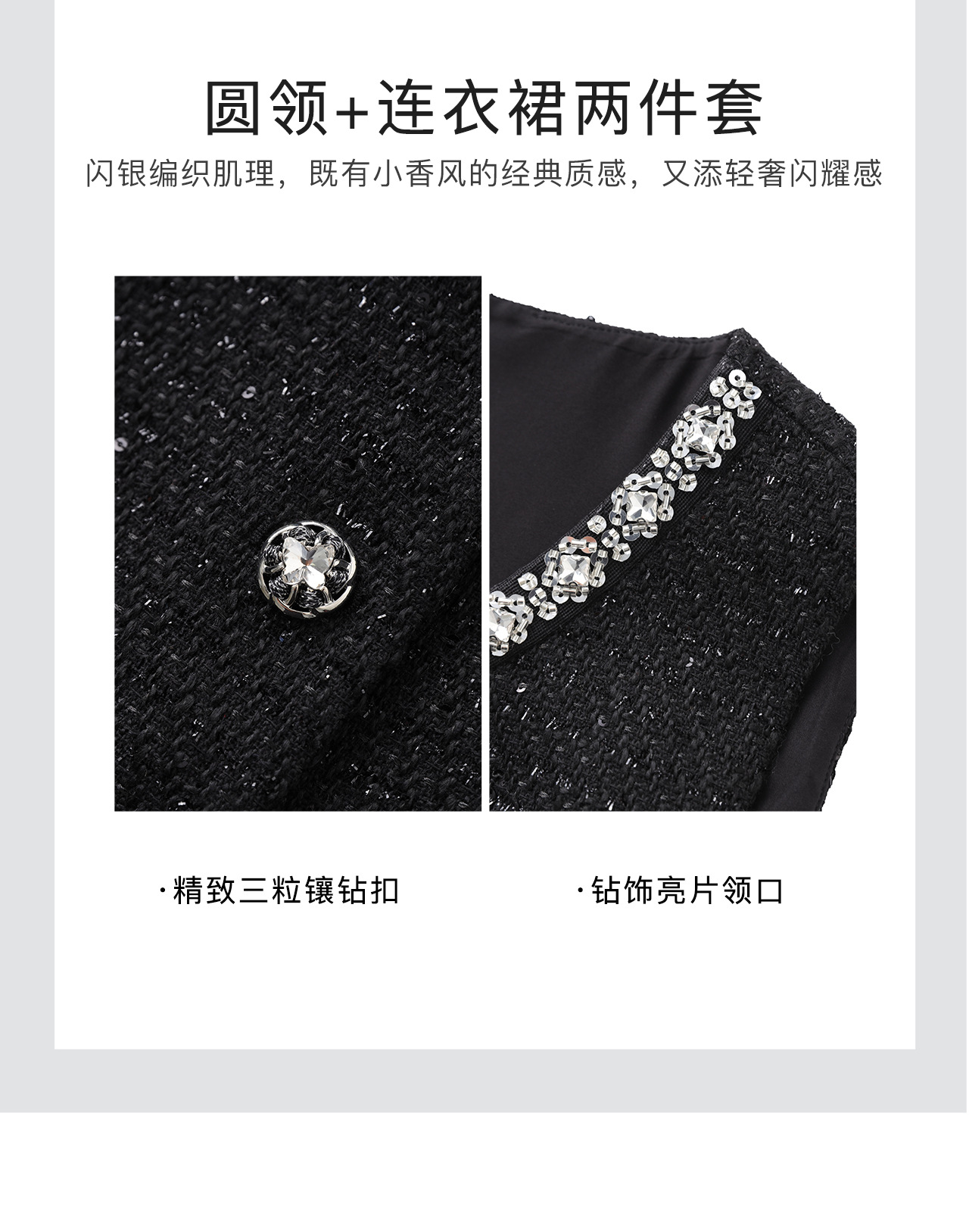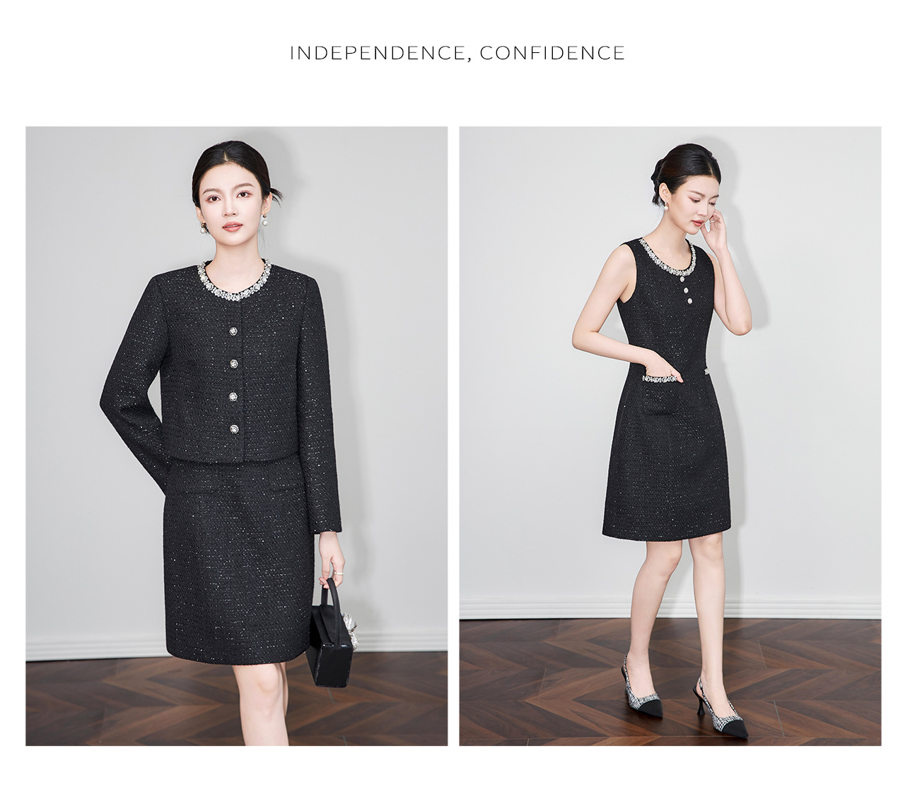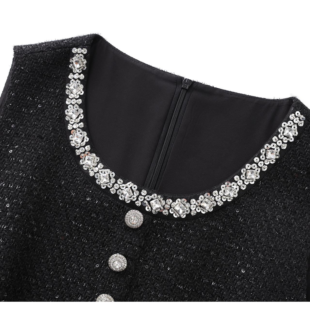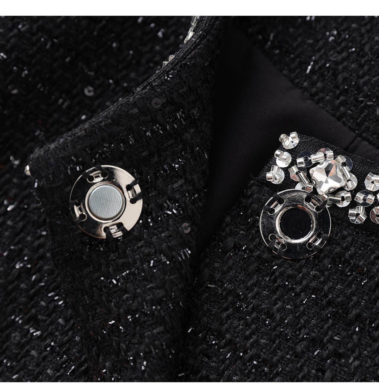「高货wl」全新升级【铂金会员505/天猫679/差价174】(99658)洛诗琳2025秋冬重工钉钻领亮片小香风外套背心裙两件套