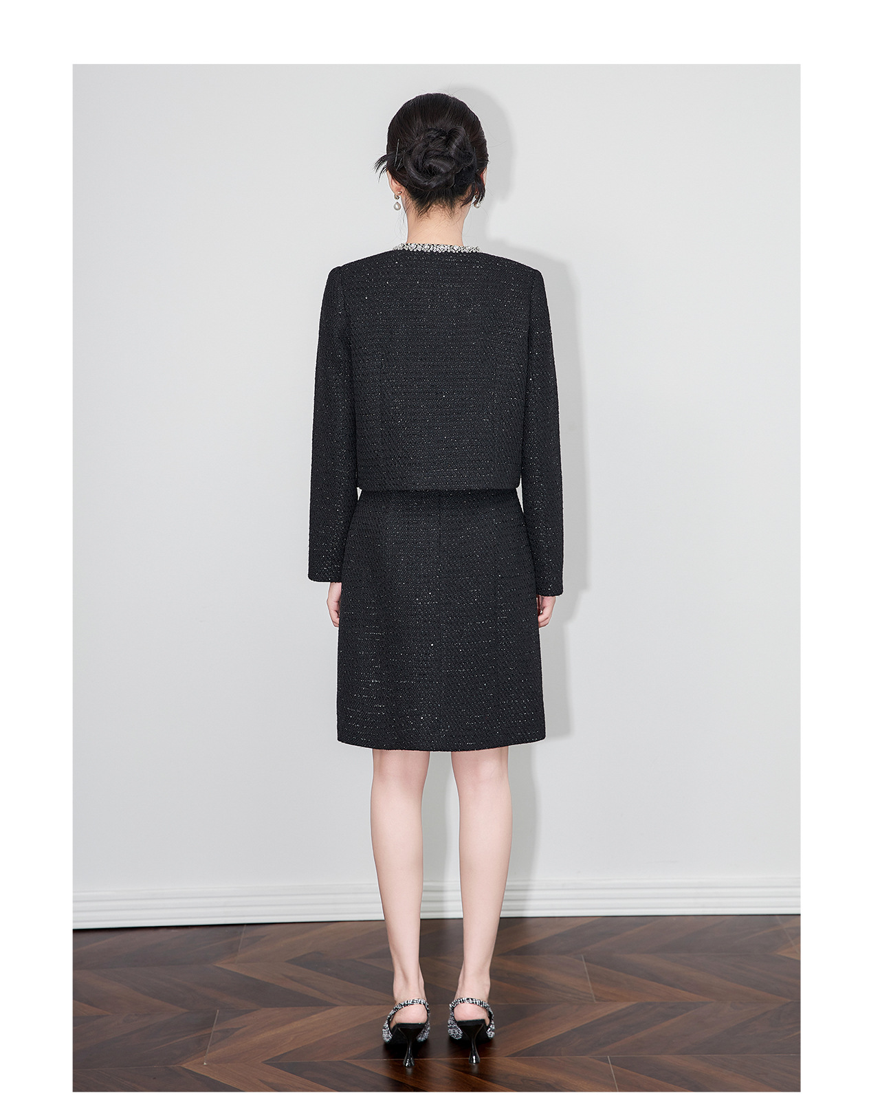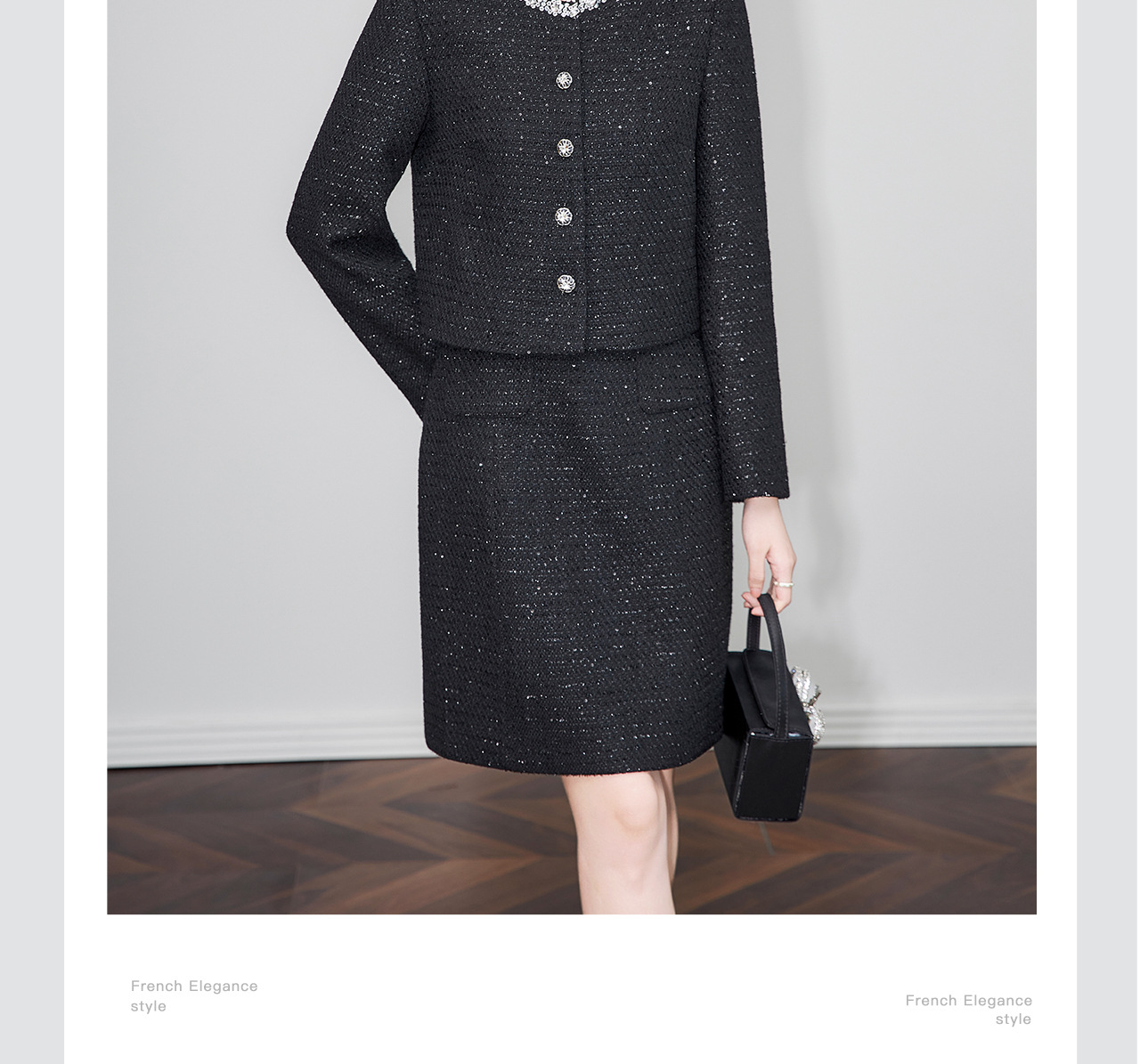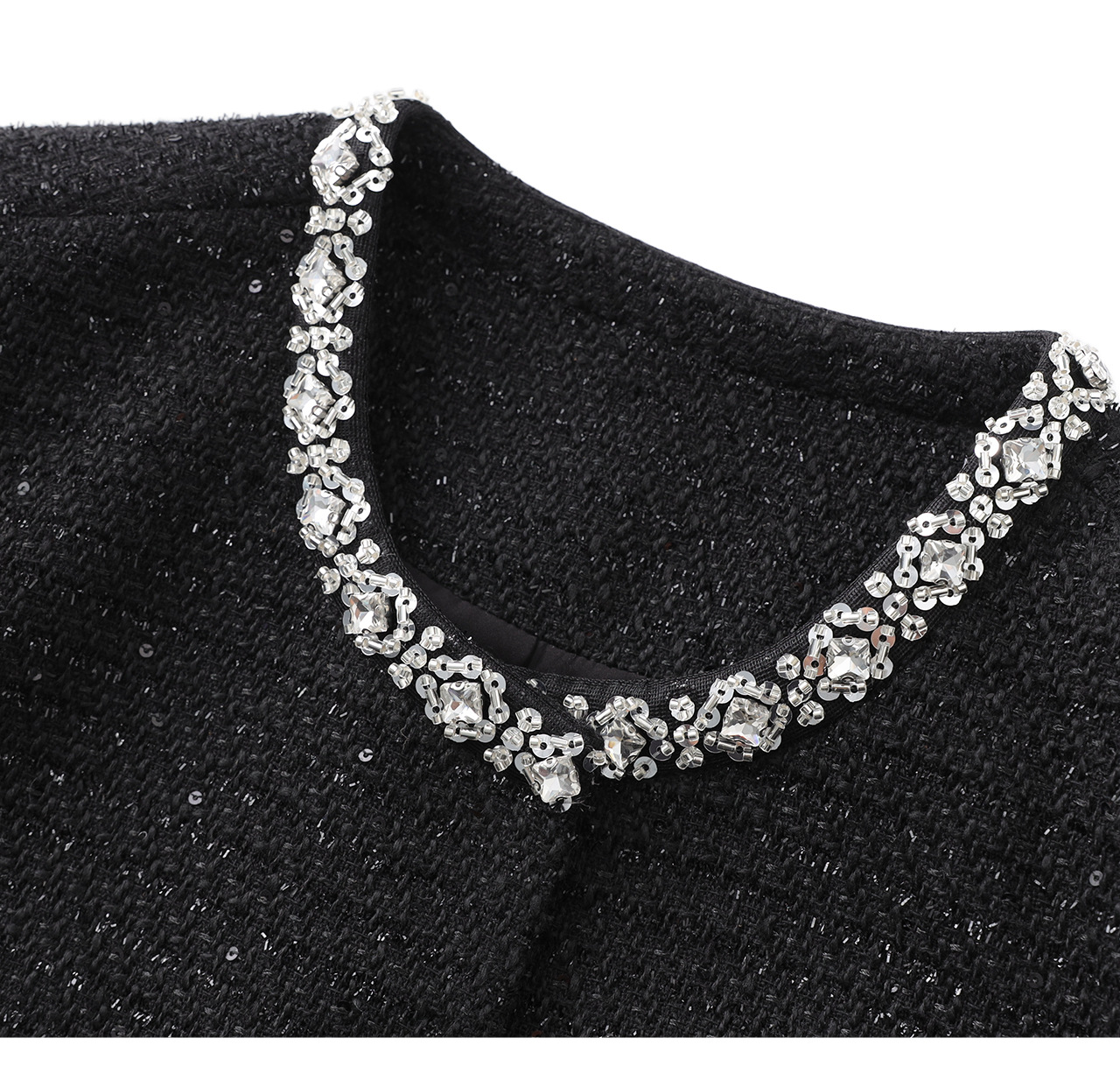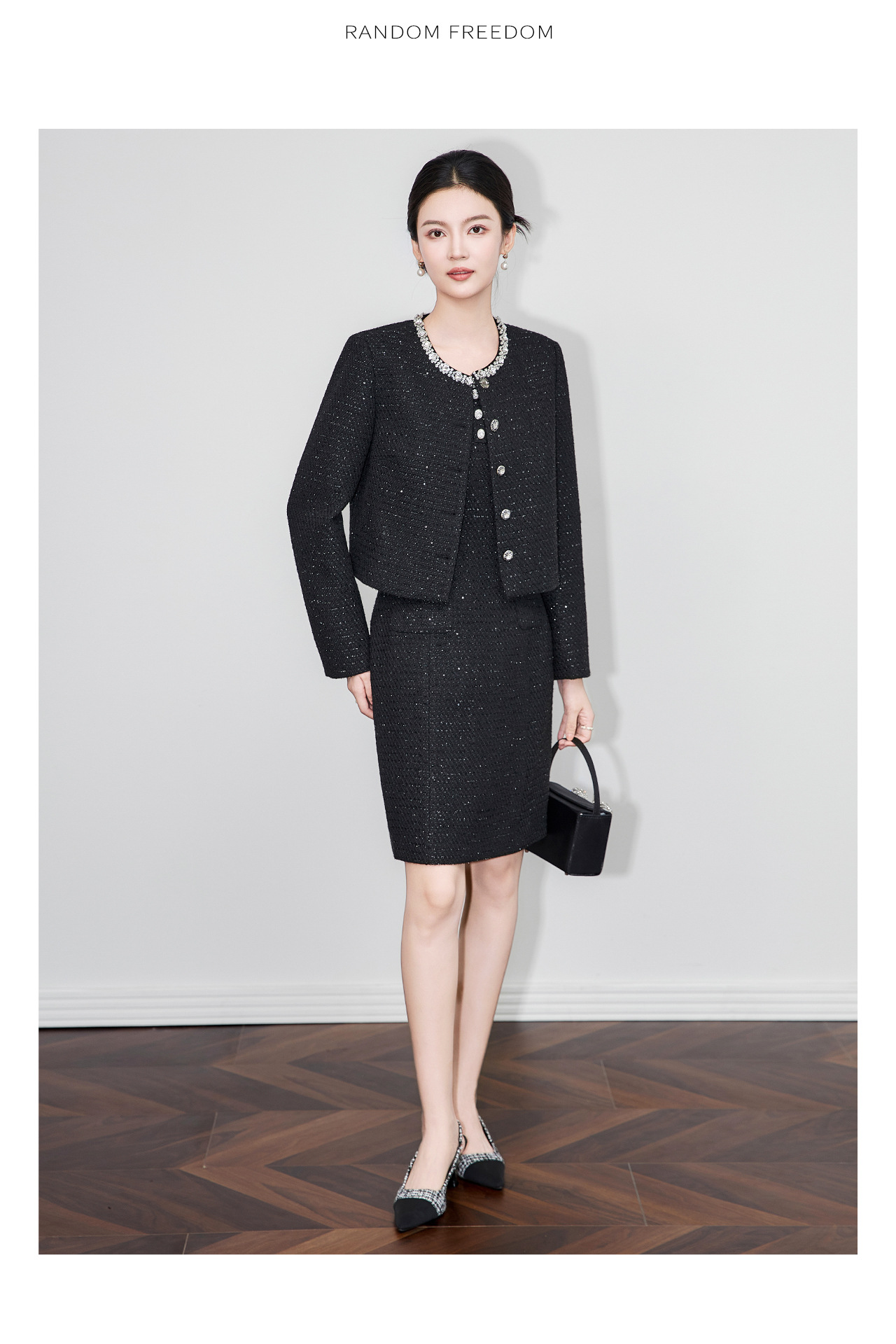 「高货wl」全新升级【铂金会员505/天猫679/差价174】(99658)洛诗琳2025秋冬重工钉钻领亮片小香风外套背心裙两件套