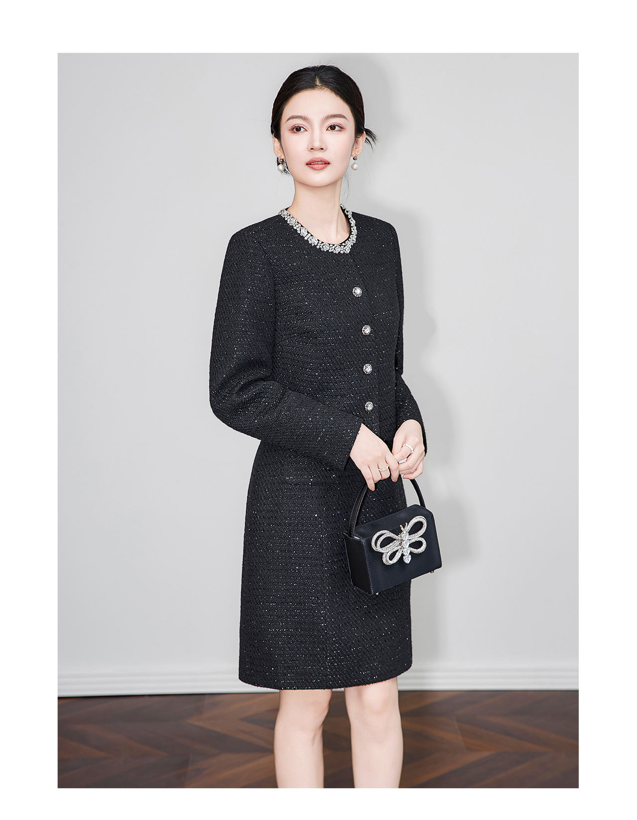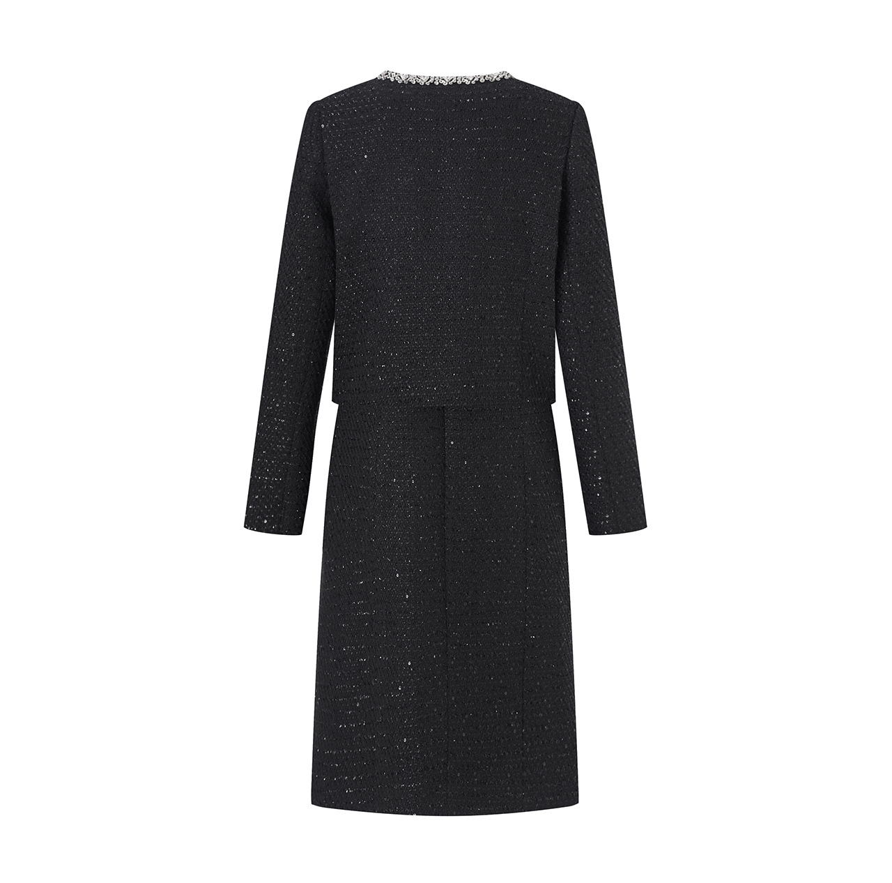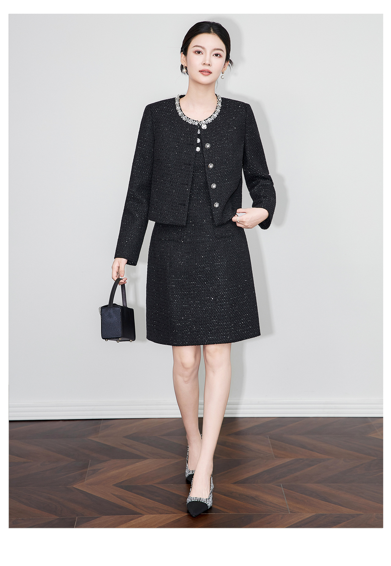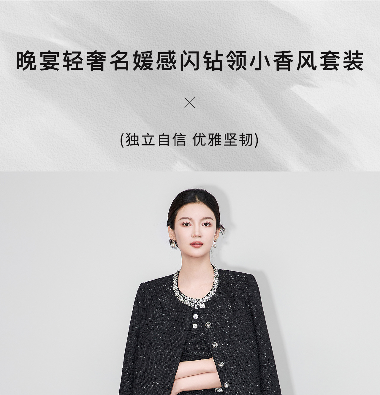 「高货wl」全新升级【铂金会员505/天猫679/差价174】(99658)洛诗琳2025秋冬重工钉钻领亮片小香风外套背心裙两件套
