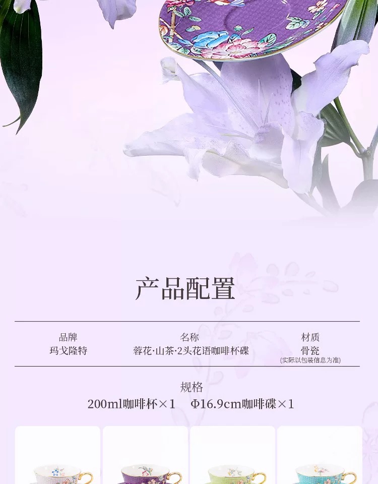 【玛戈隆特】蓉花山茶花骨瓷咖啡杯轻奢下午茶杯碟套装