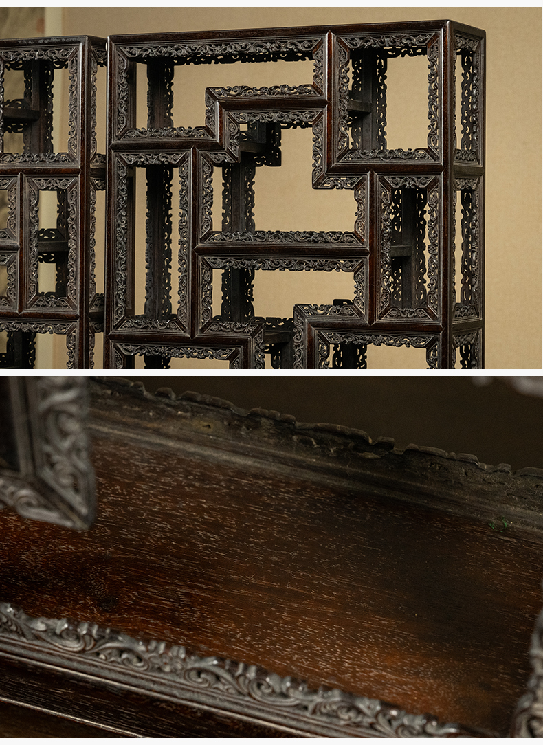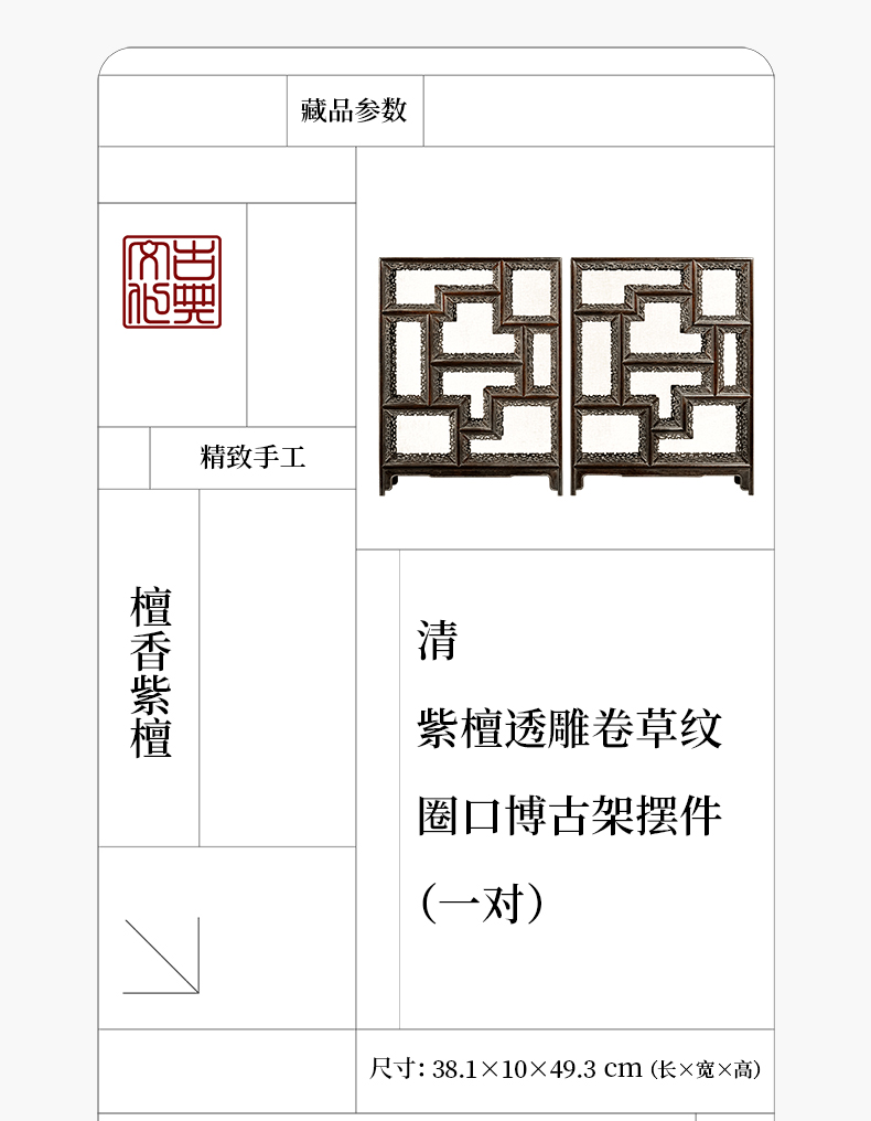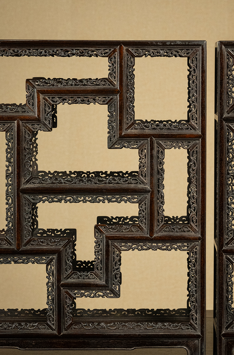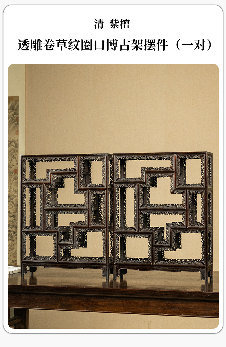 清 紫檀透雕卷草纹圈口博古架摆件(一对)