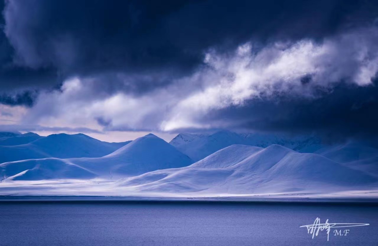 拍摄西藏第三大湖【扎日南木措】;苯教崇拜的最大的圣湖【当惹雍措】,是苯教最重要的神湖,与佛教所认为的世界中心冈仁波齐和玛旁雍措地位相当,传说湖底是相通的。上圆中细下部长,四面群山环抱,南面的达尔果雪山,山顶积雪终年不化。【当穹措】,湖的南岸【达尔果山】一列七峰,山体黝黑,顶覆白雪,形状酷似7座整齐排列的金字塔,它和当惹雍措一起被苯教徒奉为圣地。站在湖边的一座小山头,站在山头上环顾四周,湖天一色,湖岸线条优美,湖水在灿烂阳光的照耀下,蓝得分外妖娆。