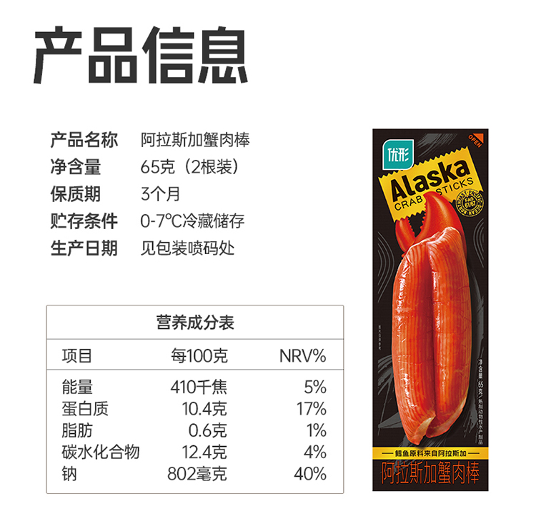 减脂轻食代餐! 优形阿拉斯加蟹肉棒65g/袋