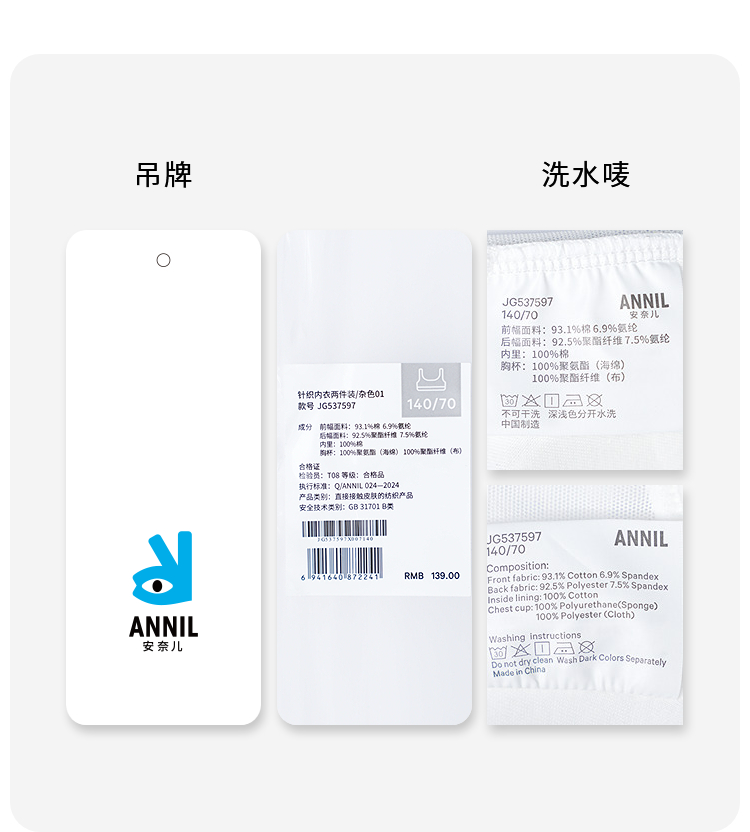 女童针织内衣两件装秋季新款安奈儿童装JG537597
