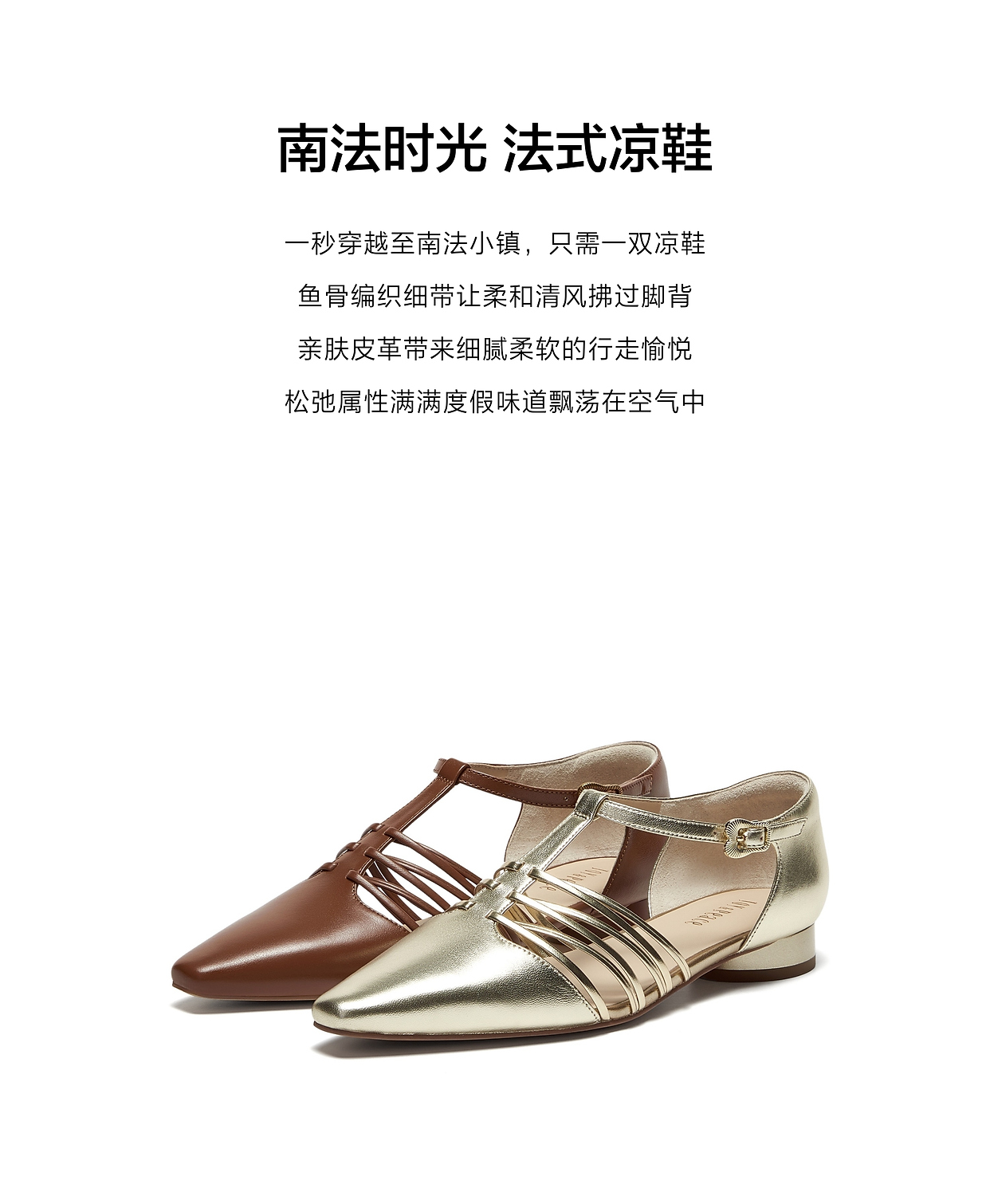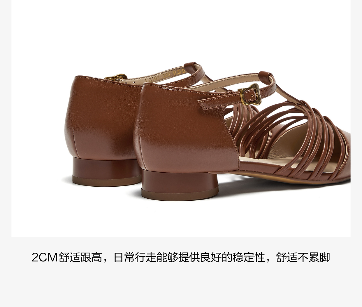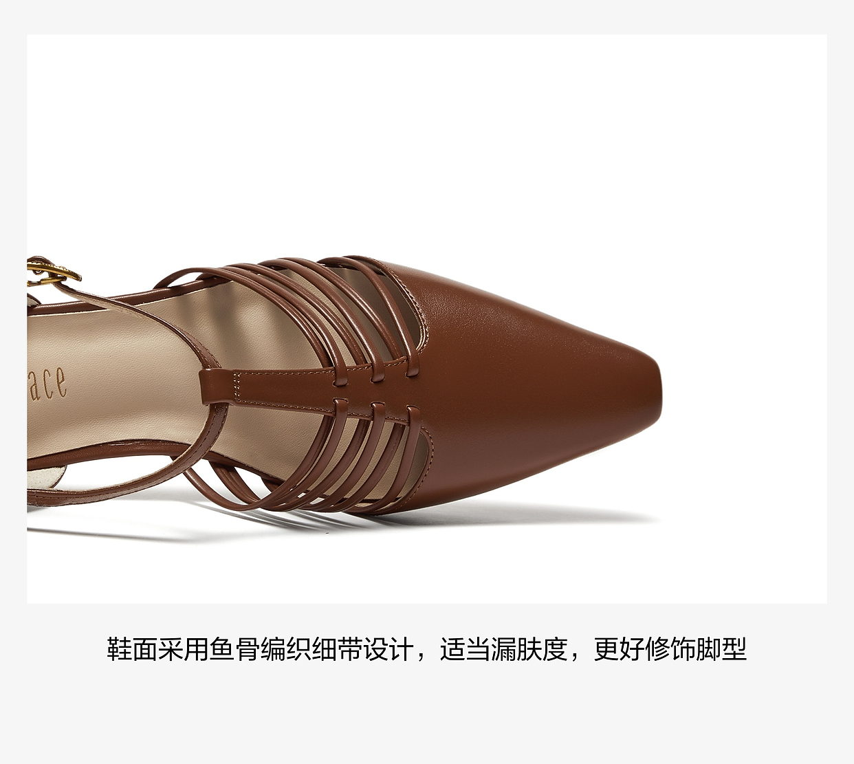 Joy&peace真美诗 月光海岸2025春季新款鱼骨编织法式粗跟玛丽珍鞋罗马凉鞋女