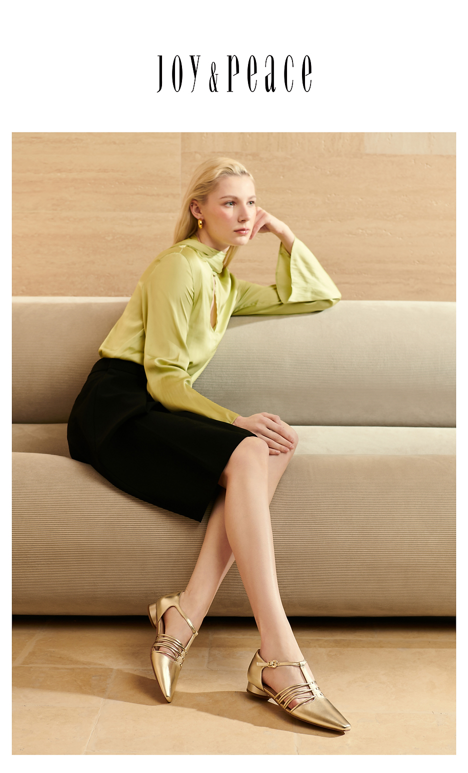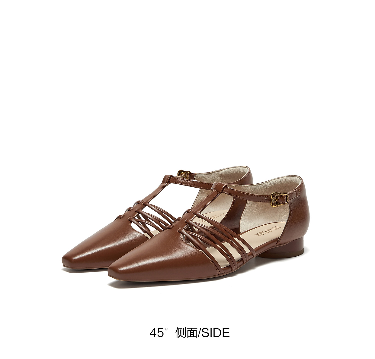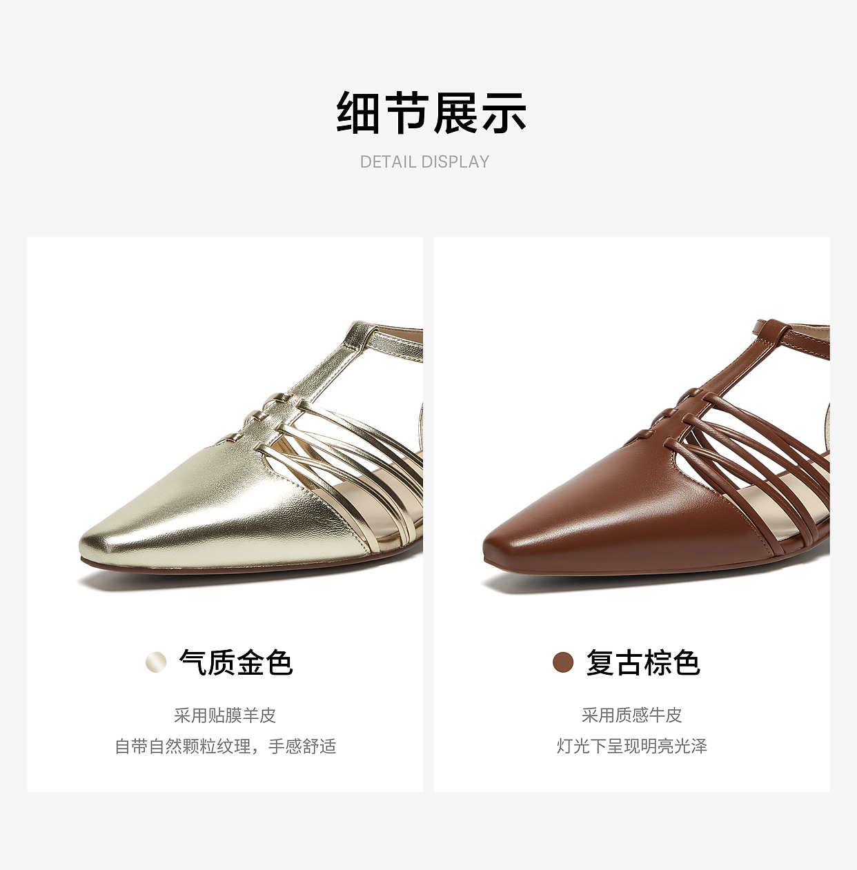Joy&peace真美诗 月光海岸2025春季新款鱼骨编织法式粗跟玛丽珍鞋罗马凉鞋女