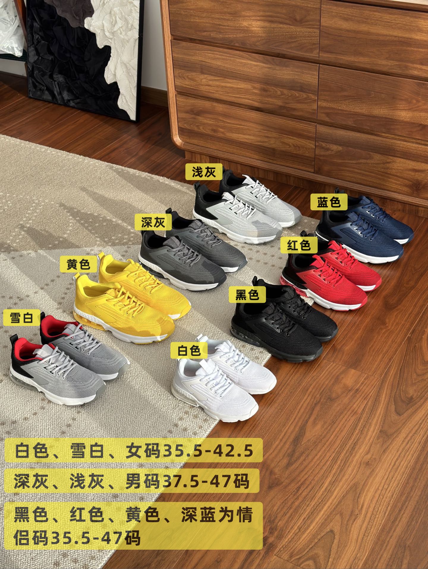 【独家】🉐邮📯美国正品JERKO®真气垫运动鞋!男女款 由于贸易关shui的原因!国外取消订单 整单近两万双现货仓库!现代工厂已无力承担!白菜价(亏本出 鞋面采用Flyknit可回收材料飞织材质,保证运动时脚部的干爽舒适,鞋底采用品牌标志性的缓震技术,能有效吸收跑步时的冲击力,提供舒适的脚感,助力每一步的过渡!为跑者提供良好的支撑,帮助稳定脚部,降低运动损伤风险!适合长距离跑步等运动的选择!尺码:35.5 36 36.5 37.5 38 38.5 39 39.5 40 41 41.5 42.5 43 43.5 44.5 46 47 (具体参照尺码表)