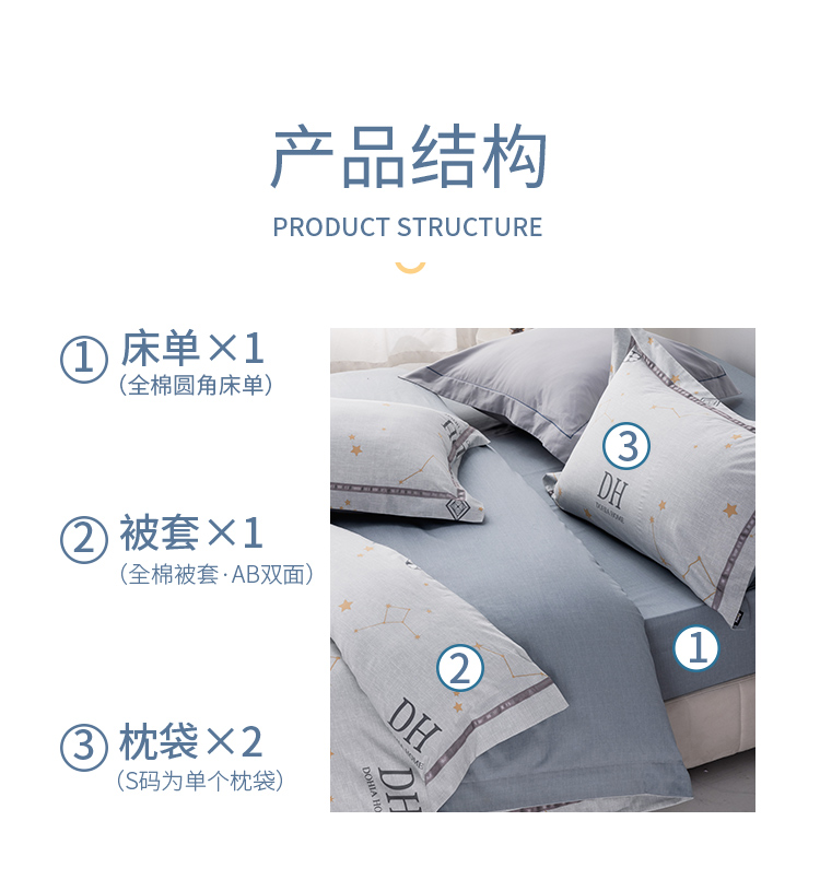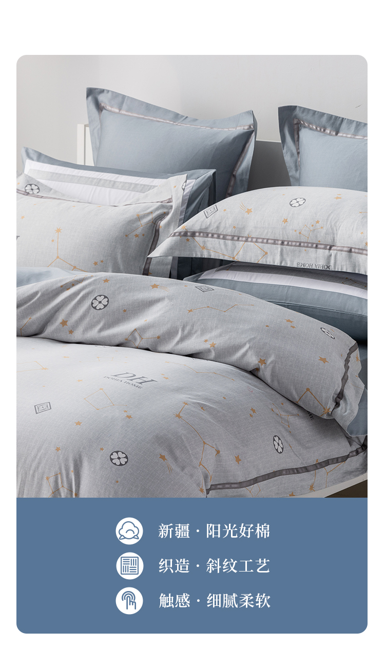 多喜爱 全棉新疆精梳棉简约时尚三/四件套 揽星河/星辰入梦/时光音悦hlcs