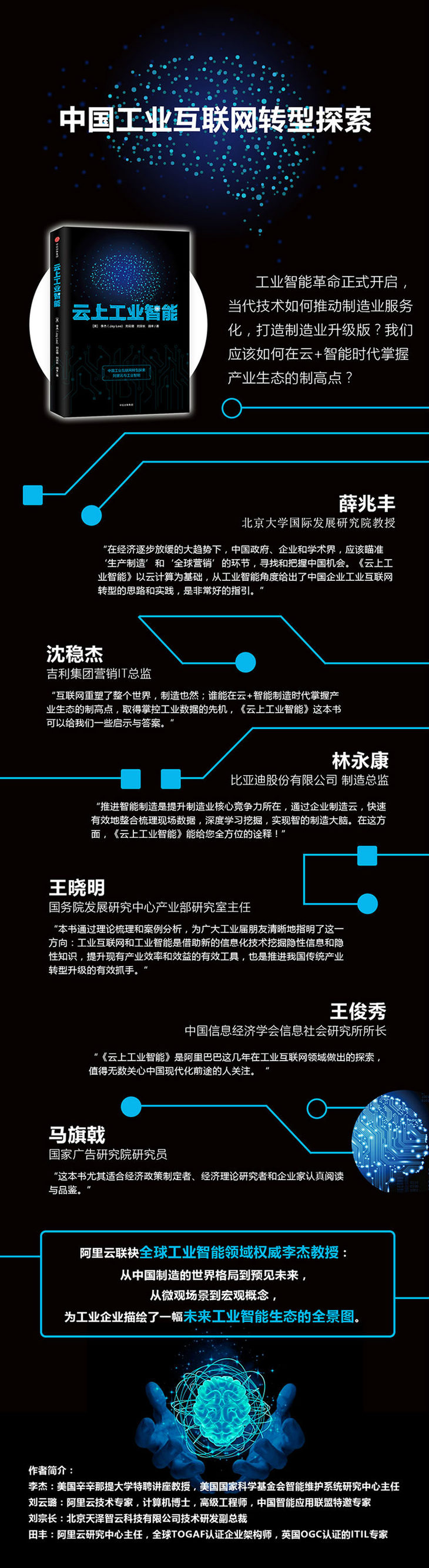 从中国制造的世界格局到预见未来,从微观场景到宏观概念,本书围绕工业智能化的三个核心领域:工业云模式、工业大数据、工业智能展开论述,通过对工业制造、产品价值、供应链等概念的阐释,为工业企业描绘了一幅未来工业智能生态的全图景。