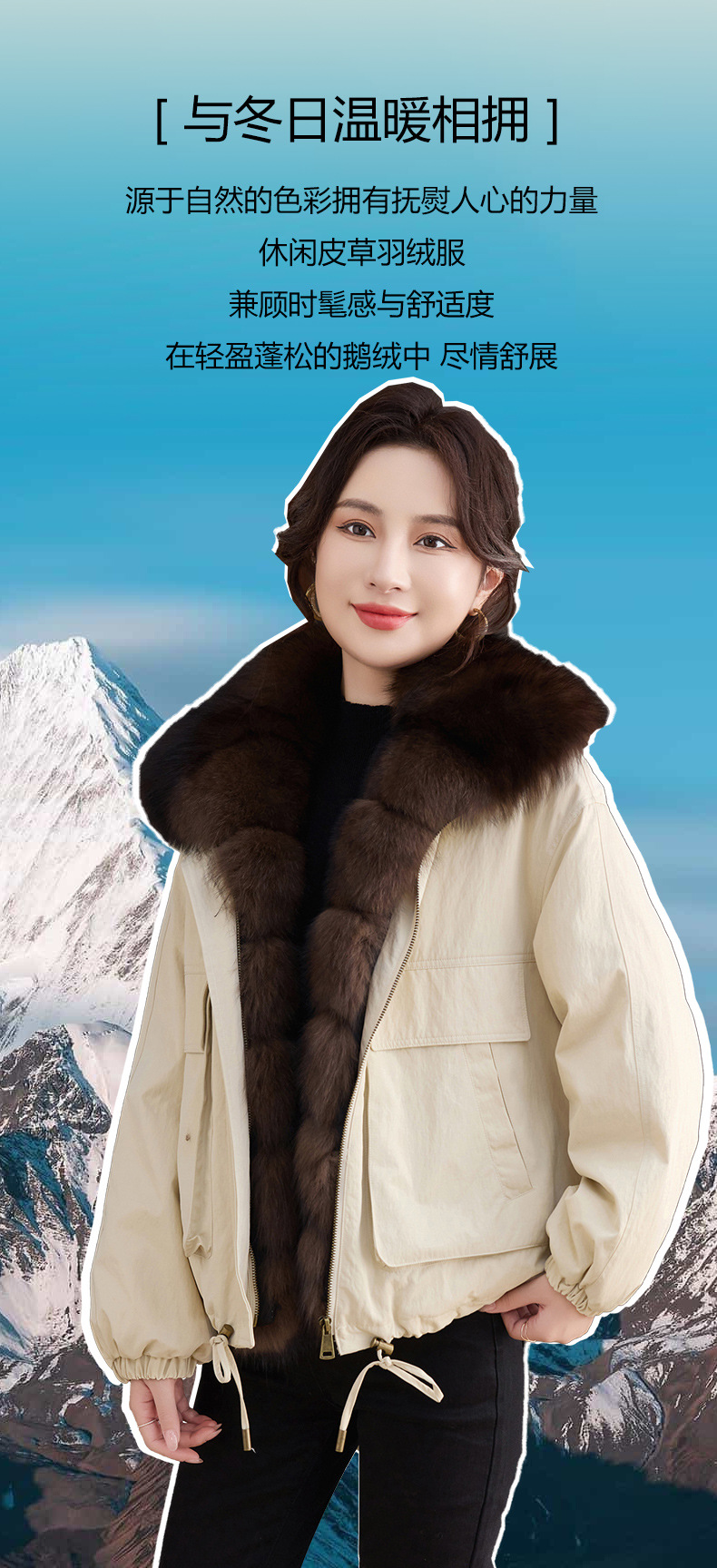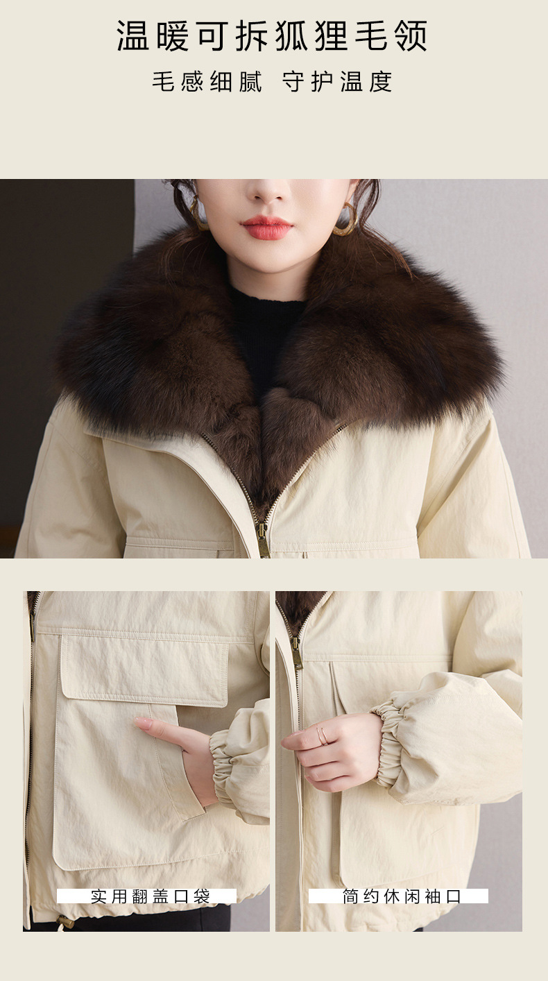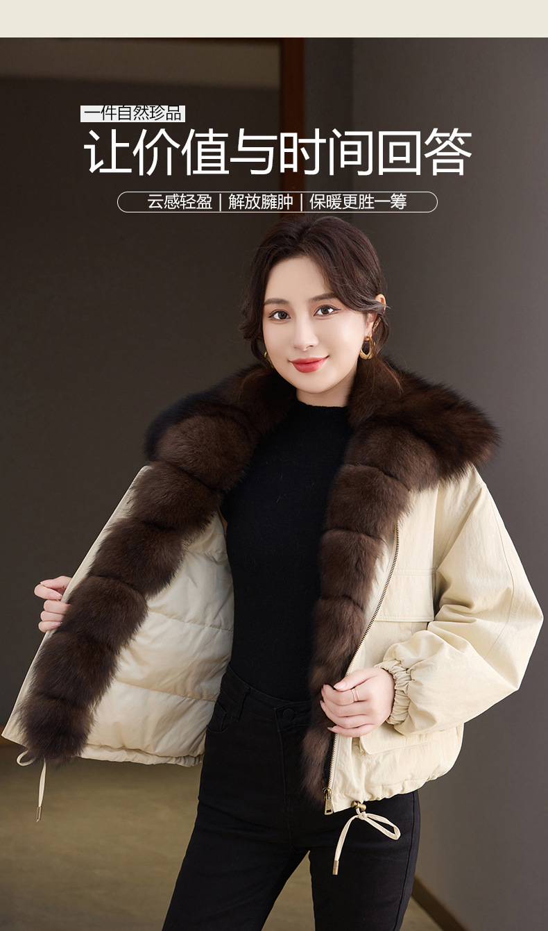 OSL 2561狐狸毛拼接翻领鹅绒外套加厚羽绒服皮草 商品图3