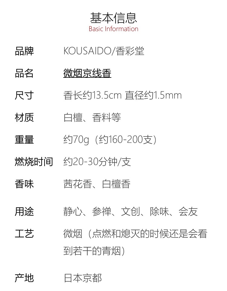 【KOUSAIDO】香彩堂微烟线香70g