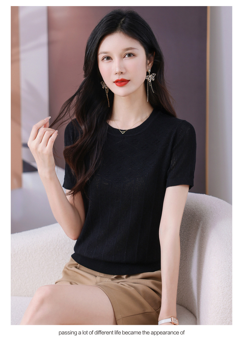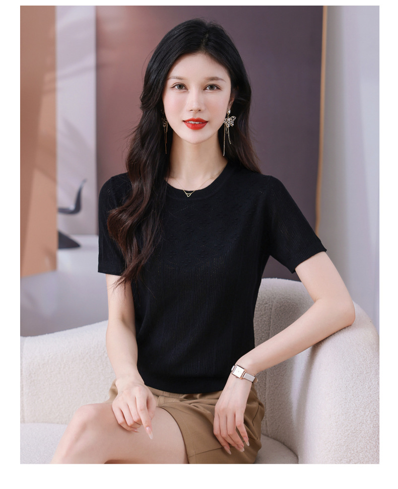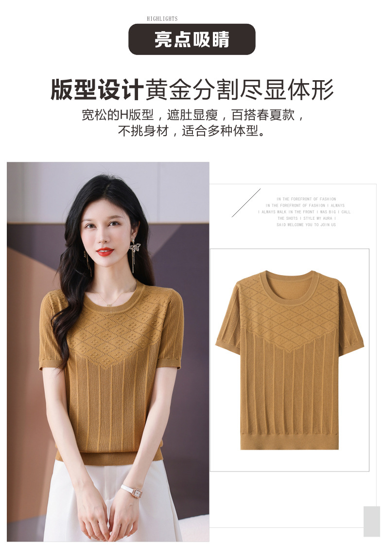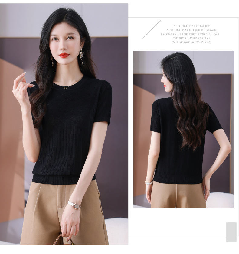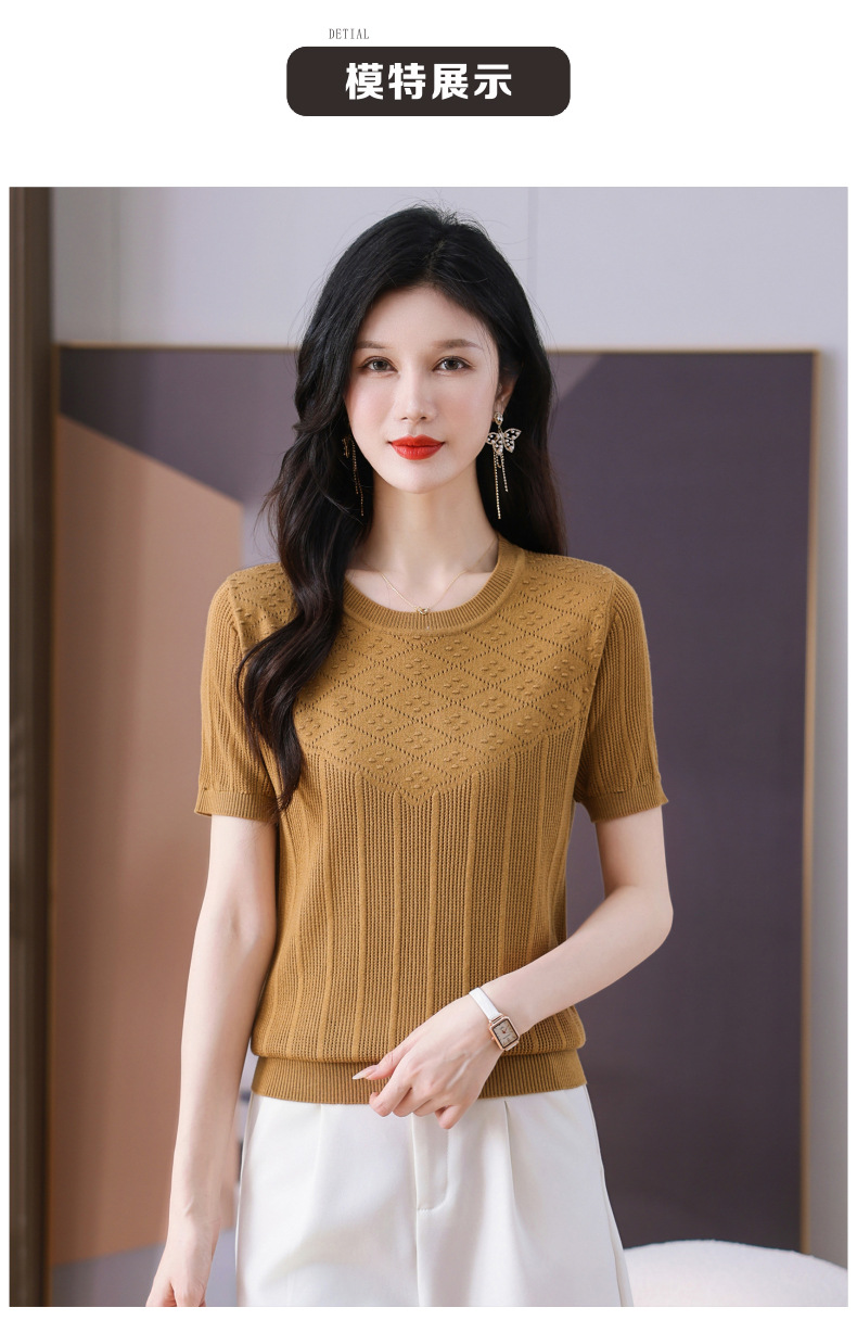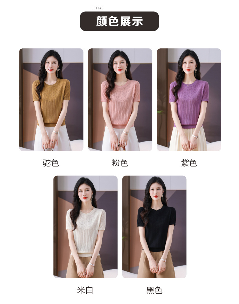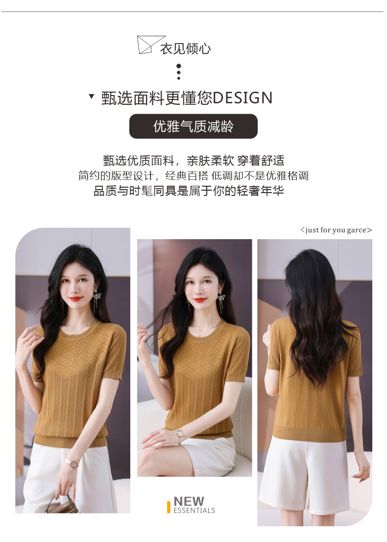 CC-101-359圆领冰丝短袖T恤女2025新款夏季修身显瘦针织衫薄款上衣