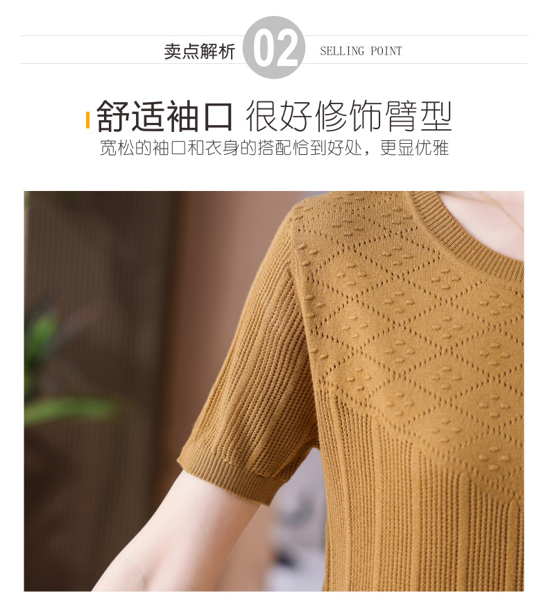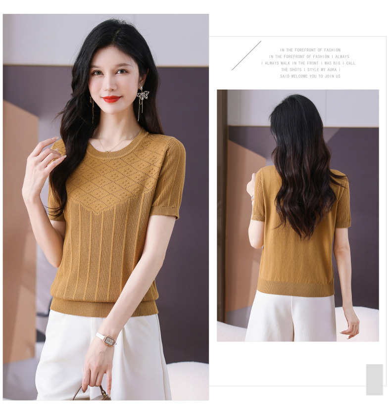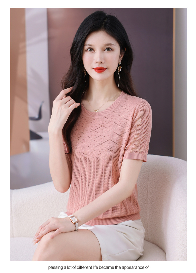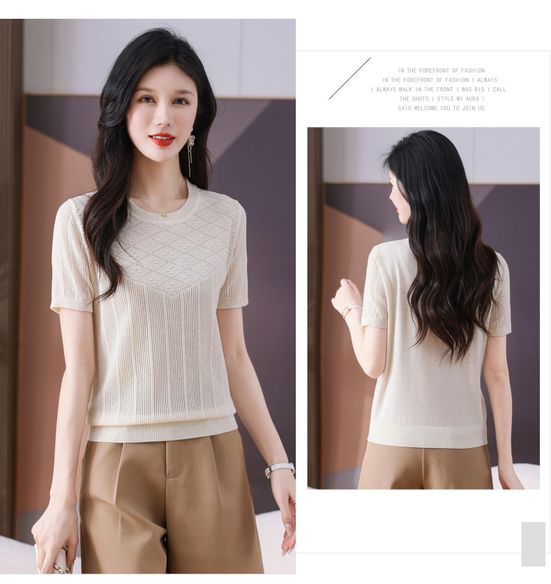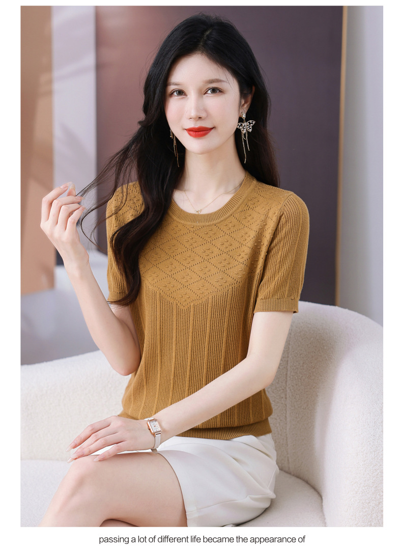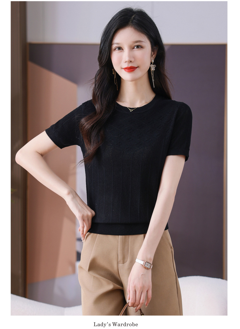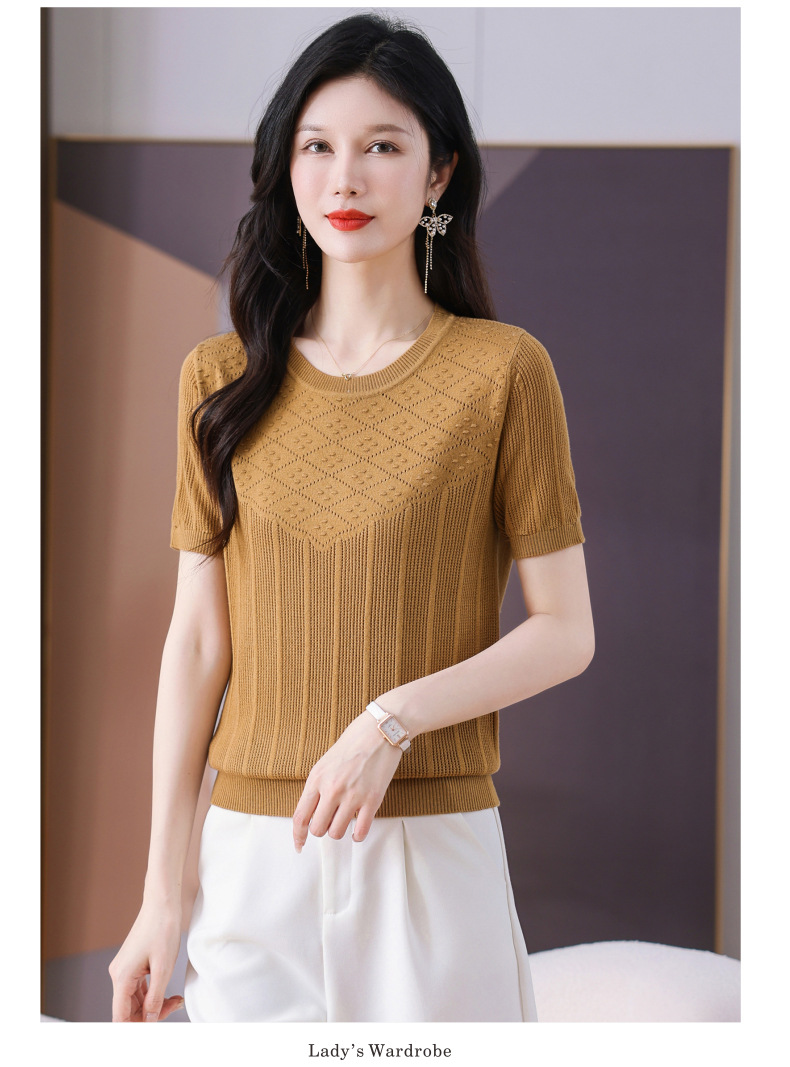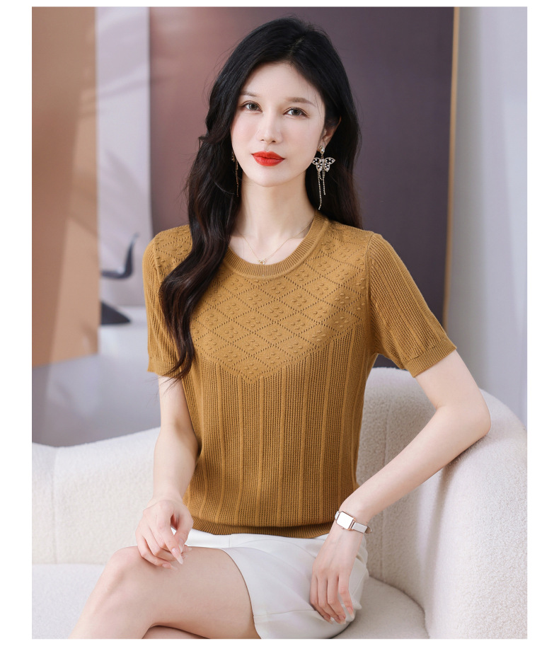 CC-101-359圆领冰丝短袖T恤女2025新款夏季修身显瘦针织衫薄款上衣