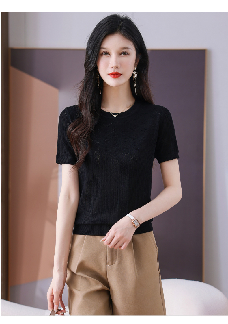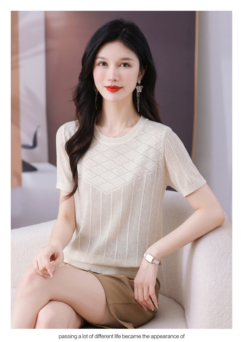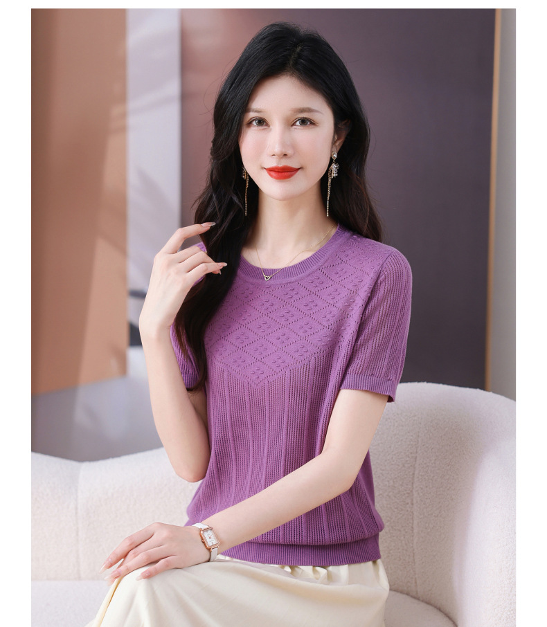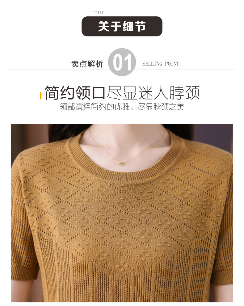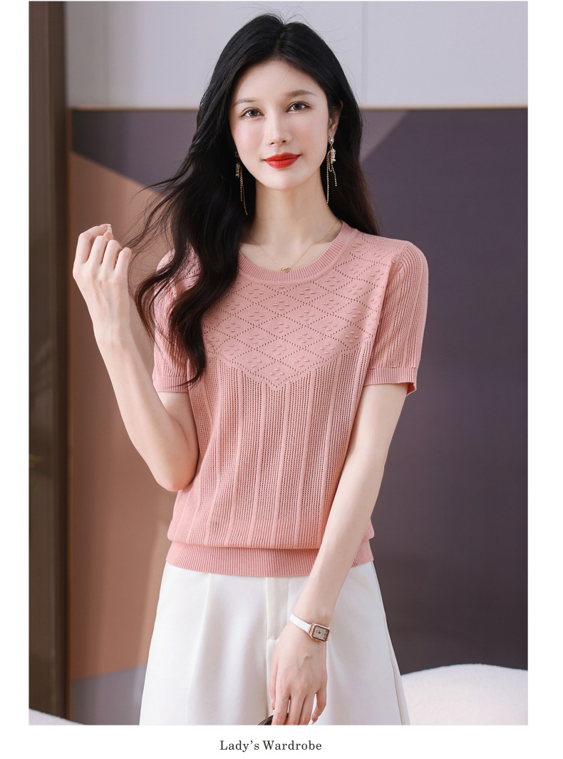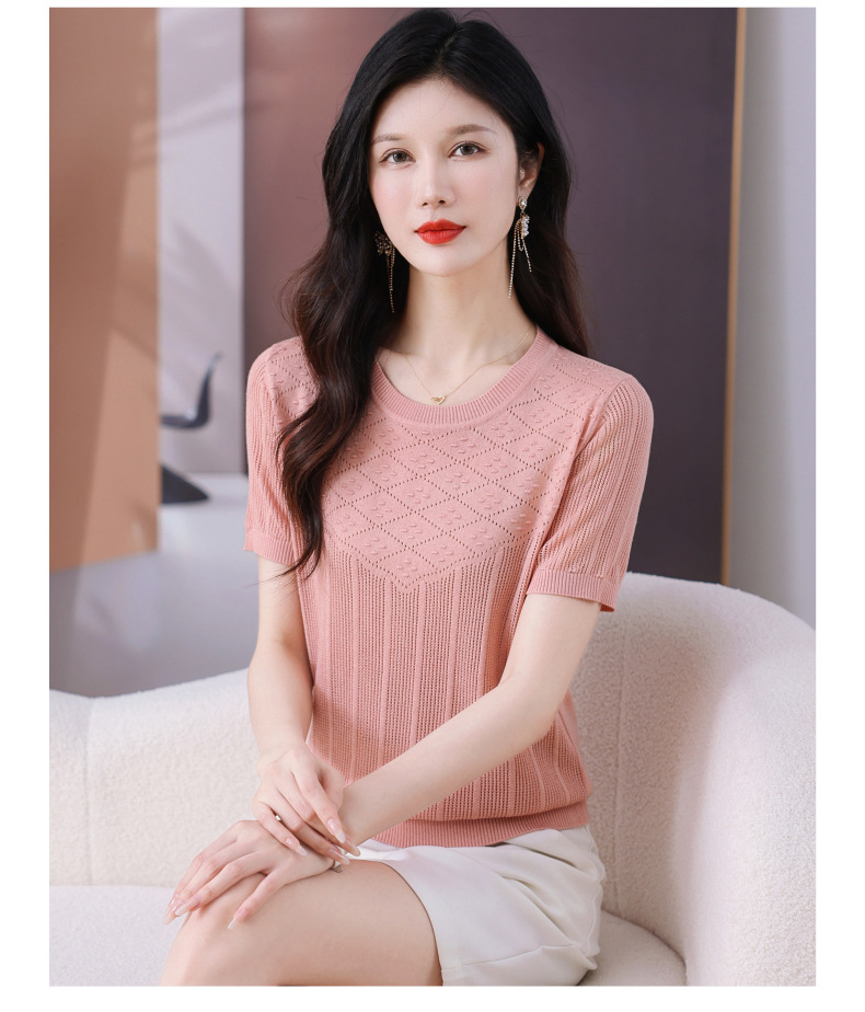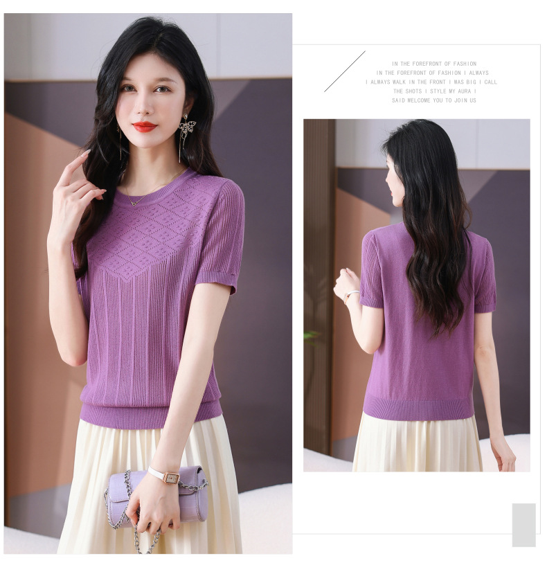 CC-101-359圆领冰丝短袖T恤女2025新款夏季修身显瘦针织衫薄款上衣