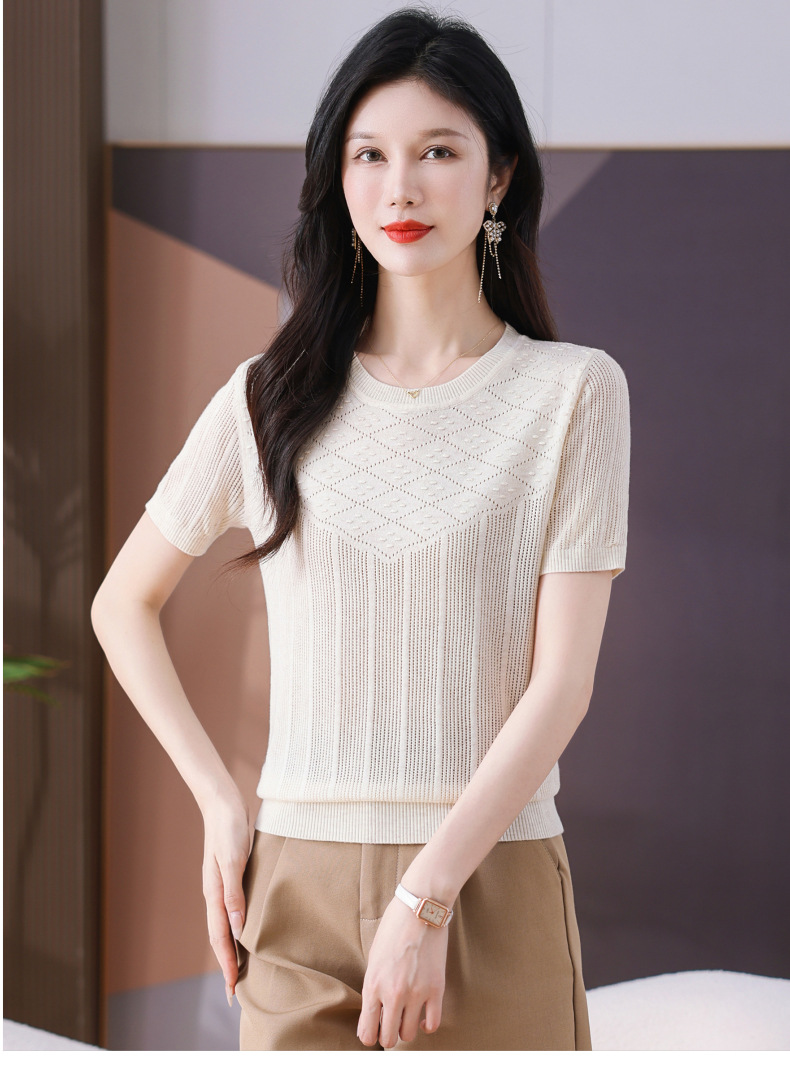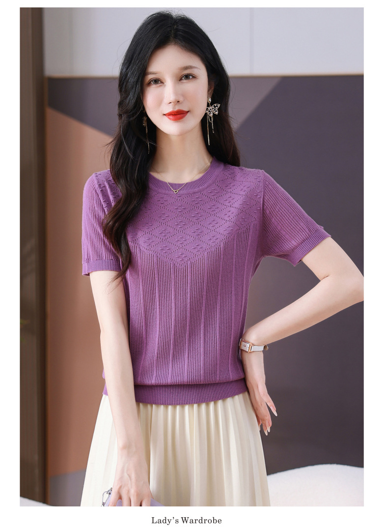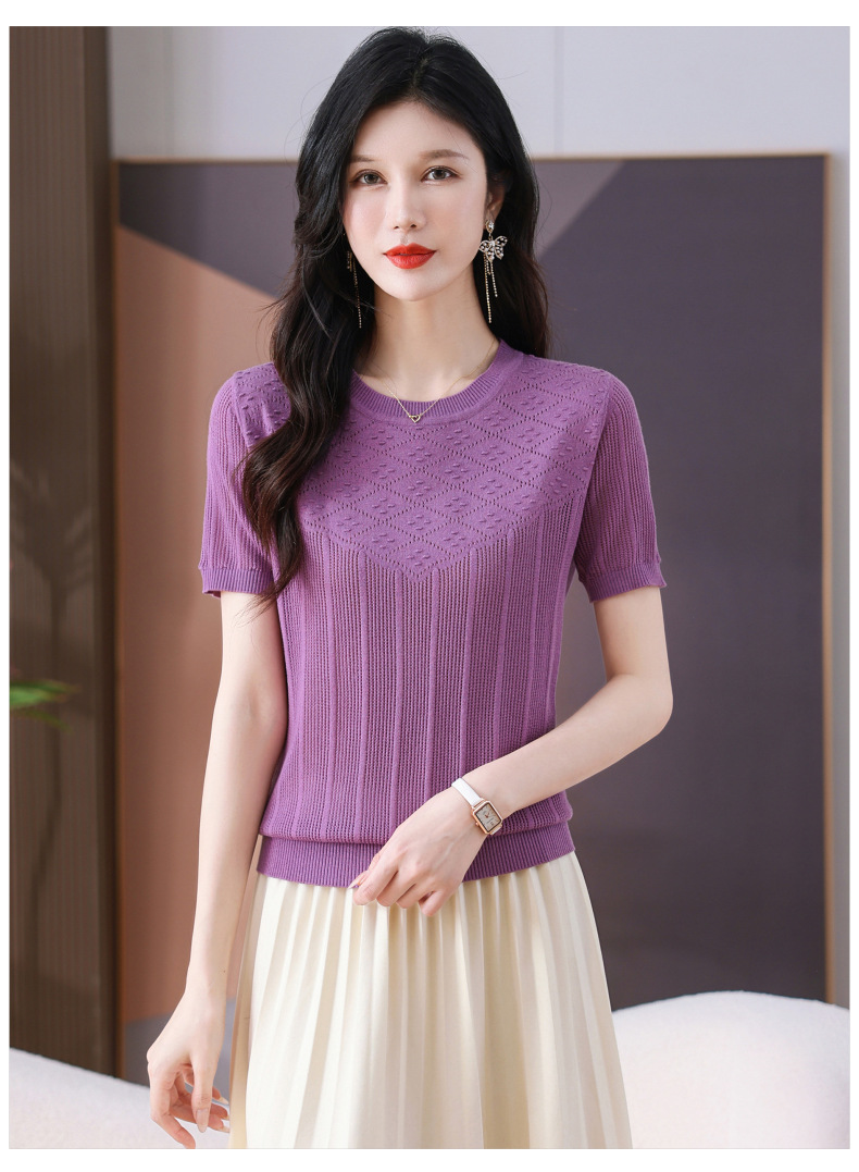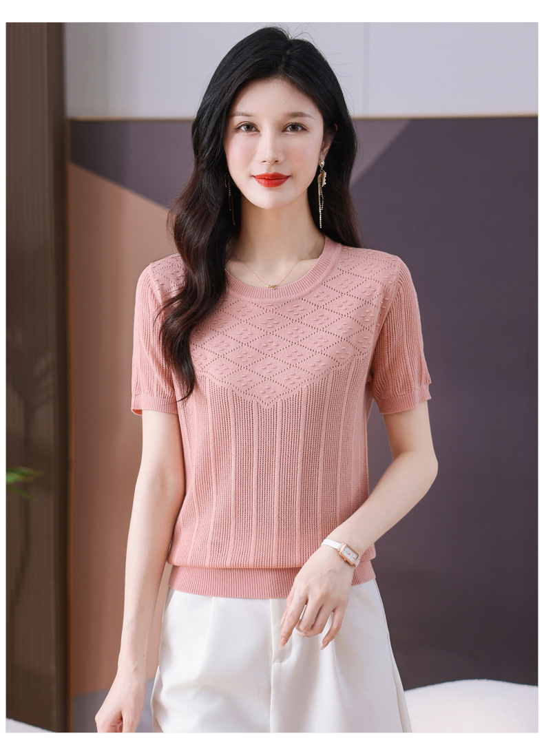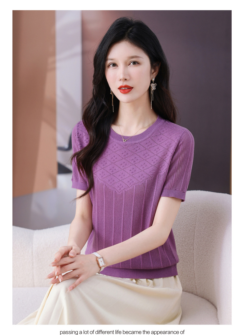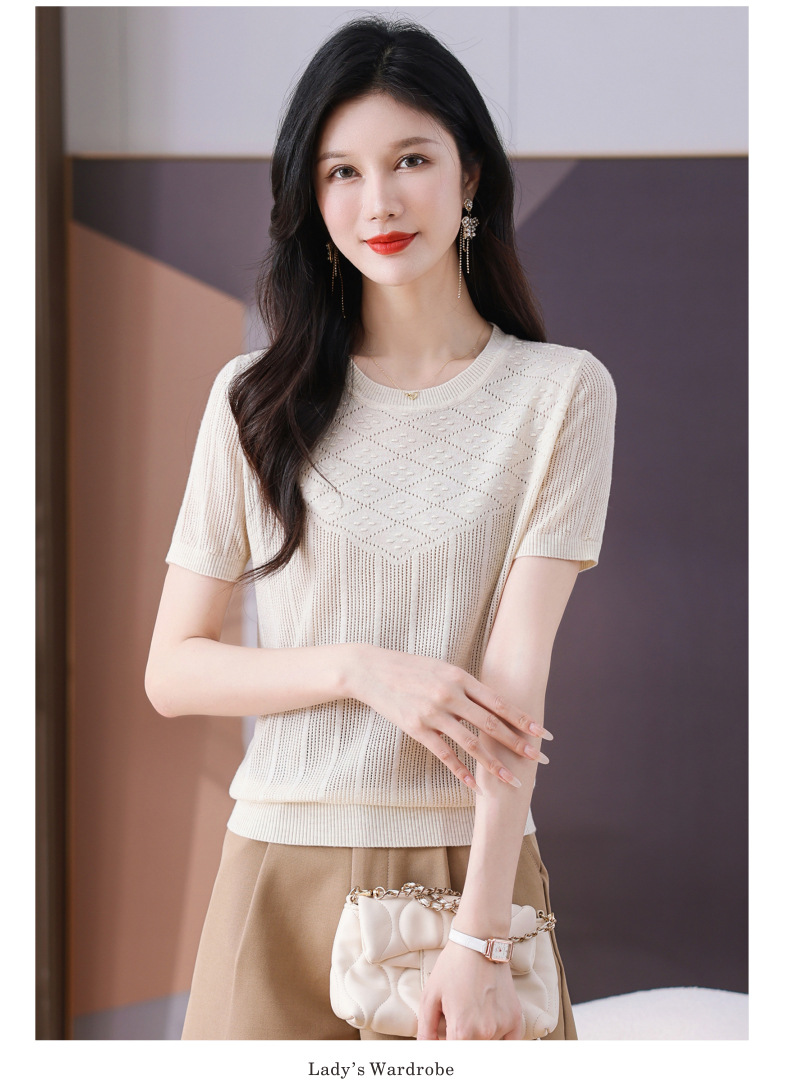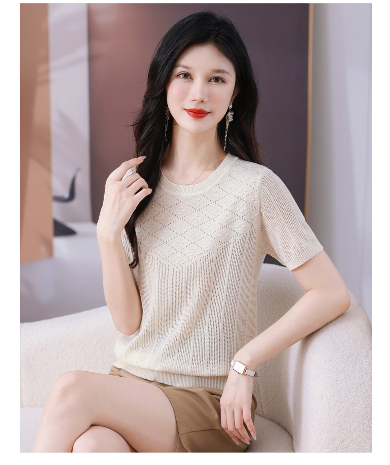 CC-101-359圆领冰丝短袖T恤女2025新款夏季修身显瘦针织衫薄款上衣