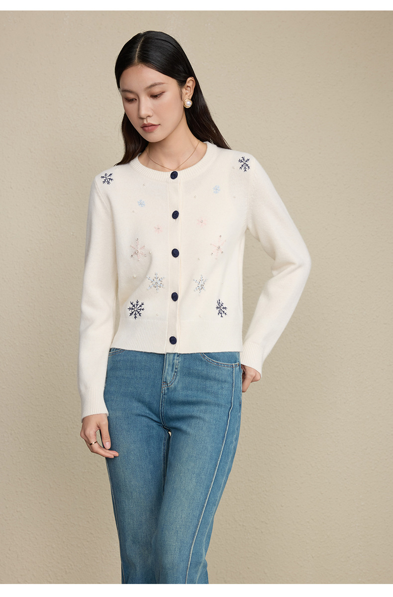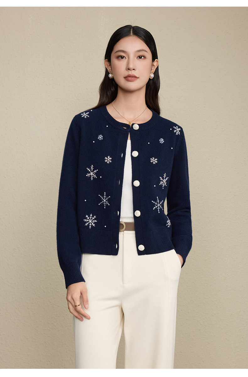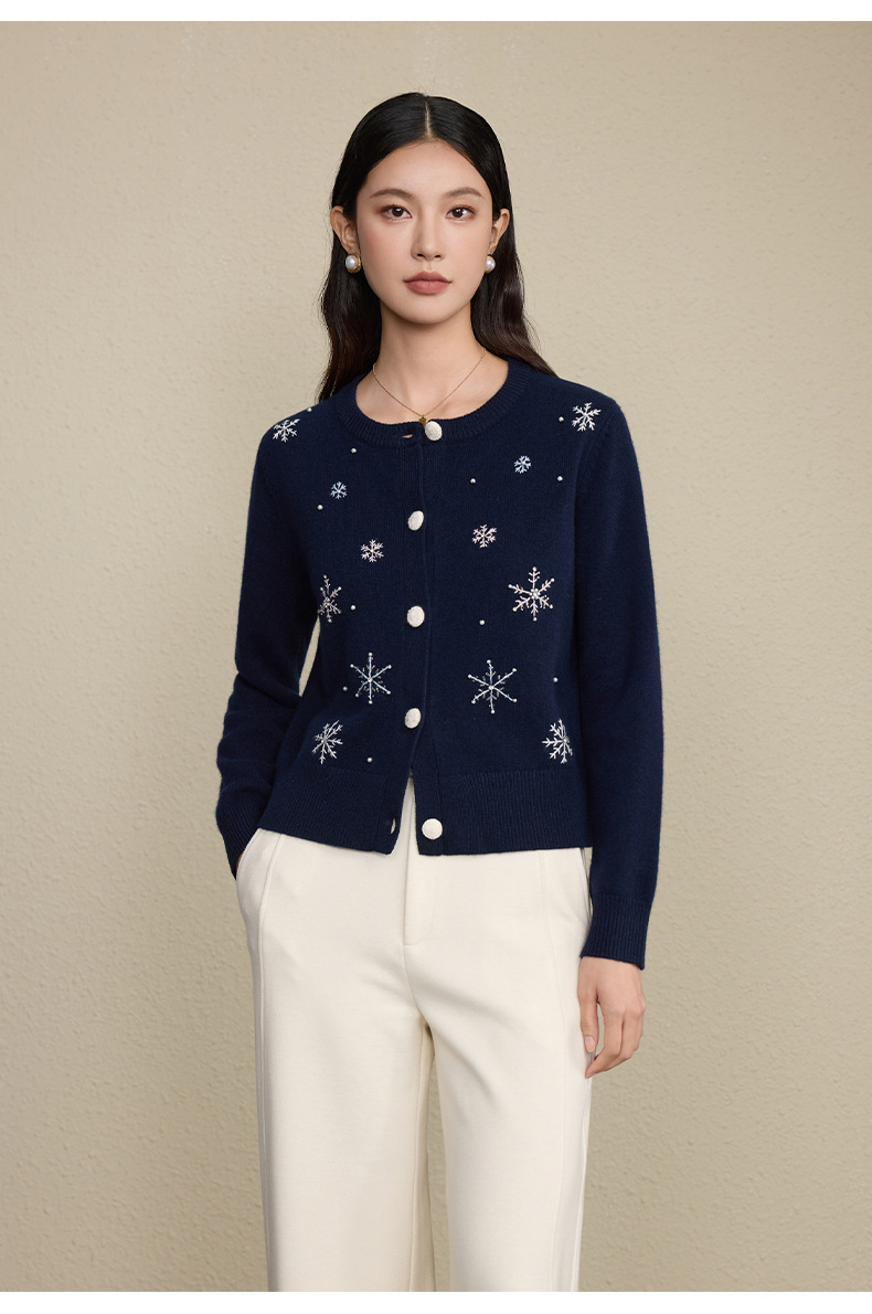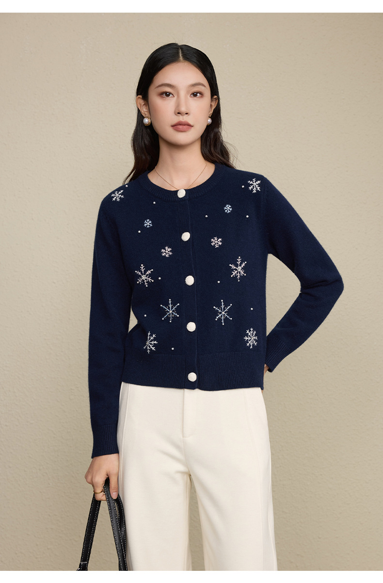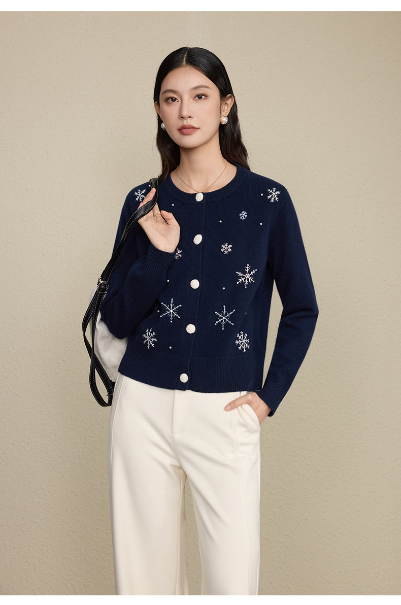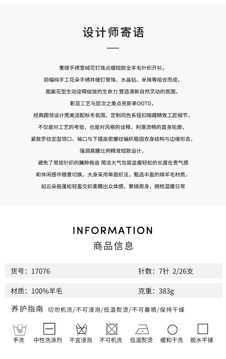 「自」全新升级【铂金会员367/天猫499/差价132】(05711)洛诗琳气质手工绣花钉珠外套2025秋季新款显瘦羊毛针织开衫