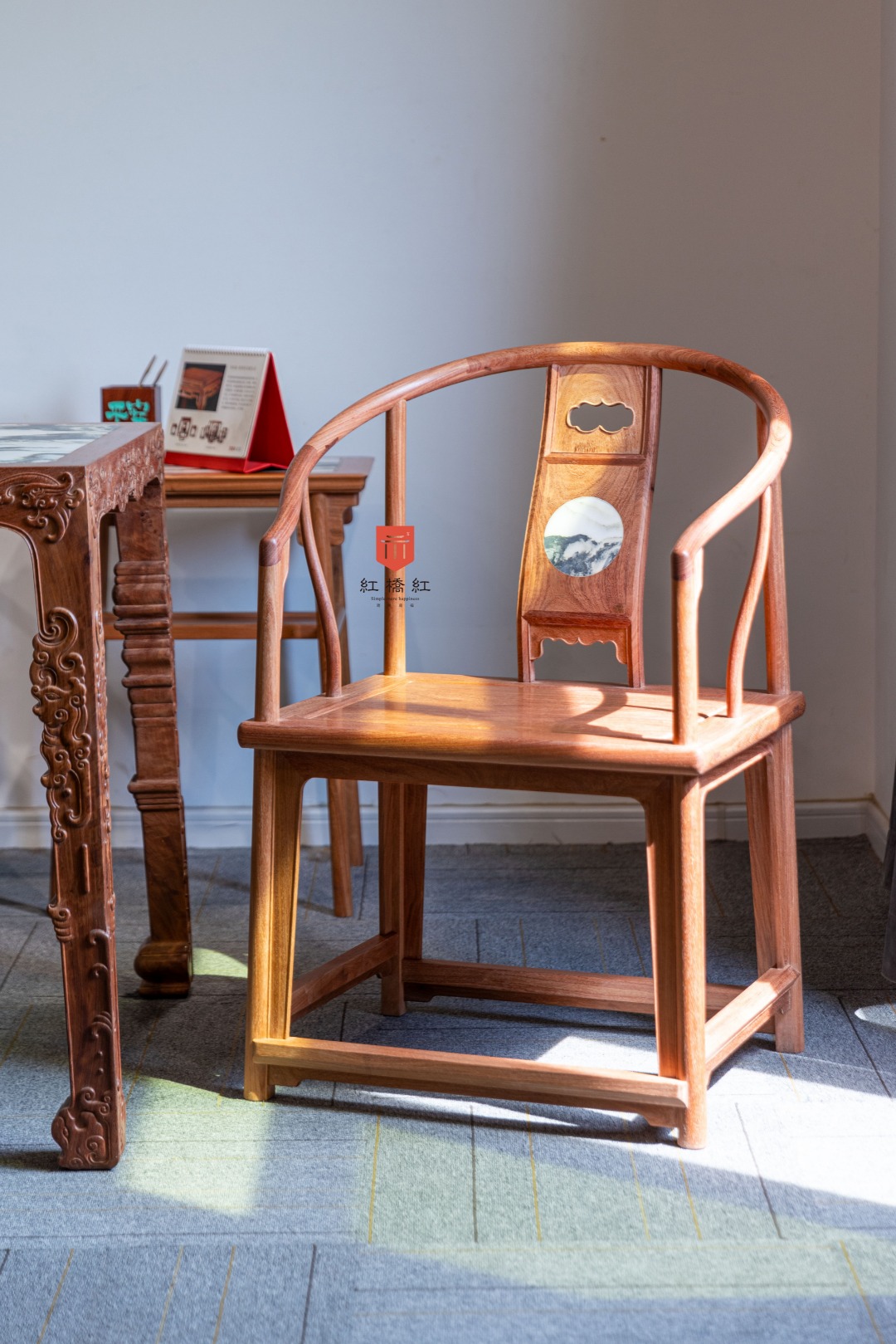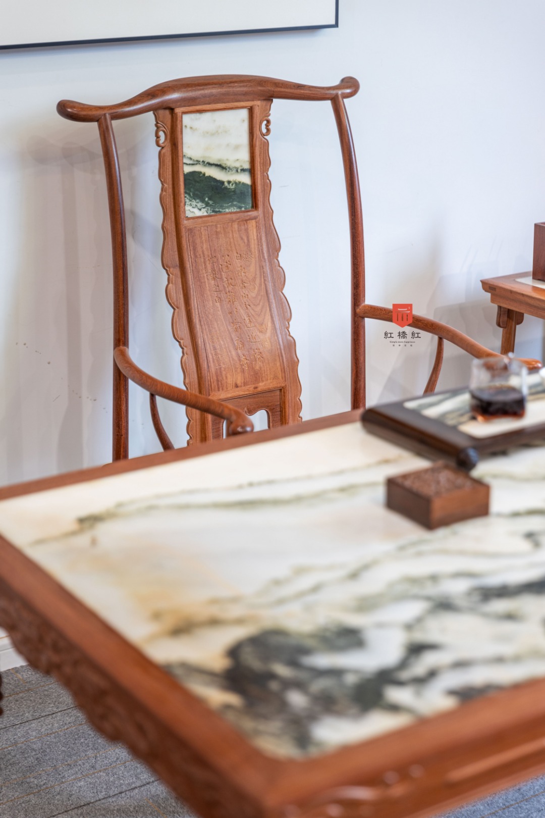 攒靠背 镶云石拐手圈椅60*47*48/总高92.5cm