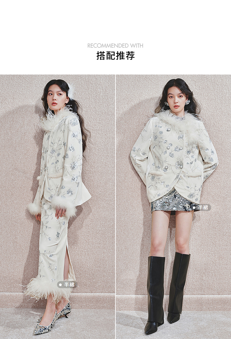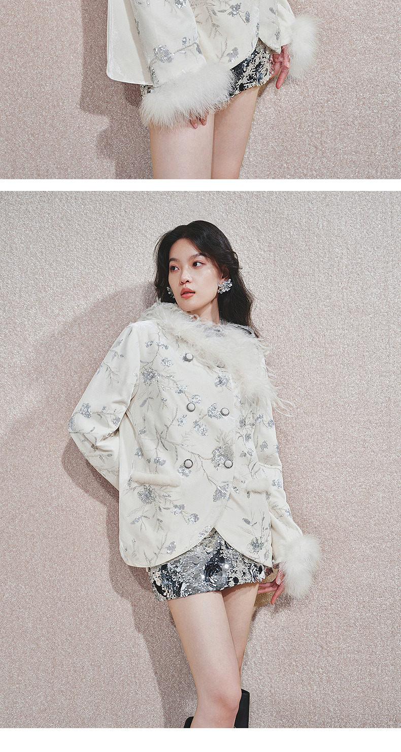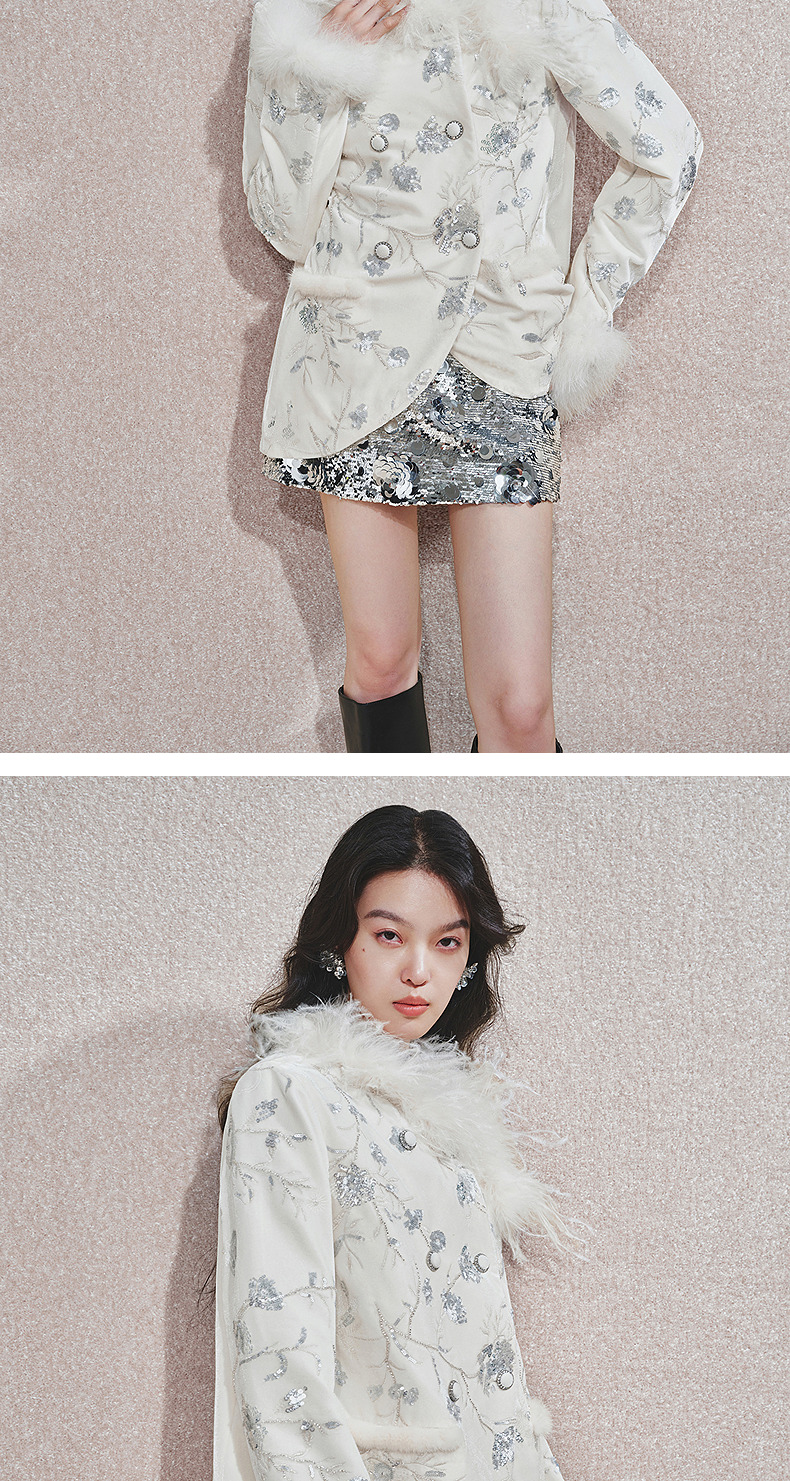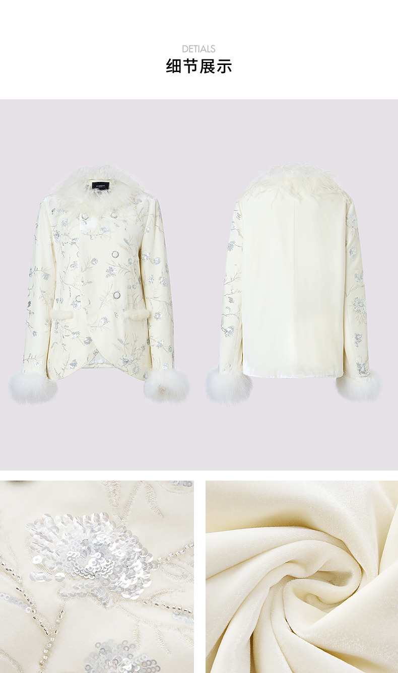 玛克门店发货:精致复古感重工亮片丝绒绣花外套女(货号:MC85JA782)