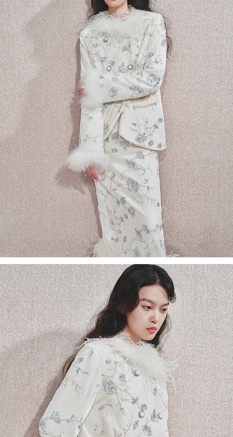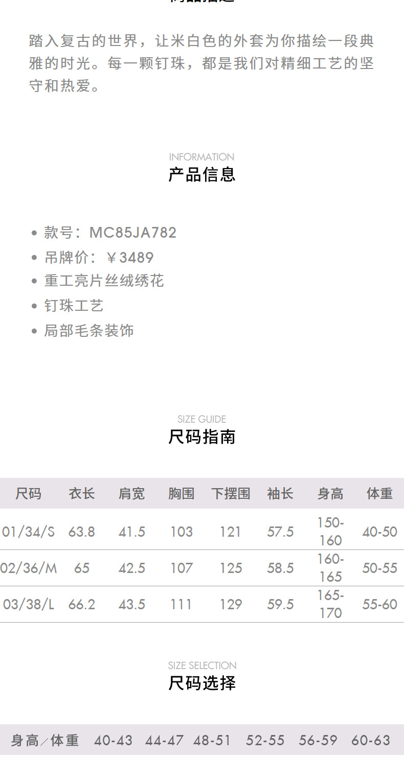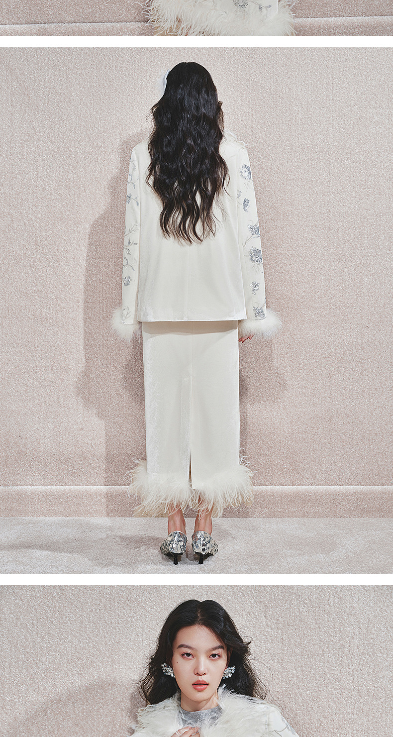玛克门店发货:精致复古感重工亮片丝绒绣花外套女(货号:MC85JA782)